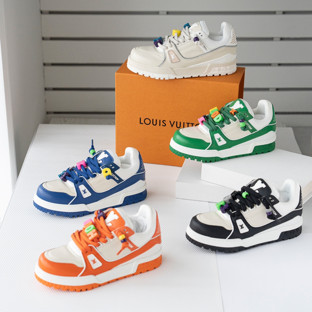 这款鞋子是AAAAA 1:1 质量 (非常棒). 使用了和原版一模一样的材料. 商标部分也保持了和路易威登/Louis Vuitton一样. 图片拍摄是实物鞋子拍摄, 您所收到的实物保证和我们图片一模一样.