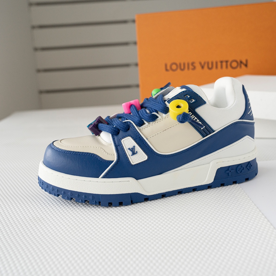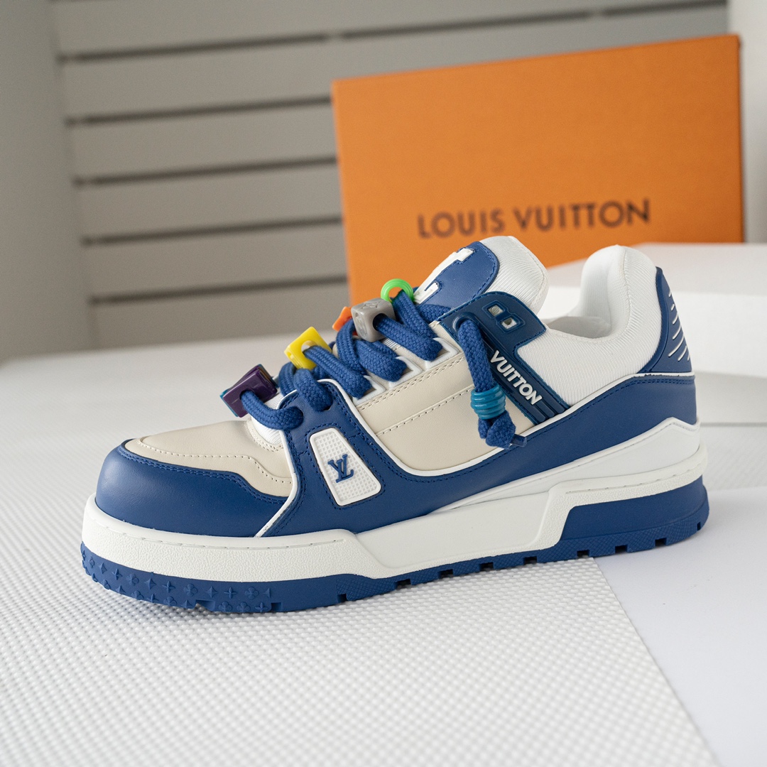 这款鞋子是AAAAA 1:1 质量 (非常棒). 使用了和原版一模一样的材料. 商标部分也保持了和路易威登/Louis Vuitton一样. 图片拍摄是实物鞋子拍摄, 您所收到的实物保证和我们图片一模一样.