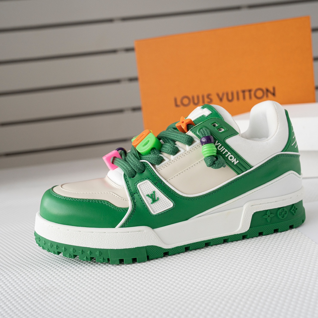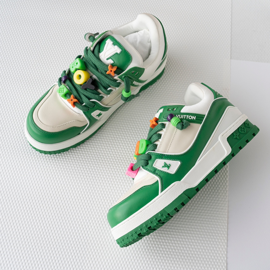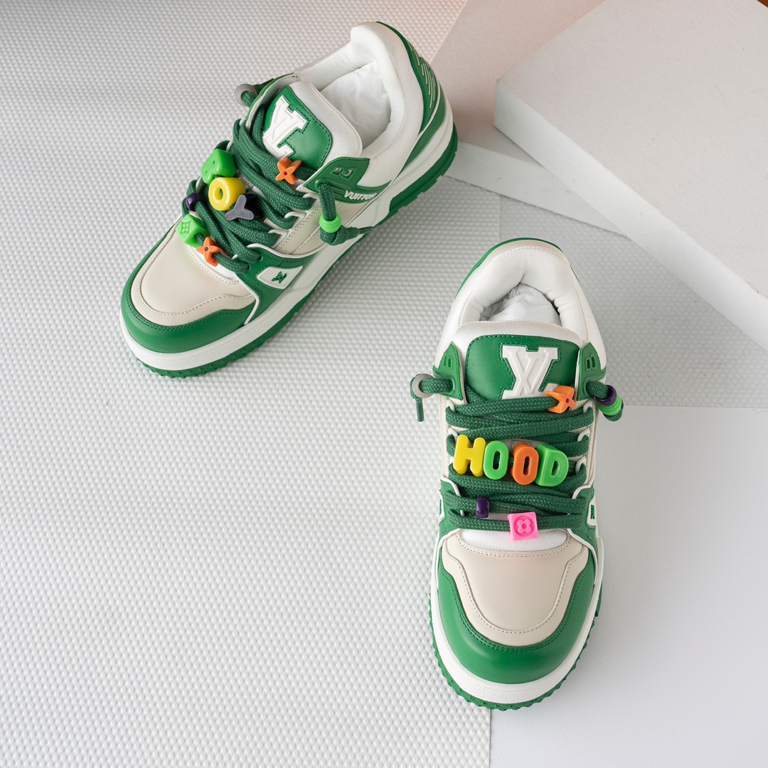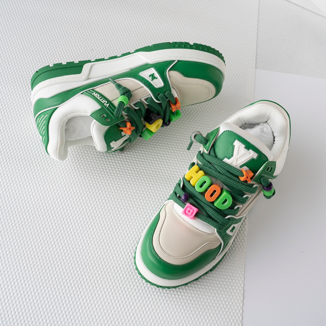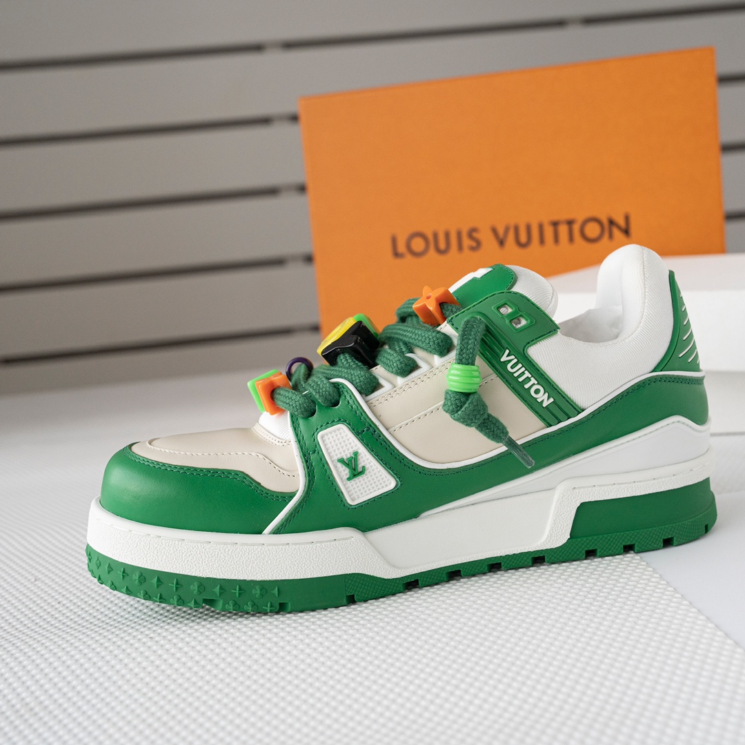 这款鞋子是AAAAA 1:1 质量 (非常棒). 使用了和原版一模一样的材料. 商标部分也保持了和路易威登/Louis Vuitton一样. 图片拍摄是实物鞋子拍摄, 您所收到的实物保证和我们图片一模一样.