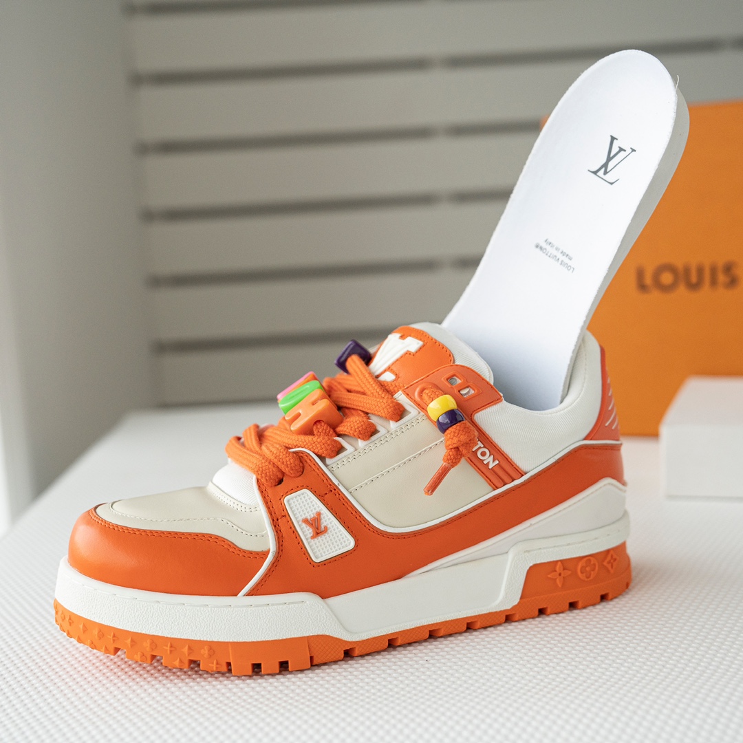 这款鞋子是AAAAA 1:1 质量 (非常棒). 使用了和原版一模一样的材料. 商标部分也保持了和路易威登/Louis Vuitton一样. 图片拍摄是实物鞋子拍摄, 您所收到的实物保证和我们图片一模一样.