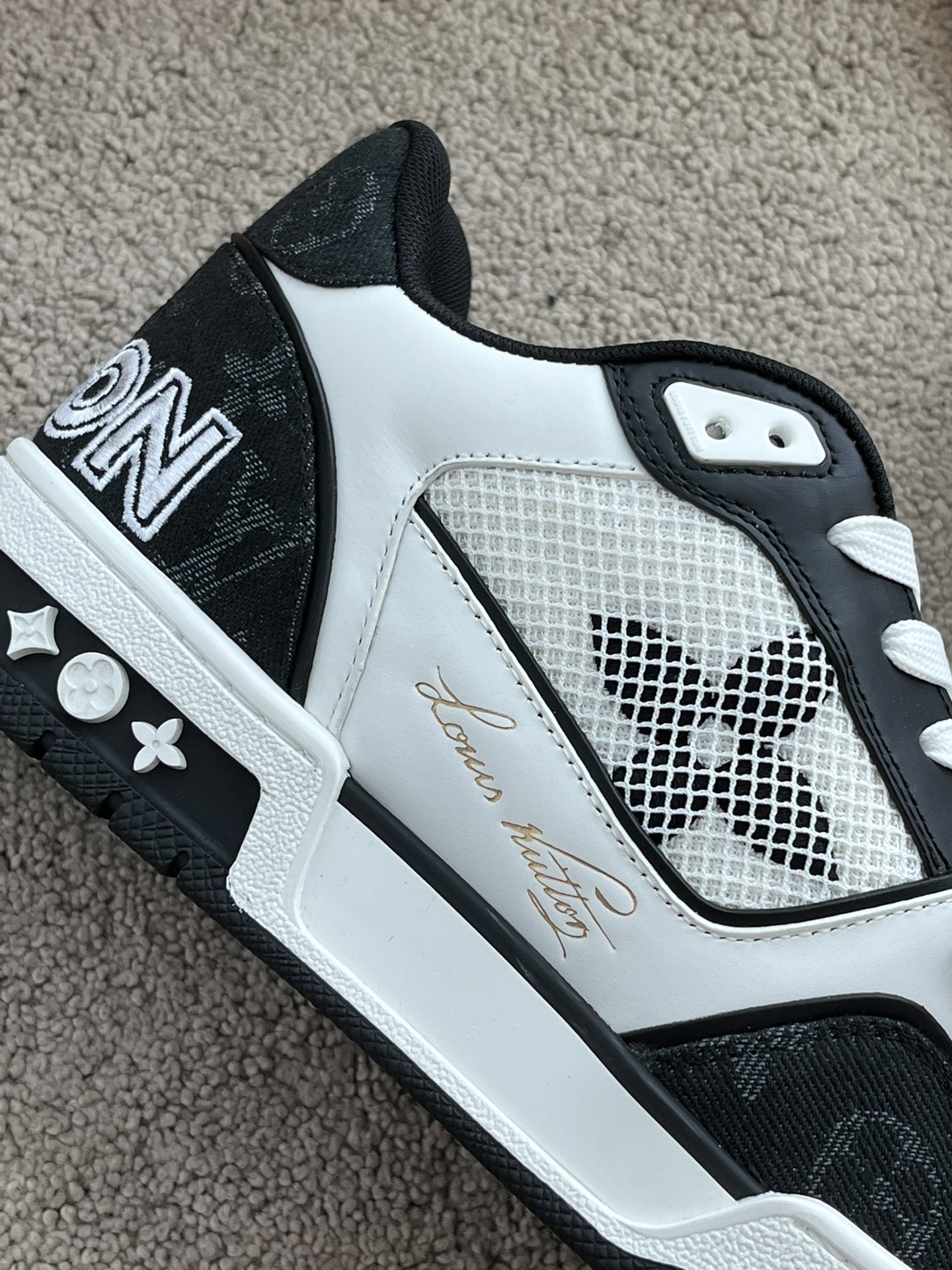 这款鞋子是AAAAA 1:1 质量 (非常棒). 使用了和原版一模一样的材料. 商标部分也保持了和路易威登/Louis Vuitton一样. 图片拍摄是实物鞋子拍摄, 您所收到的实物保证和我们图片一模一样.