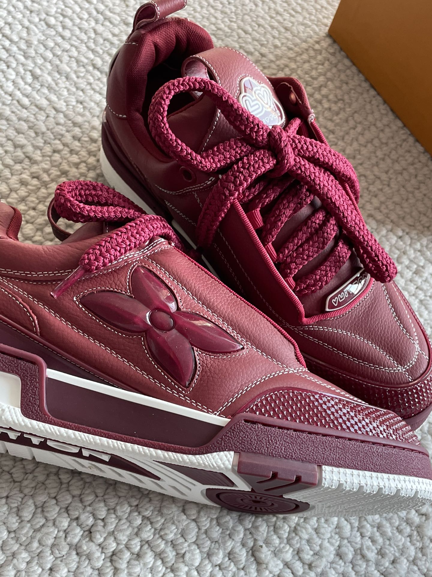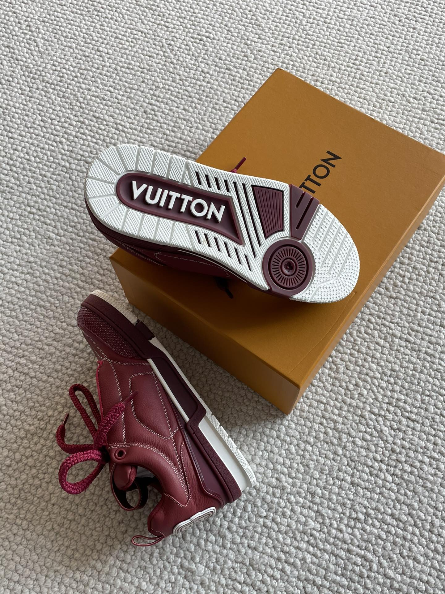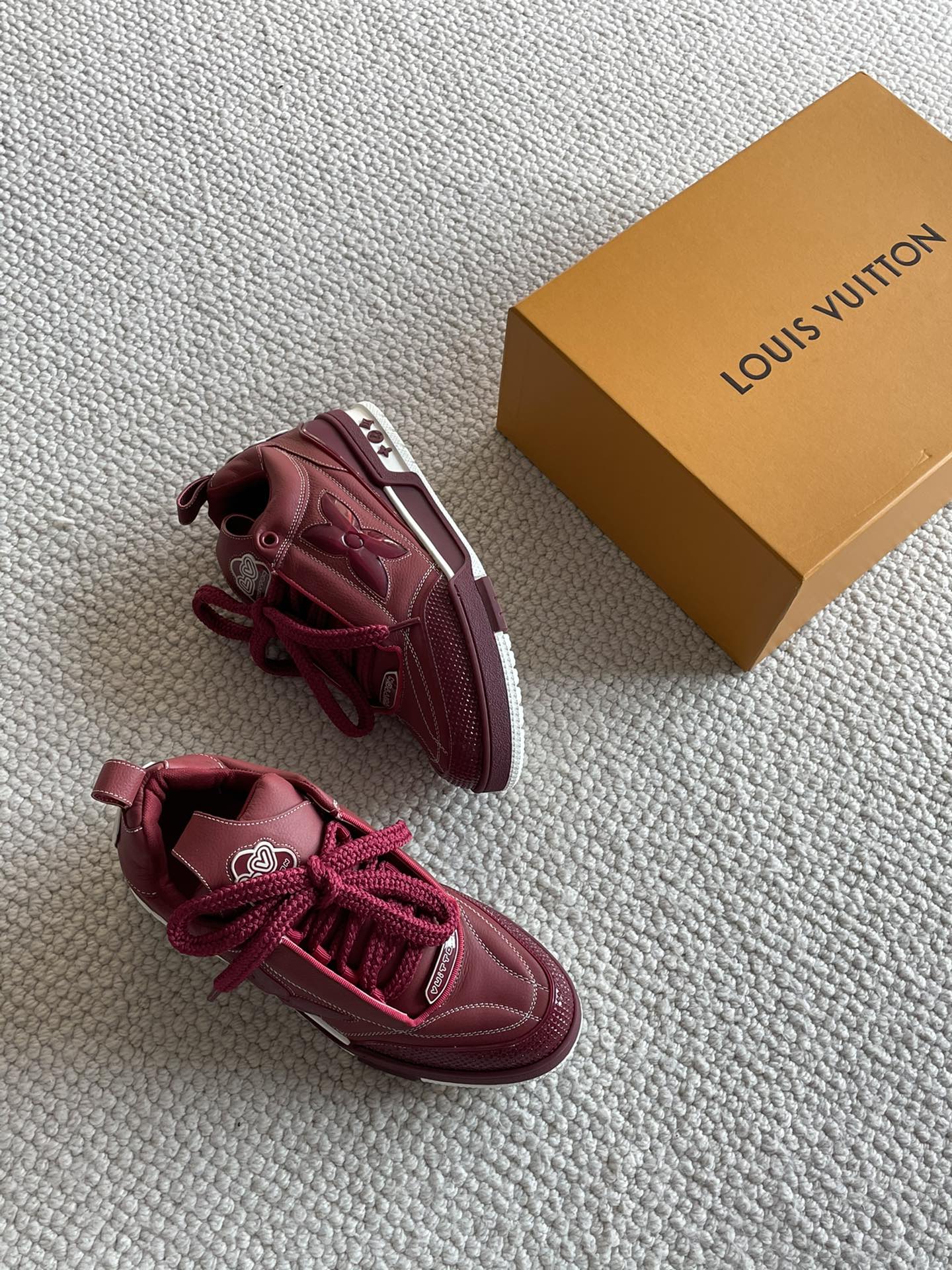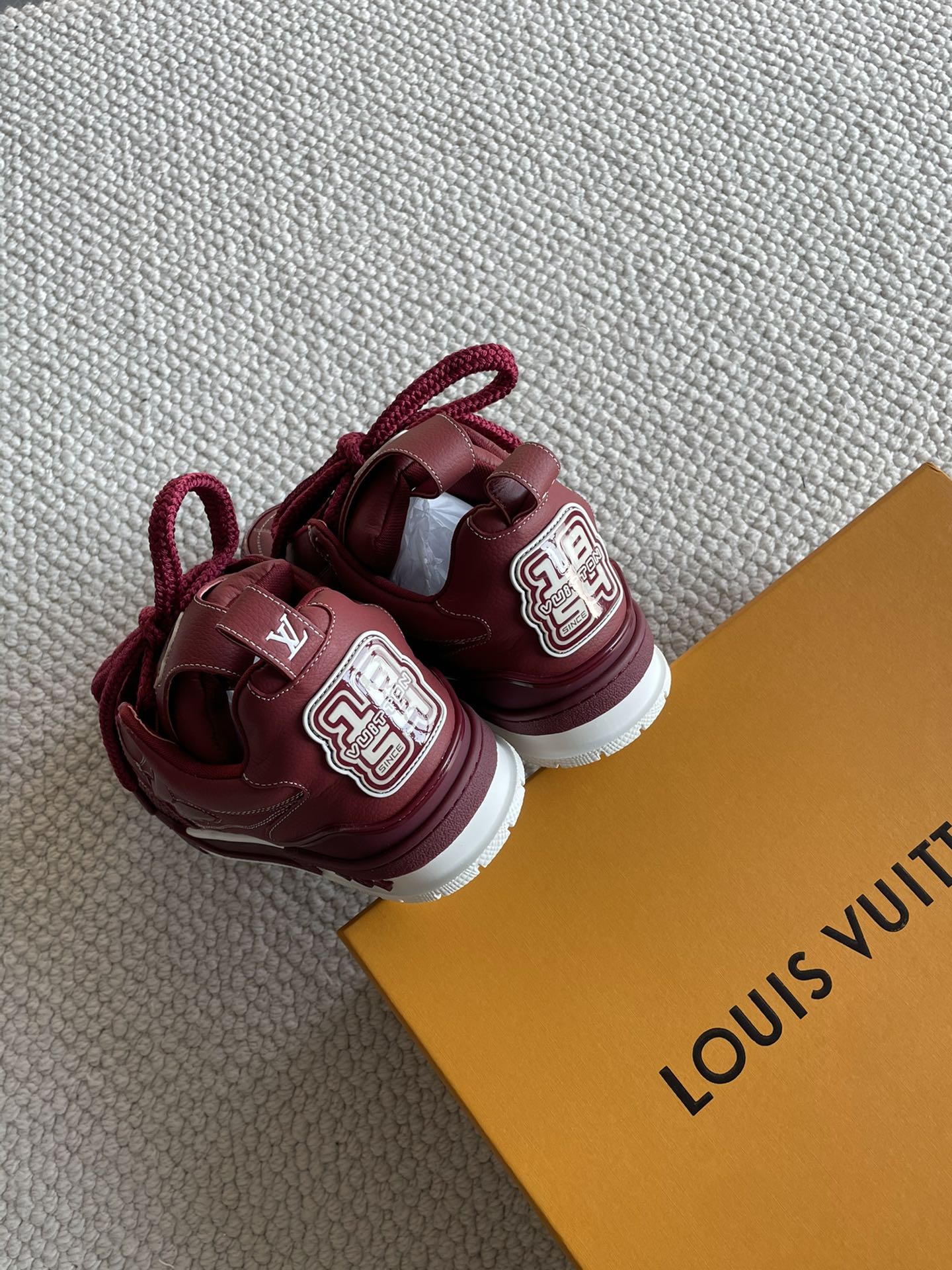 这款鞋子是AAAAA 1:1 质量 (非常棒). 使用了和原版一模一样的材料. 商标部分也保持了和路易威登/Louis Vuitton一样. 图片拍摄是实物鞋子拍摄, 您所收到的实物保证和我们图片一模一样.
