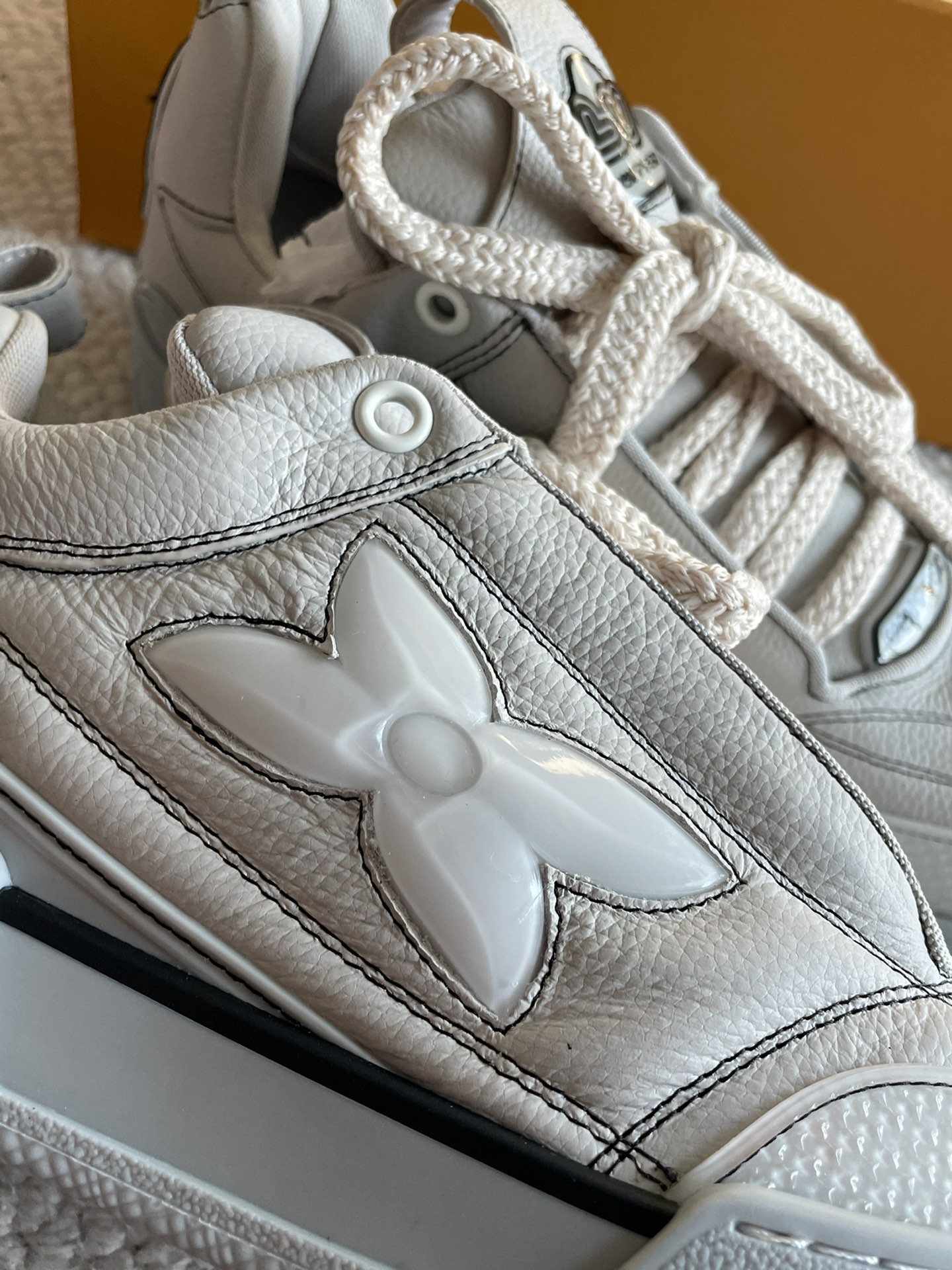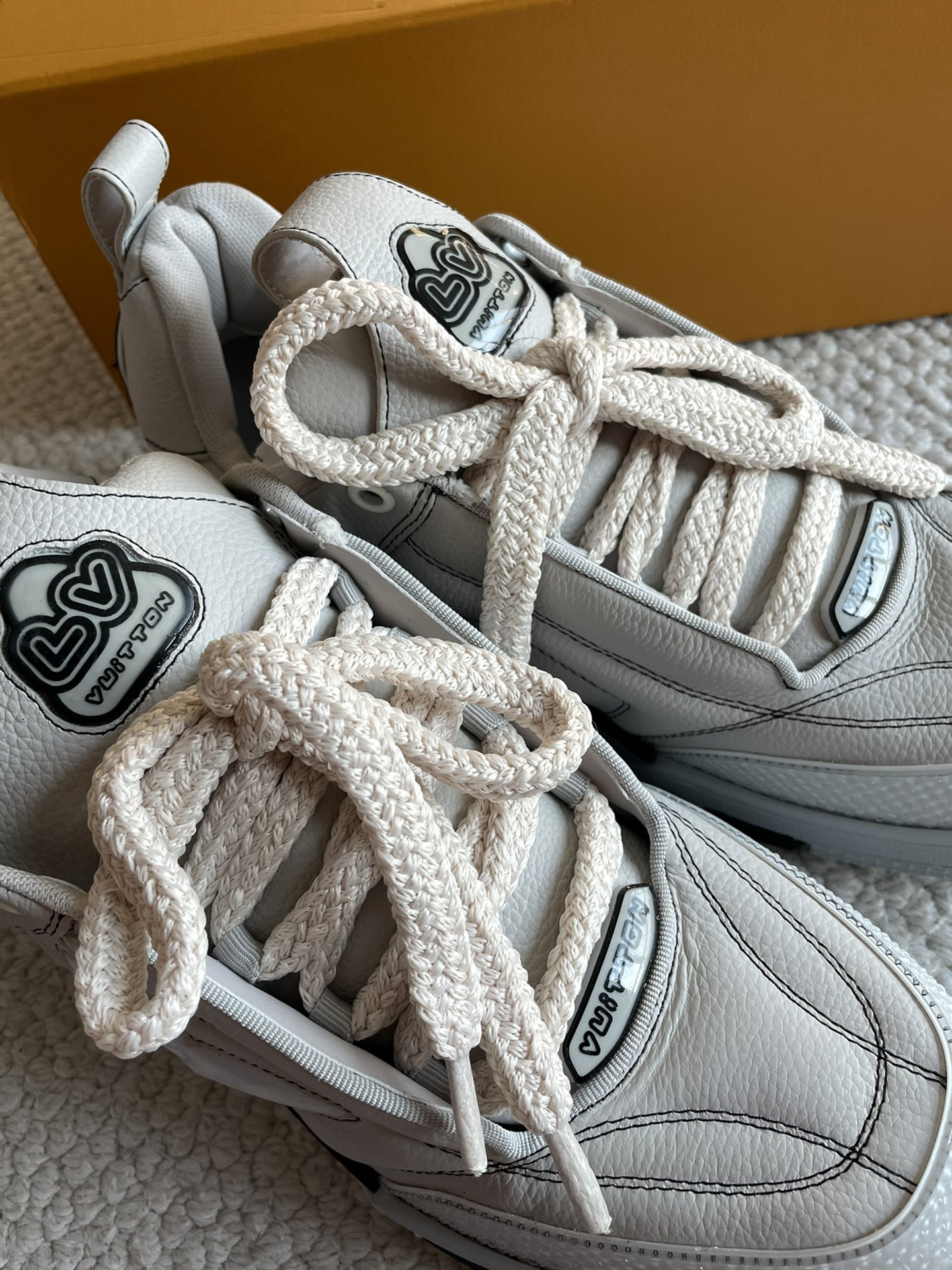 这款鞋子是AAAAA 1:1 质量 (非常棒). 使用了和原版一模一样的材料. 商标部分也保持了和路易威登/Louis Vuitton一样. 图片拍摄是实物鞋子拍摄, 您所收到的实物保证和我们图片一模一样.