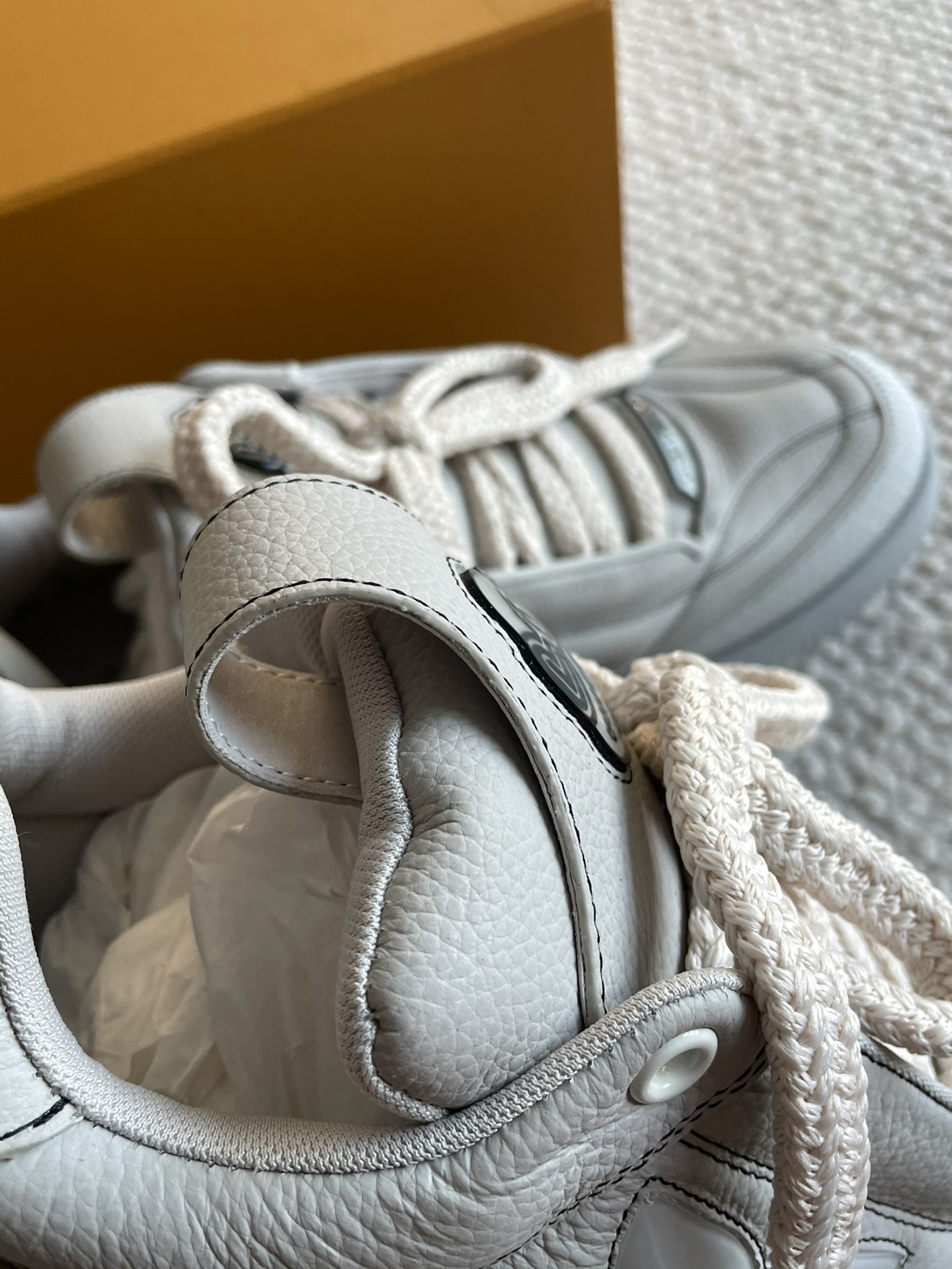 这款鞋子是AAAAA 1:1 质量 (非常棒). 使用了和原版一模一样的材料. 商标部分也保持了和路易威登/Louis Vuitton一样. 图片拍摄是实物鞋子拍摄, 您所收到的实物保证和我们图片一模一样.