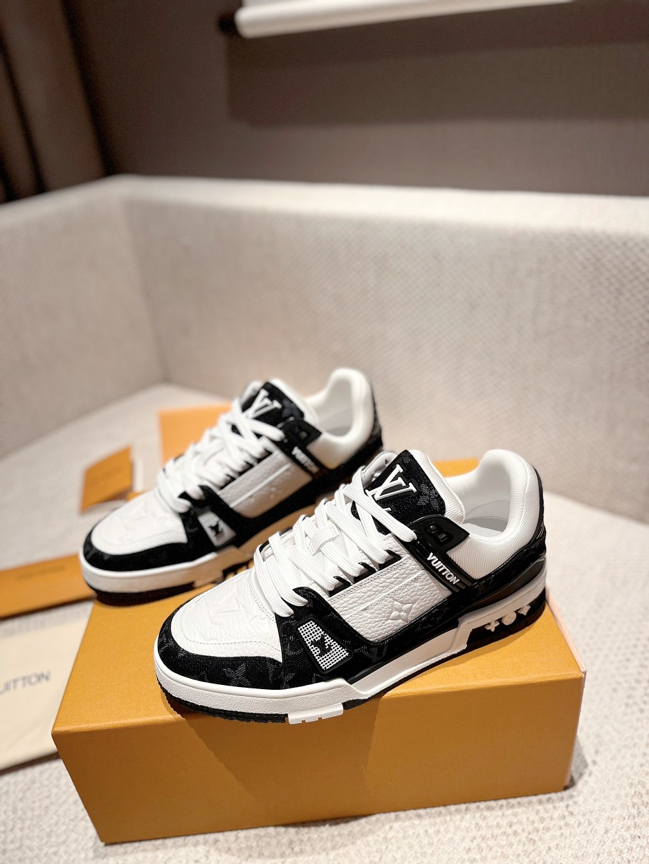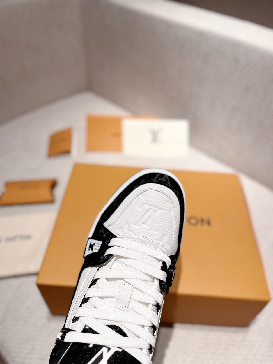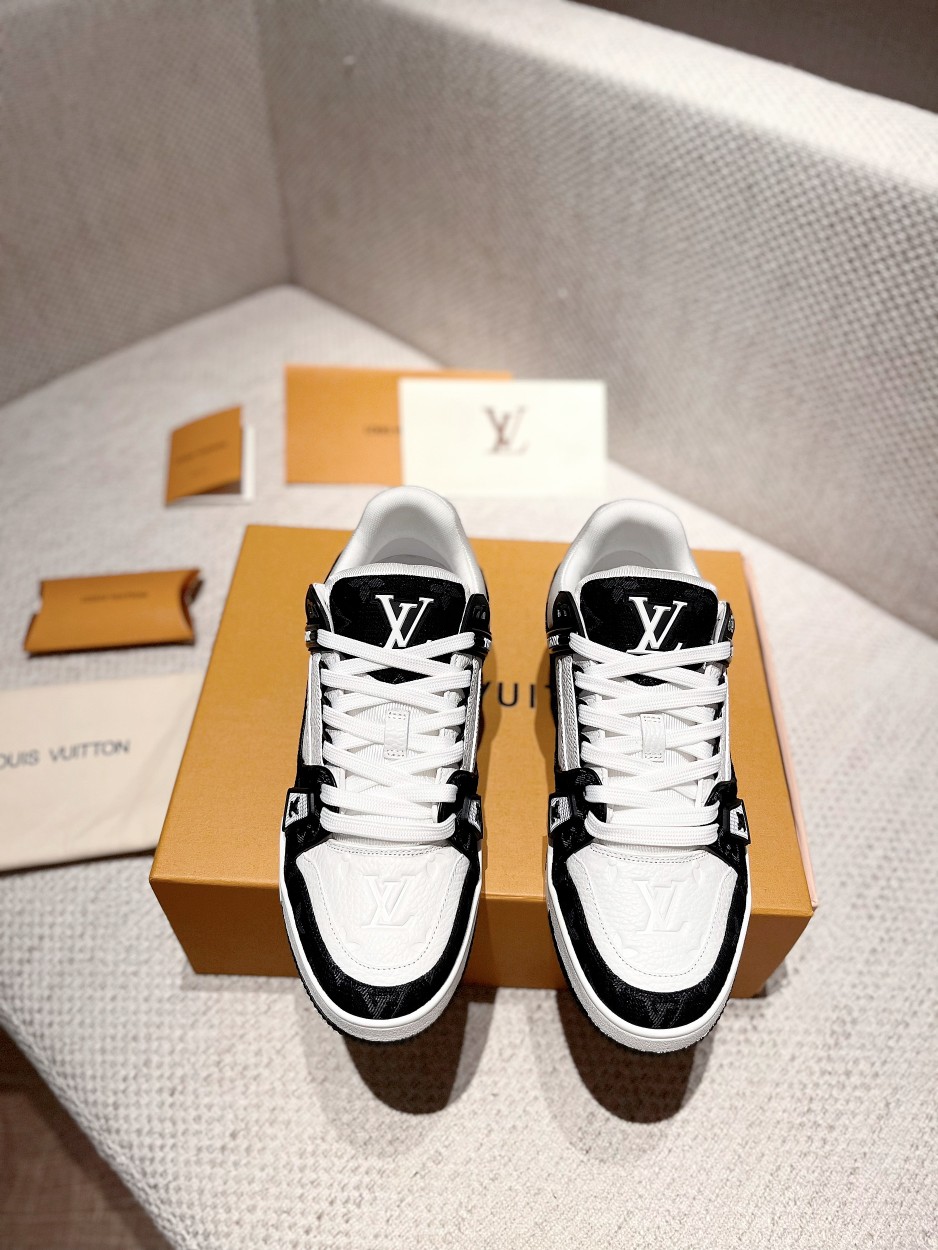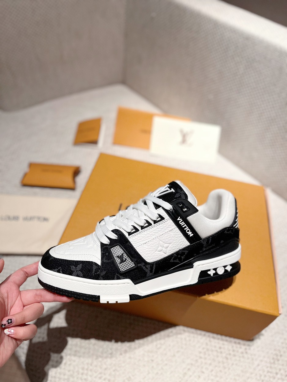 这款鞋子是AAAAA 1:1 质量 (非常棒). 使用了和原版一模一样的材料. 商标部分也保持了和路易威登/Louis Vuitton一样. 图片拍摄是实物鞋子拍摄, 您所收到的实物保证和我们图片一模一样.