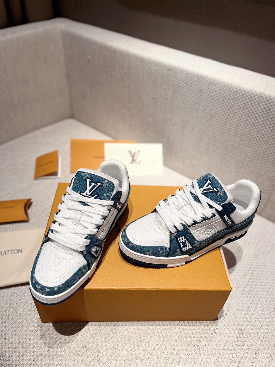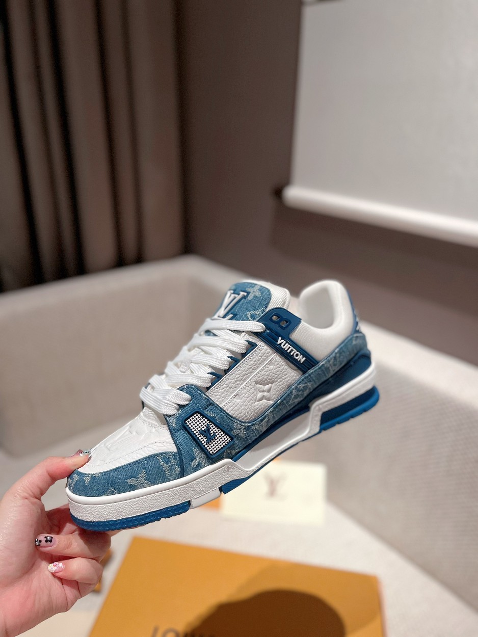 这款鞋子是AAAAA 1:1 质量 (非常棒). 使用了和原版一模一样的材料. 商标部分也保持了和路易威登/Louis Vuitton一样. 图片拍摄是实物鞋子拍摄, 您所收到的实物保证和我们图片一模一样.