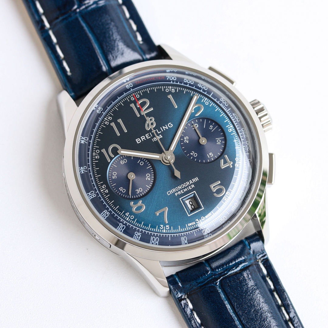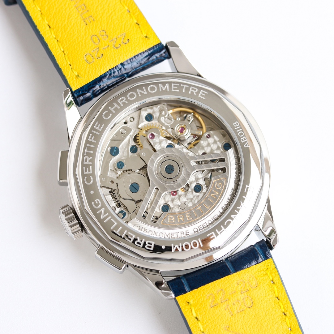 这款手表是AAAAA 1:1 质量 (非常棒). 使用了和原版一模一样的材料. 商标部分也保持了和Breitling一样. 图片拍摄是实物手表拍摄, 您所收到的实物保证和我们图片一模一样.