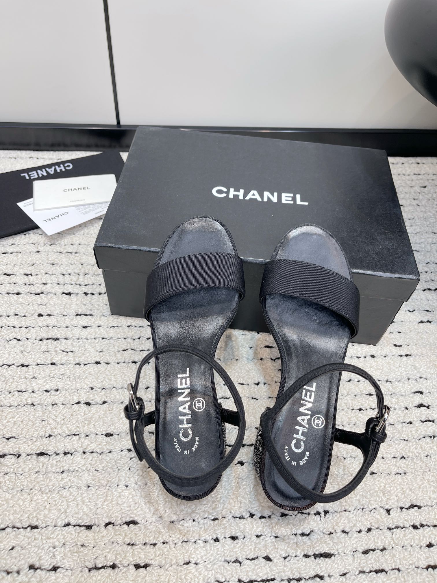 这款鞋子是AAAAA 1:1 质量 (非常棒). 使用了和原版一模一样的材料. 商标部分也保持了和香奈儿/Chanel一样. 图片拍摄是实物鞋子拍摄, 您所收到的实物保证和我们图片一模一样.