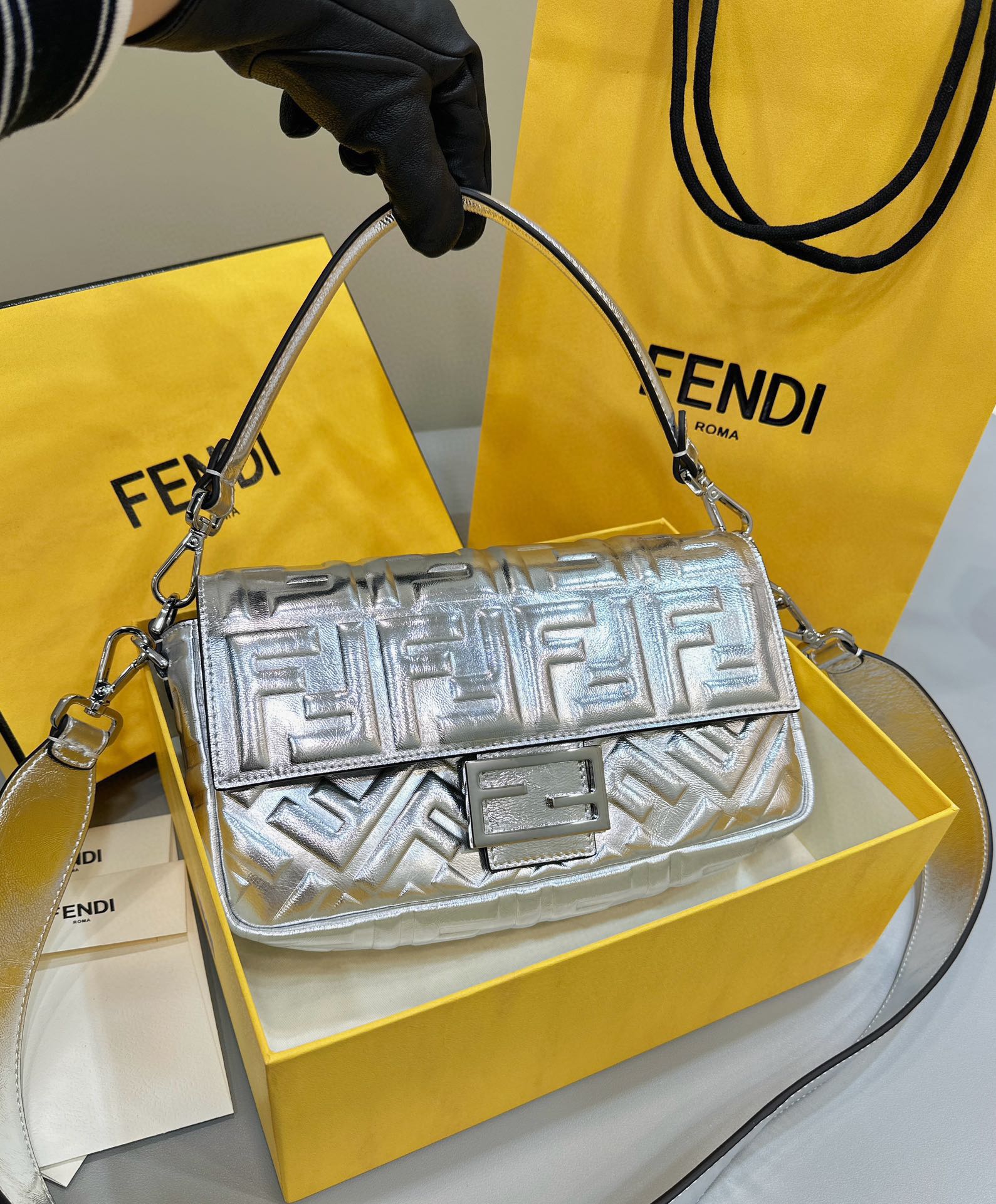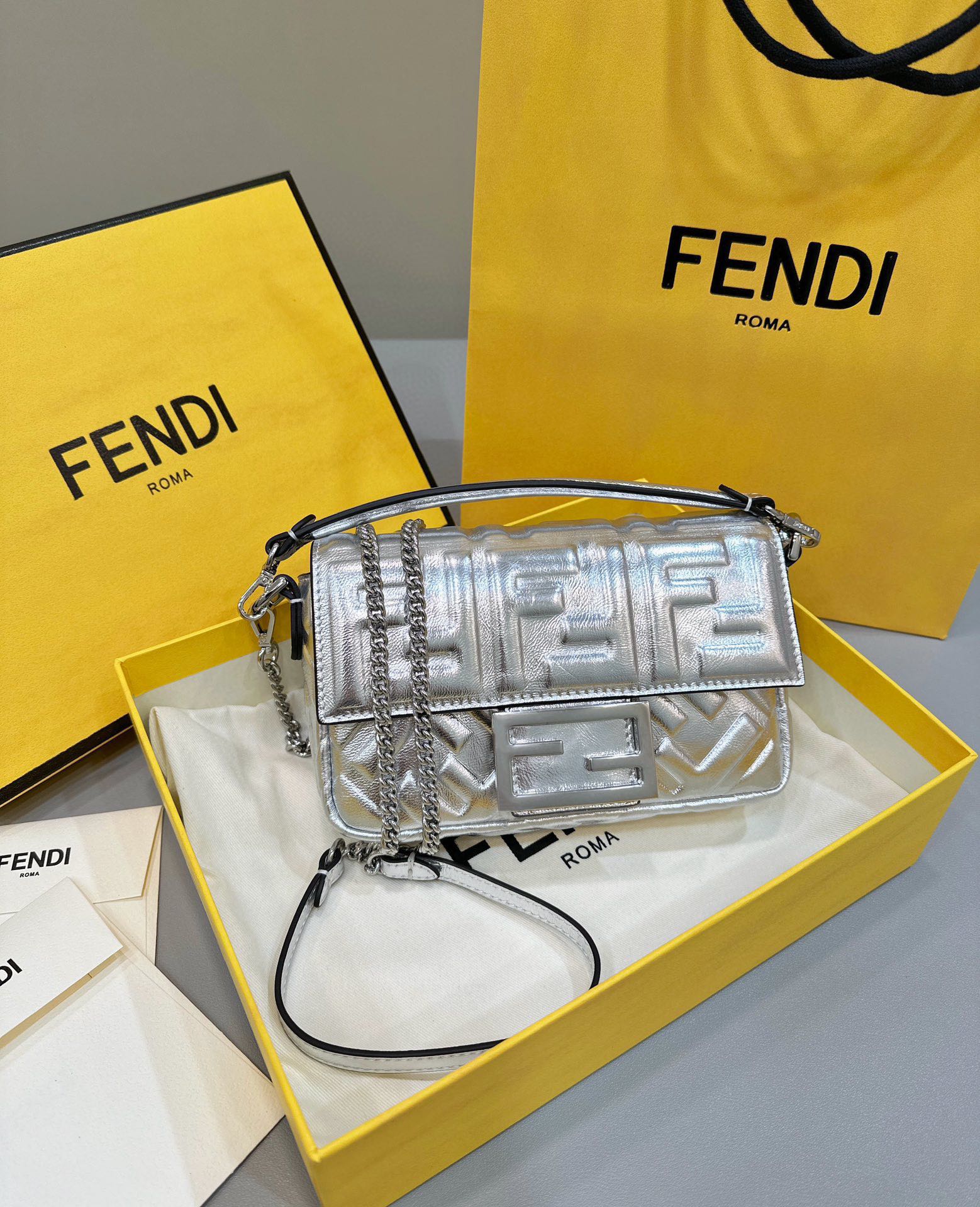 这款包包是AAAAA 1:1 质量 (非常棒). 使用了和原版一模一样的材料. 商标部分也保持了和芬迪/Fendi一样. 图片拍摄是实物包包拍摄, 您所收到的实物保证和我们图片一模一样.