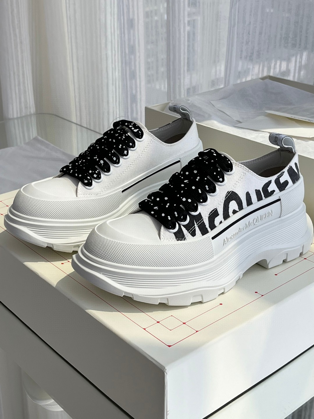 这款鞋子是AAAAA 1:1 质量 (非常棒). 使用了和原版一模一样的材料. 商标部分也保持了和亚历山大·麦昆/McQueen一样. 图片拍摄是实物鞋子拍摄, 您所收到的实物保证和我们图片一模一样.