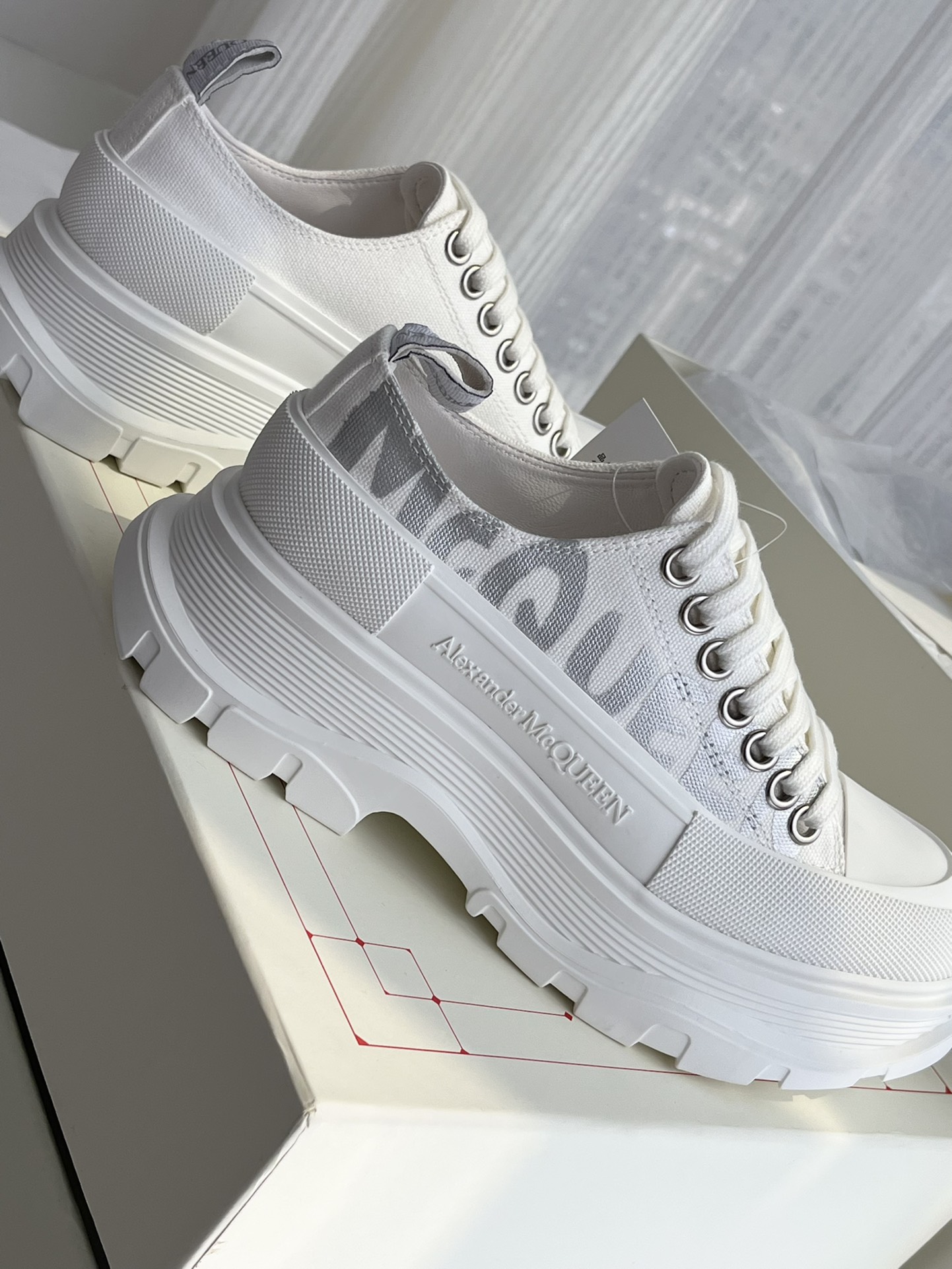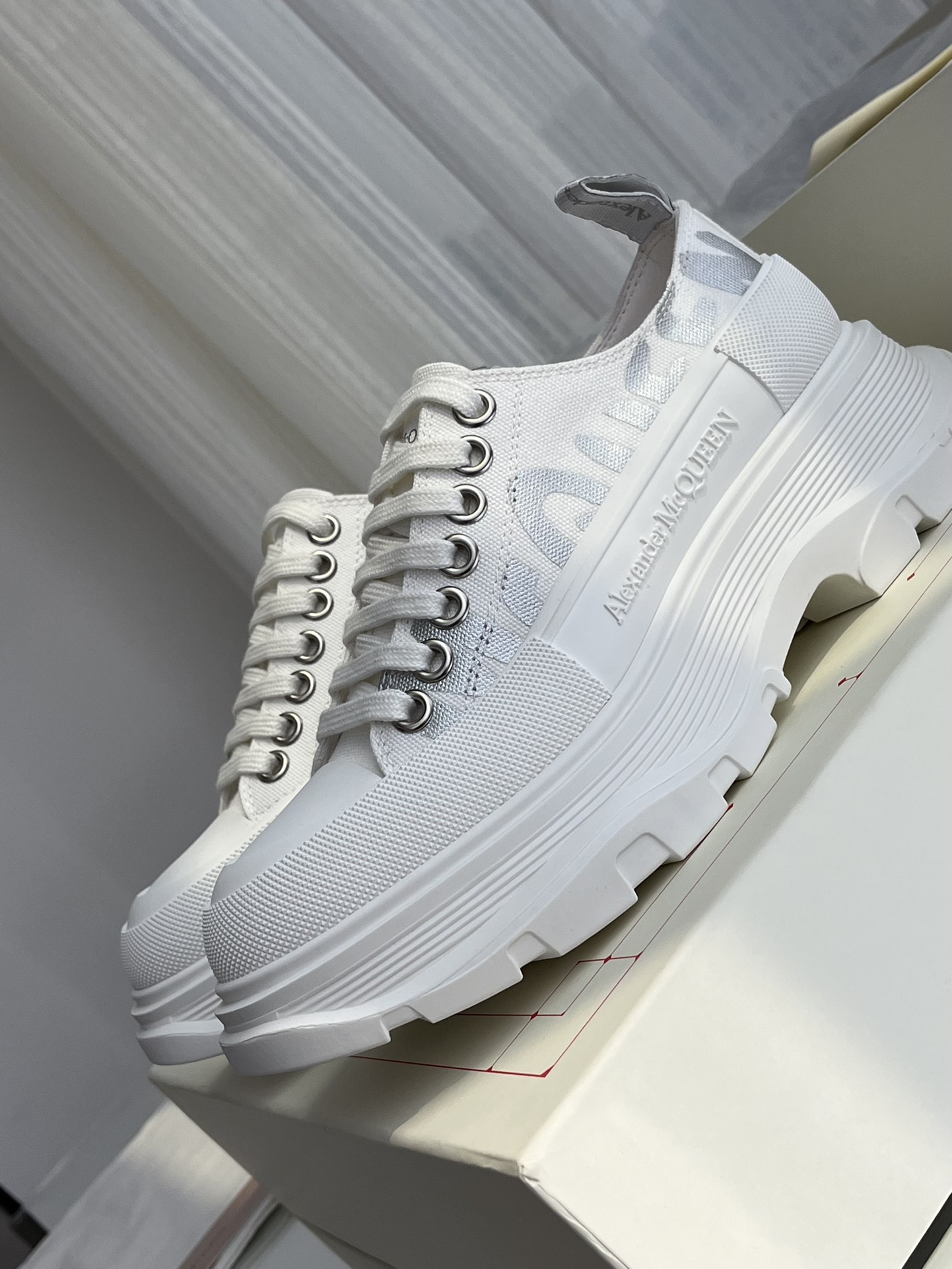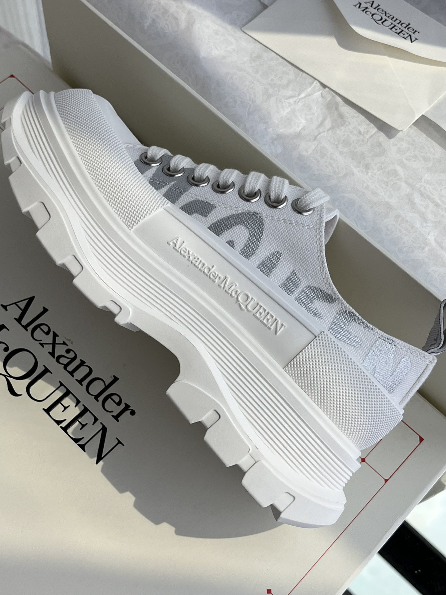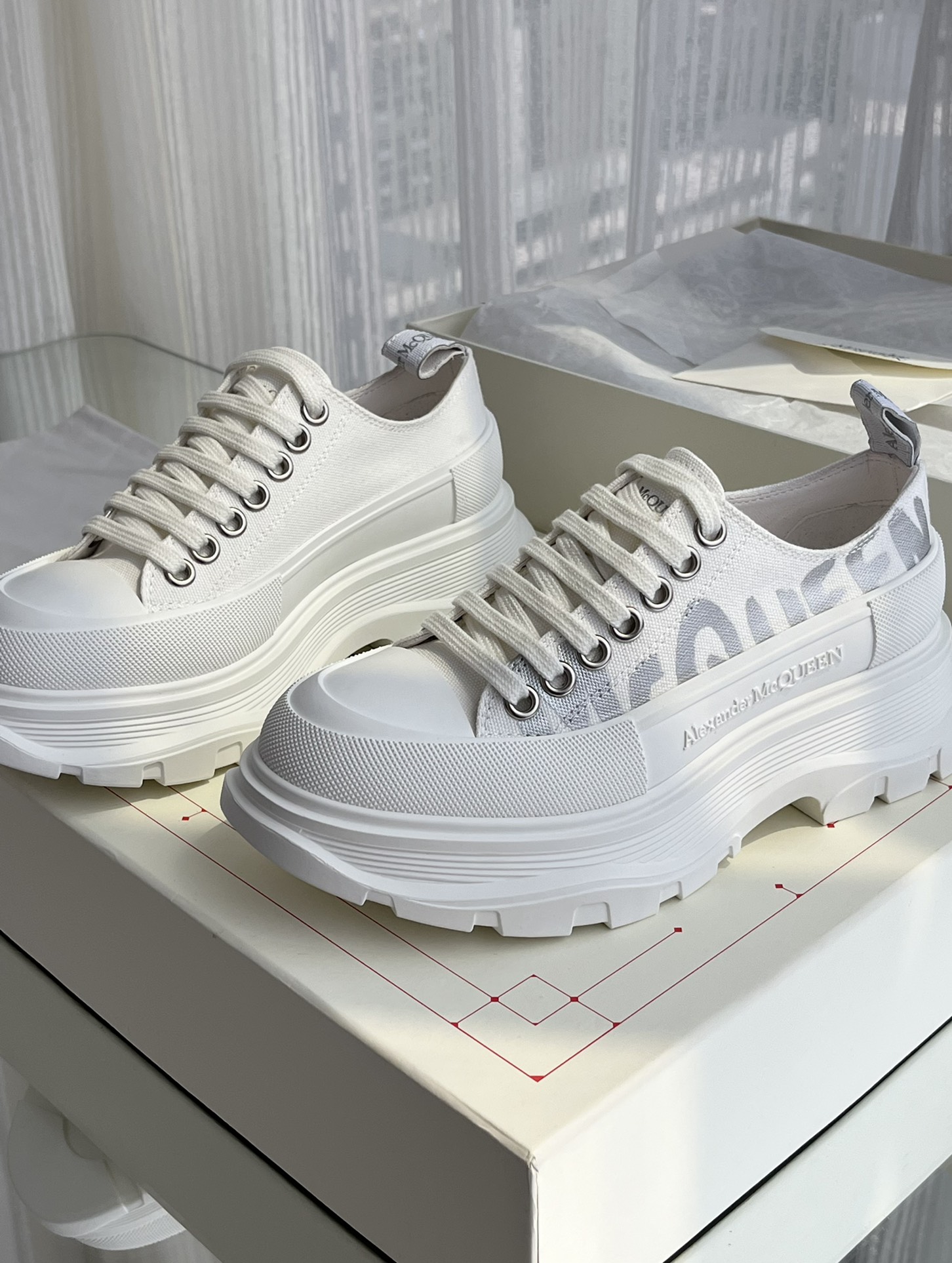 这款鞋子是AAAAA 1:1 质量 (非常棒). 使用了和原版一模一样的材料. 商标部分也保持了和亚历山大·麦昆/McQueen一样. 图片拍摄是实物鞋子拍摄, 您所收到的实物保证和我们图片一模一样.