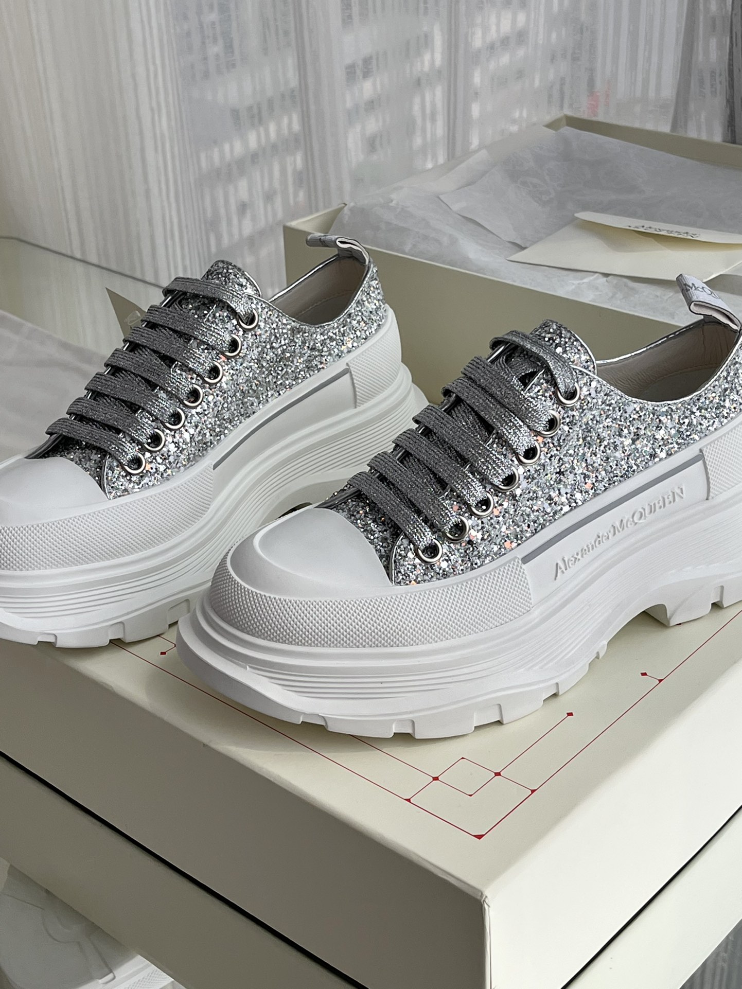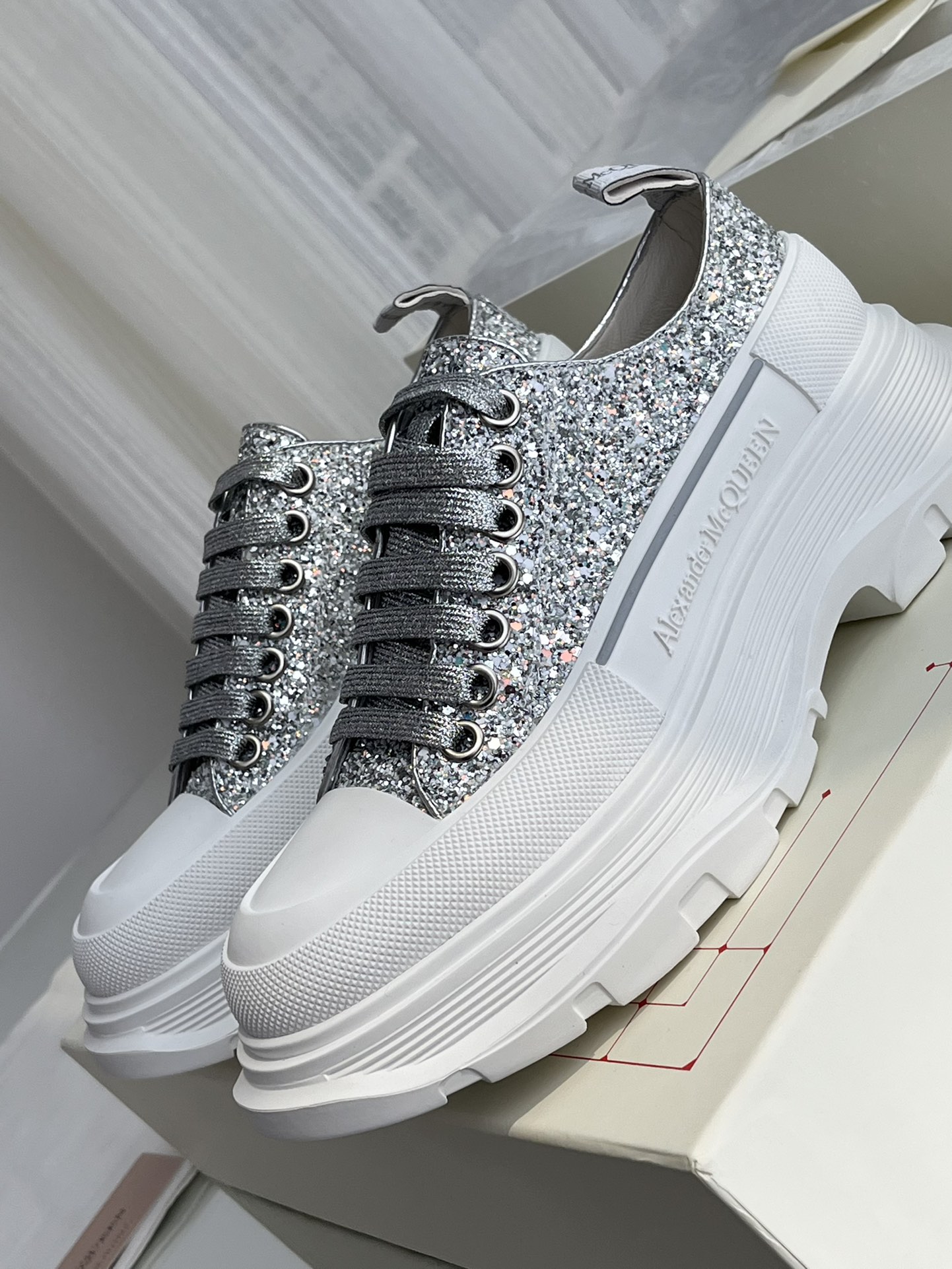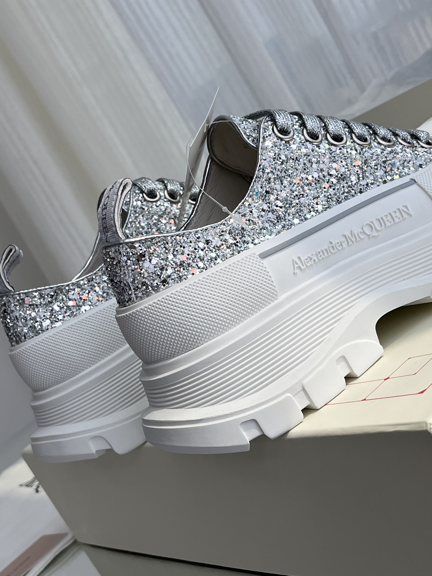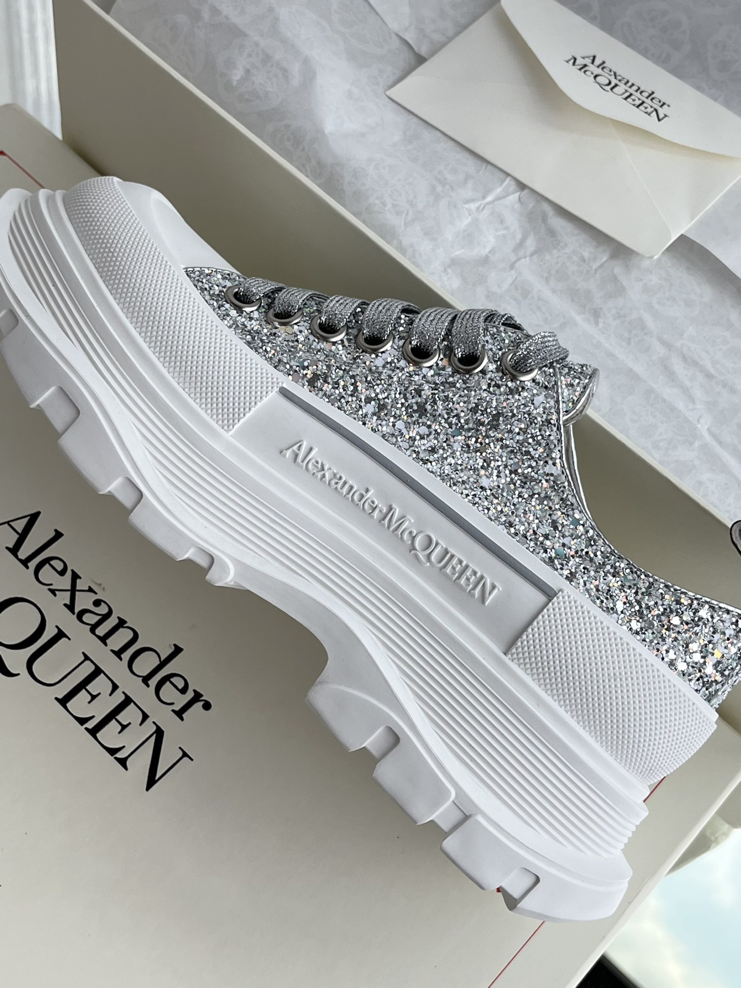 这款鞋子是AAAAA 1:1 质量 (非常棒). 使用了和原版一模一样的材料. 商标部分也保持了和亚历山大·麦昆/McQueen一样. 图片拍摄是实物鞋子拍摄, 您所收到的实物保证和我们图片一模一样.