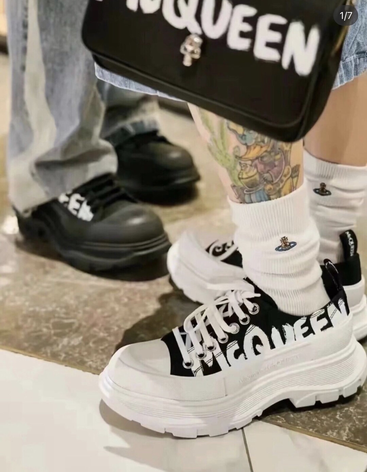 这款鞋子是AAAAA 1:1 质量 (非常棒). 使用了和原版一模一样的材料. 商标部分也保持了和亚历山大·麦昆/McQueen一样. 图片拍摄是实物鞋子拍摄, 您所收到的实物保证和我们图片一模一样.