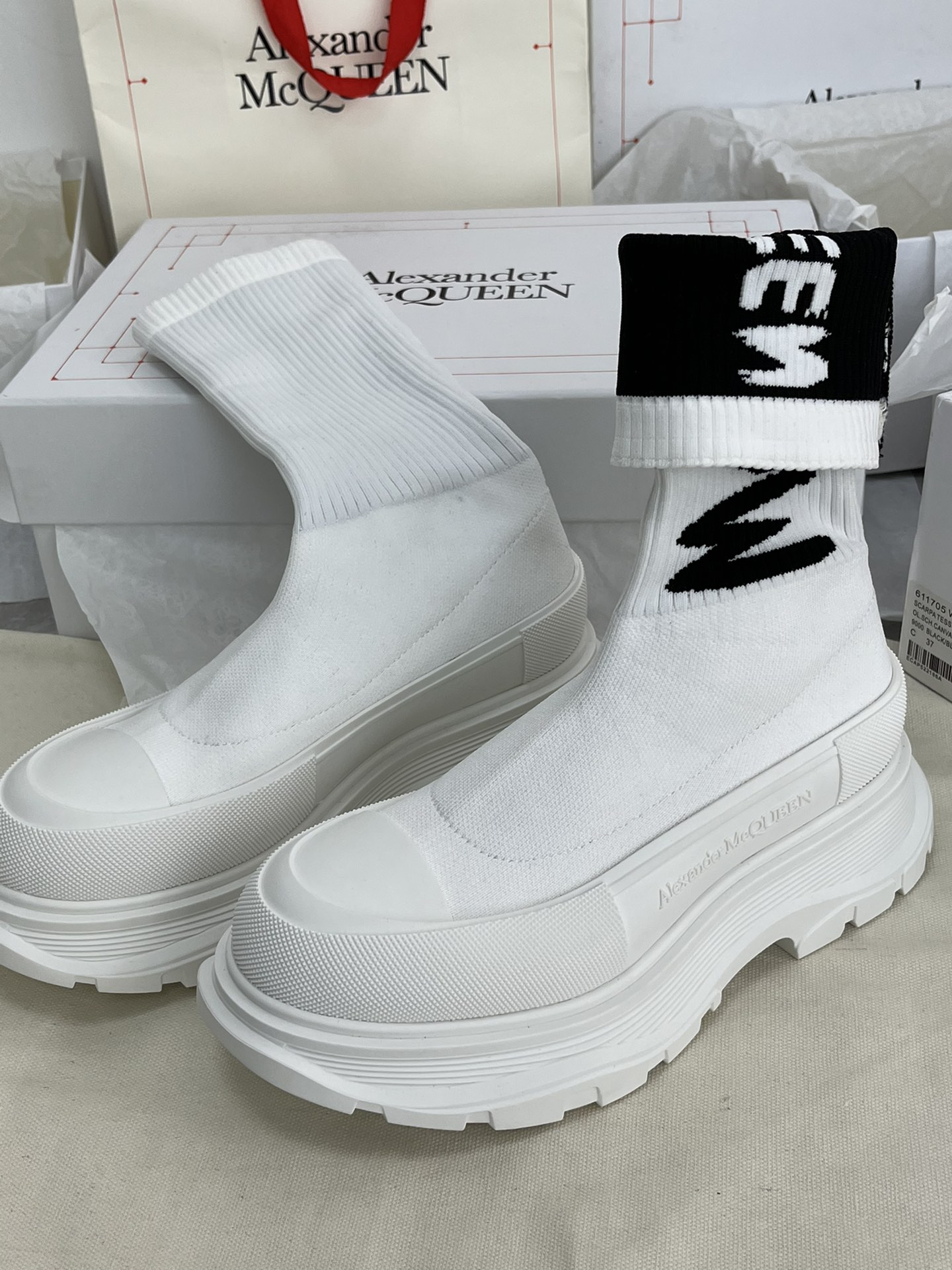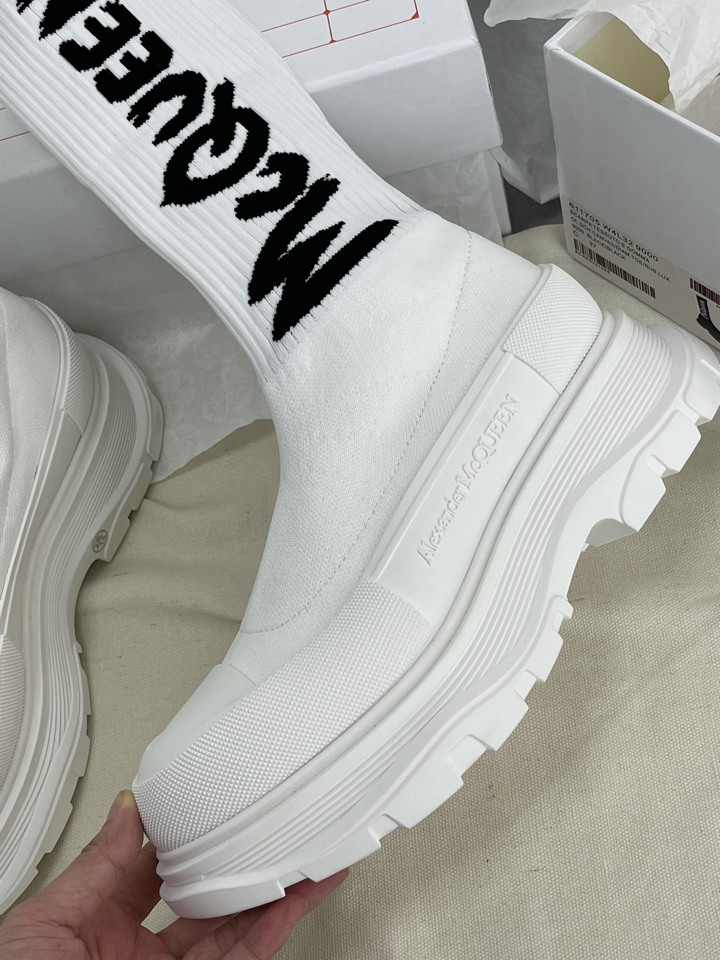 这款鞋子是AAAAA 1:1 质量 (非常棒). 使用了和原版一模一样的材料. 商标部分也保持了和亚历山大·麦昆/McQueen一样. 图片拍摄是实物鞋子拍摄, 您所收到的实物保证和我们图片一模一样.