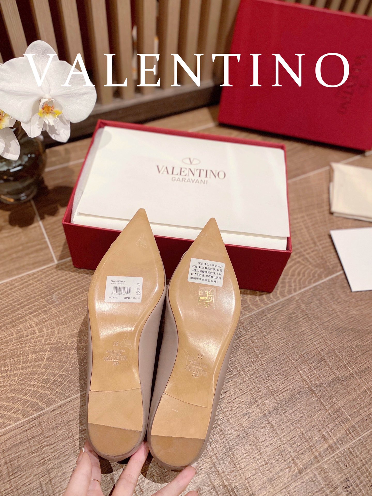 这款鞋子是AAAAA 1:1 质量 (非常棒). 使用了和原版一模一样的材料. 商标部分也保持了和华伦天奴/Valentino一样. 图片拍摄是实物鞋子拍摄, 您所收到的实物保证和我们图片一模一样.