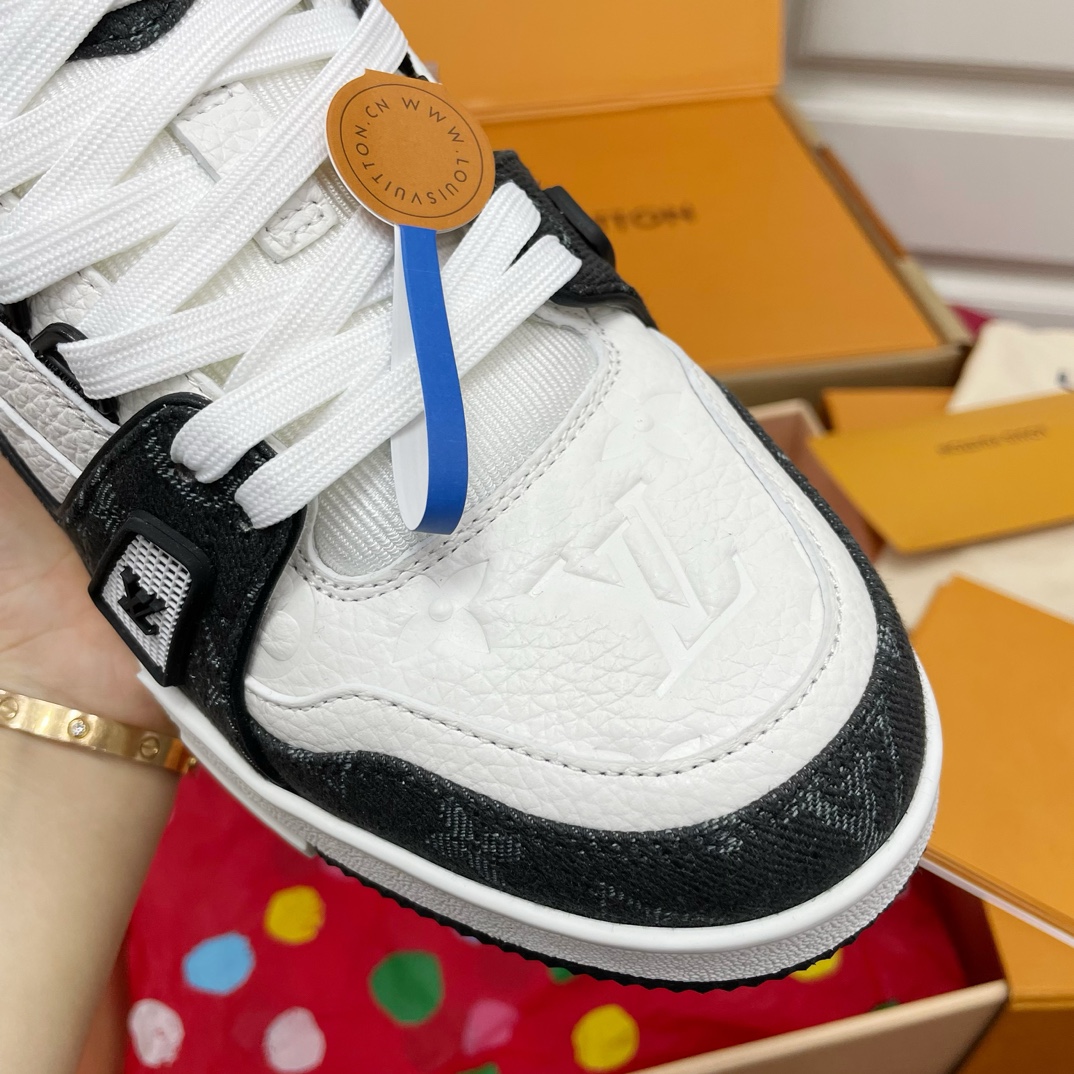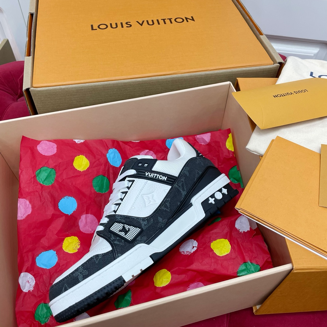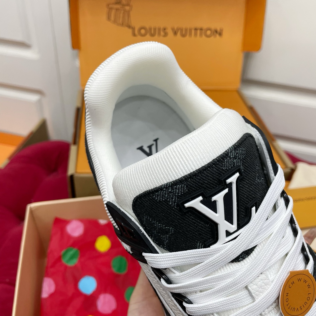 这款鞋子是AAAAA 1:1 质量 (非常棒). 使用了和原版一模一样的材料. 商标部分也保持了和路易威登/Louis Vuitton一样. 图片拍摄是实物鞋子拍摄, 您所收到的实物保证和我们图片一模一样.