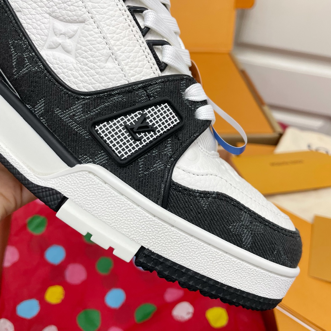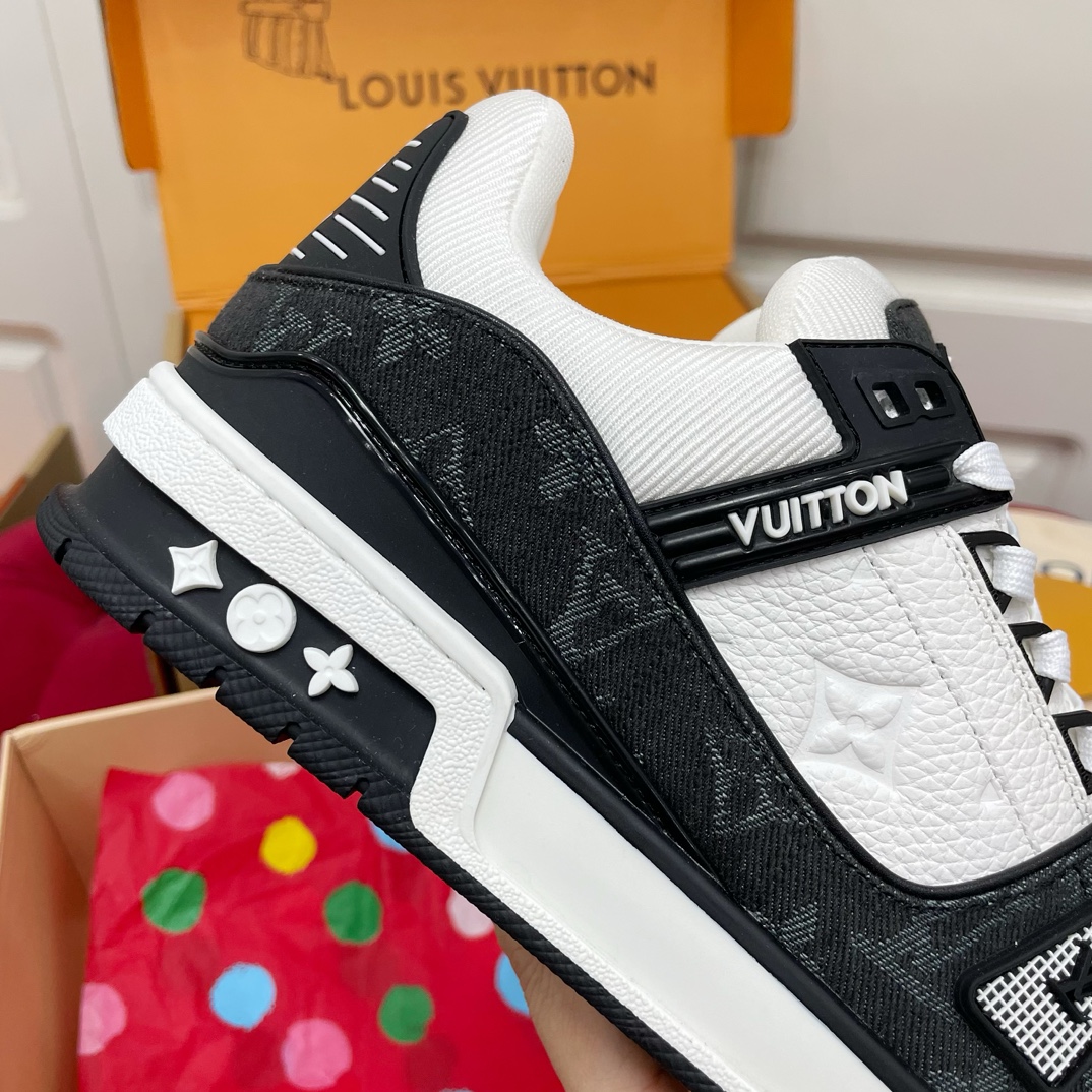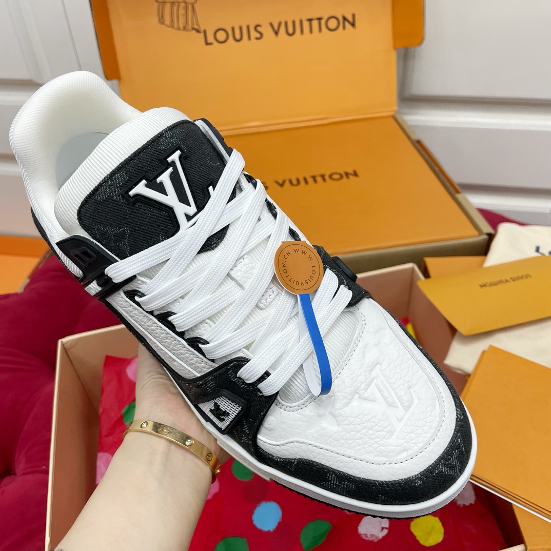 这款鞋子是AAAAA 1:1 质量 (非常棒). 使用了和原版一模一样的材料. 商标部分也保持了和路易威登/Louis Vuitton一样. 图片拍摄是实物鞋子拍摄, 您所收到的实物保证和我们图片一模一样.