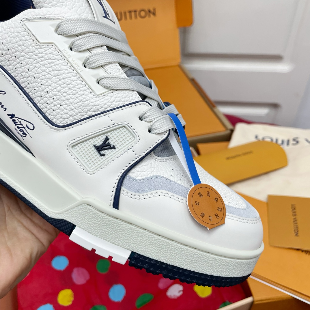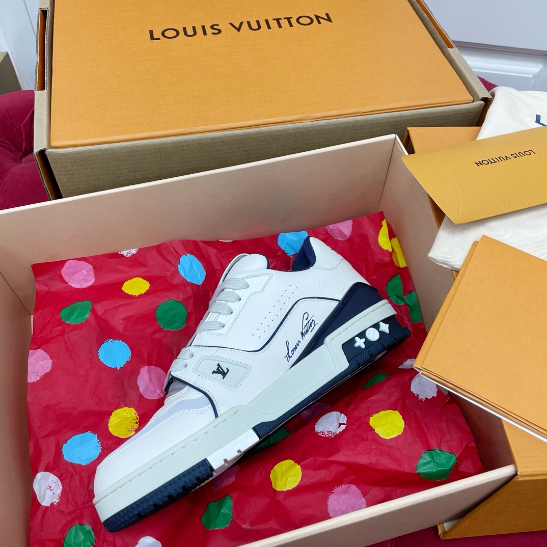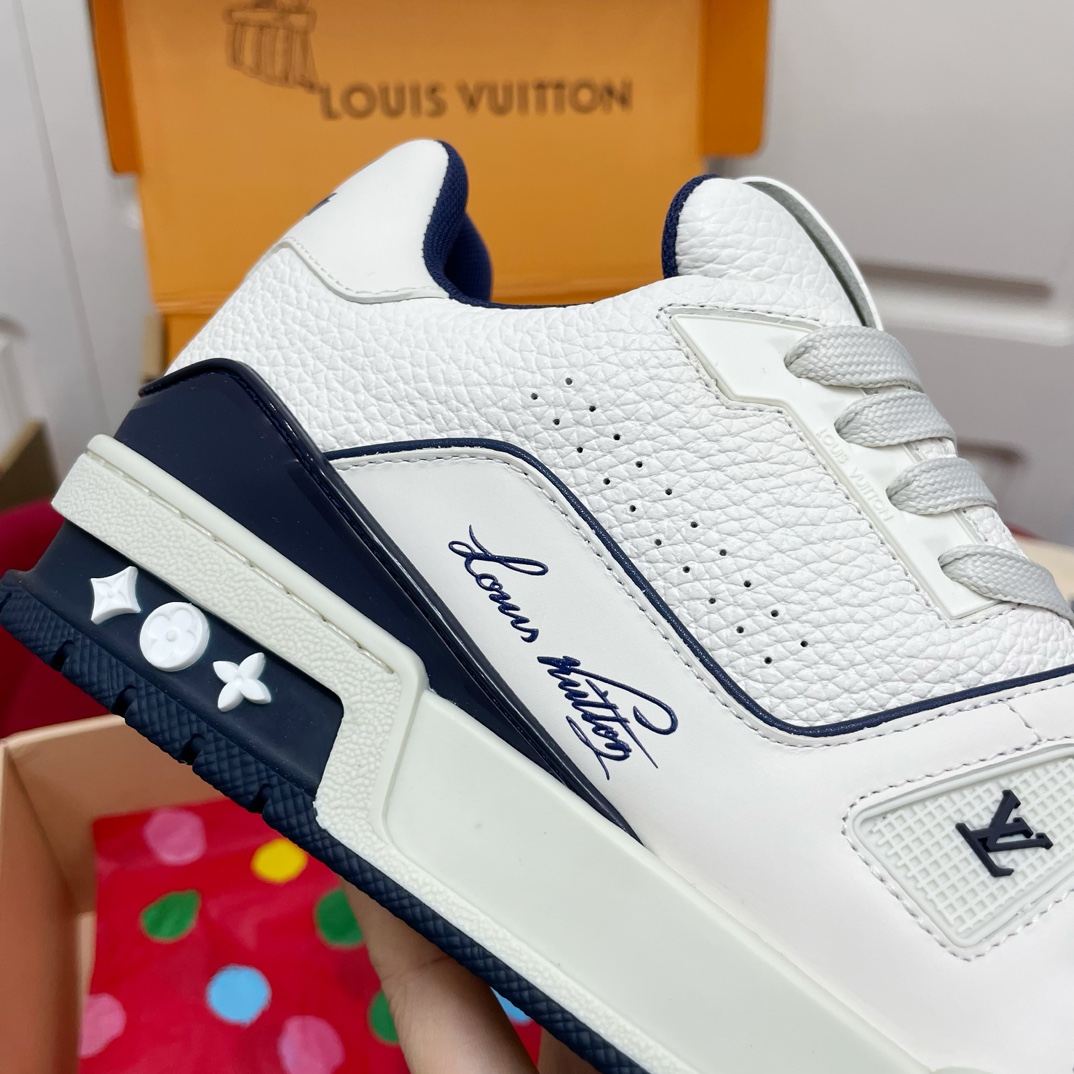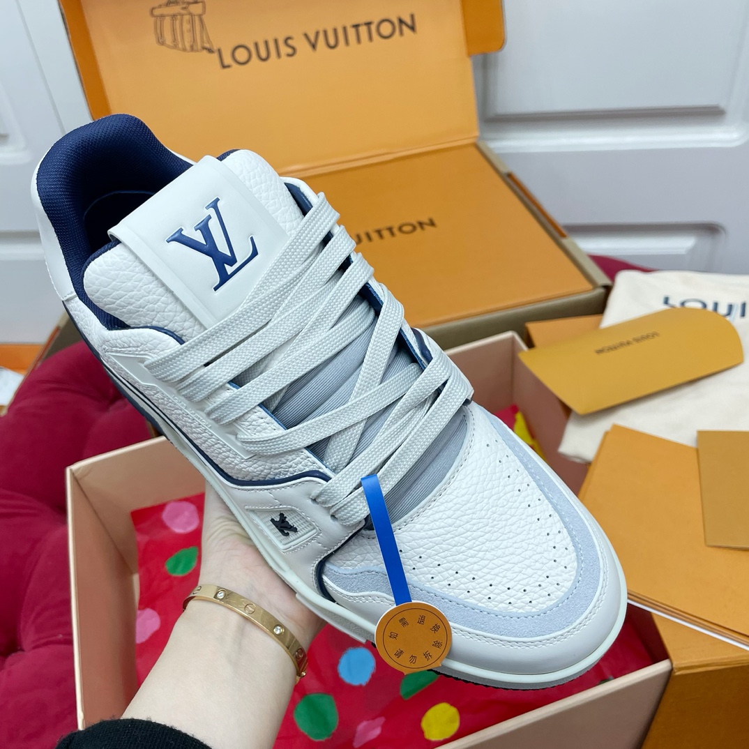 这款鞋子是AAAAA 1:1 质量 (非常棒). 使用了和原版一模一样的材料. 商标部分也保持了和路易威登/Louis Vuitton一样. 图片拍摄是实物鞋子拍摄, 您所收到的实物保证和我们图片一模一样.