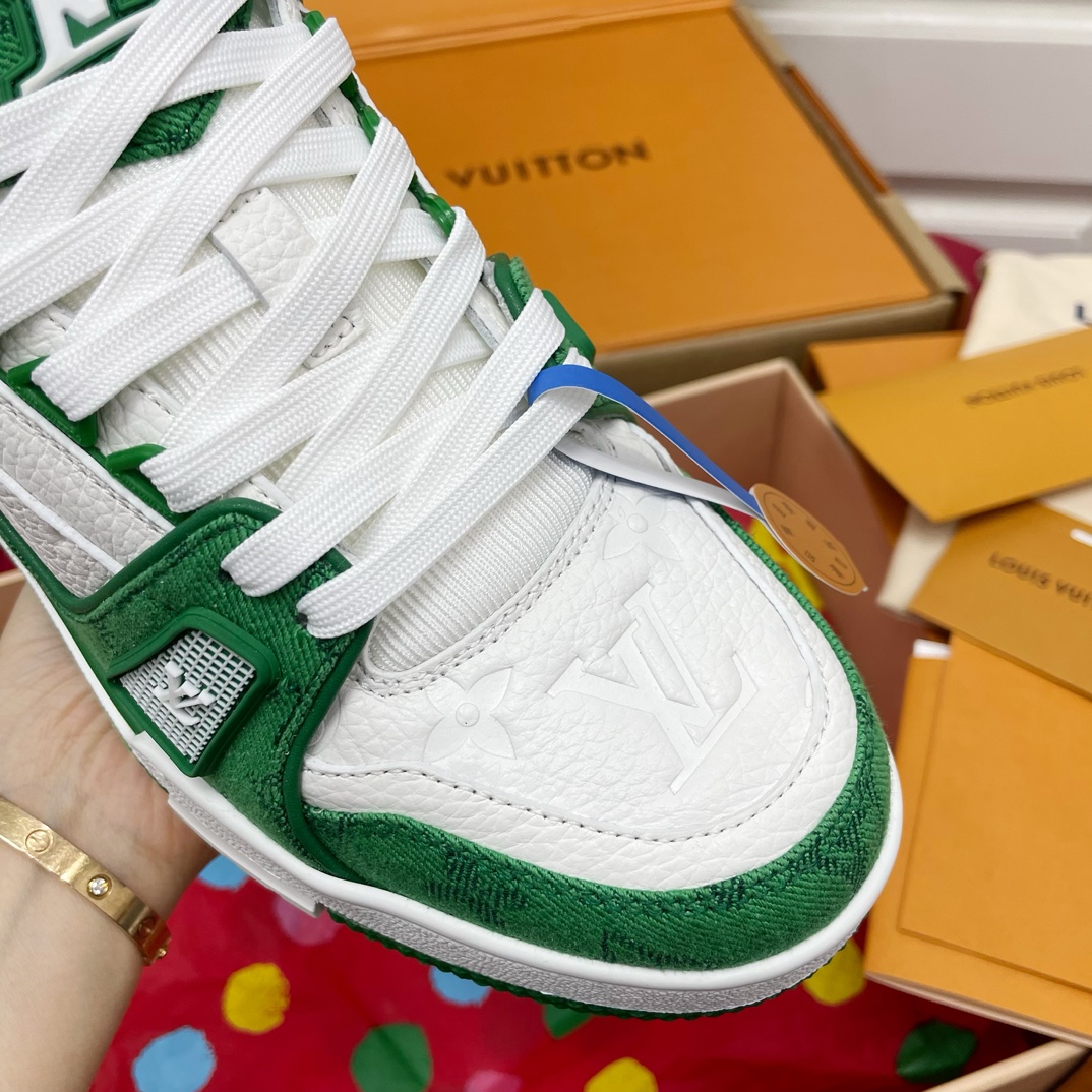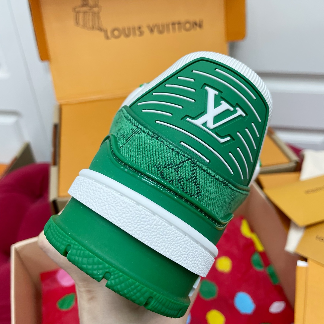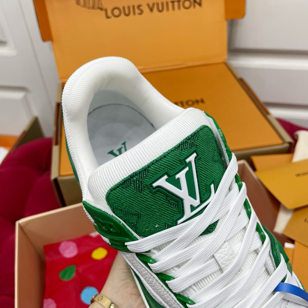 这款鞋子是AAAAA 1:1 质量 (非常棒). 使用了和原版一模一样的材料. 商标部分也保持了和路易威登/Louis Vuitton一样. 图片拍摄是实物鞋子拍摄, 您所收到的实物保证和我们图片一模一样.