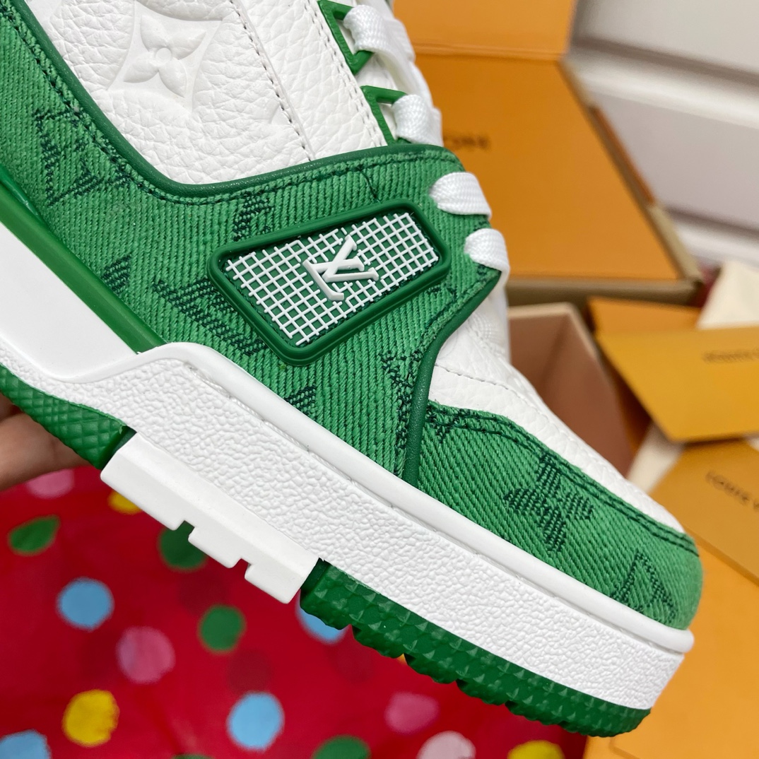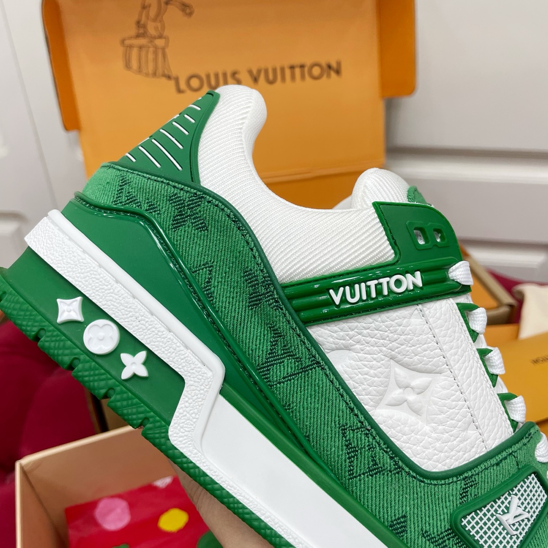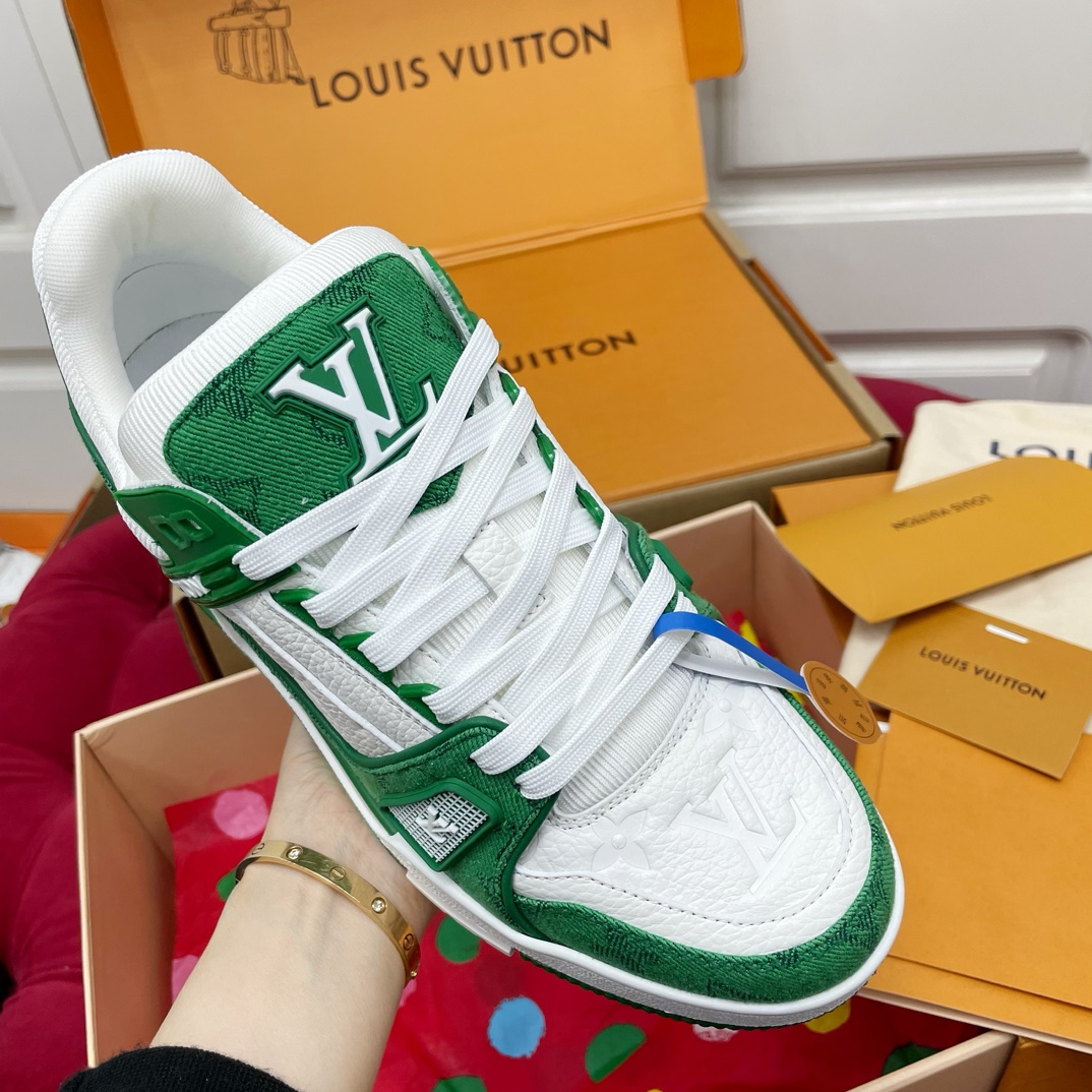 这款鞋子是AAAAA 1:1 质量 (非常棒). 使用了和原版一模一样的材料. 商标部分也保持了和路易威登/Louis Vuitton一样. 图片拍摄是实物鞋子拍摄, 您所收到的实物保证和我们图片一模一样.