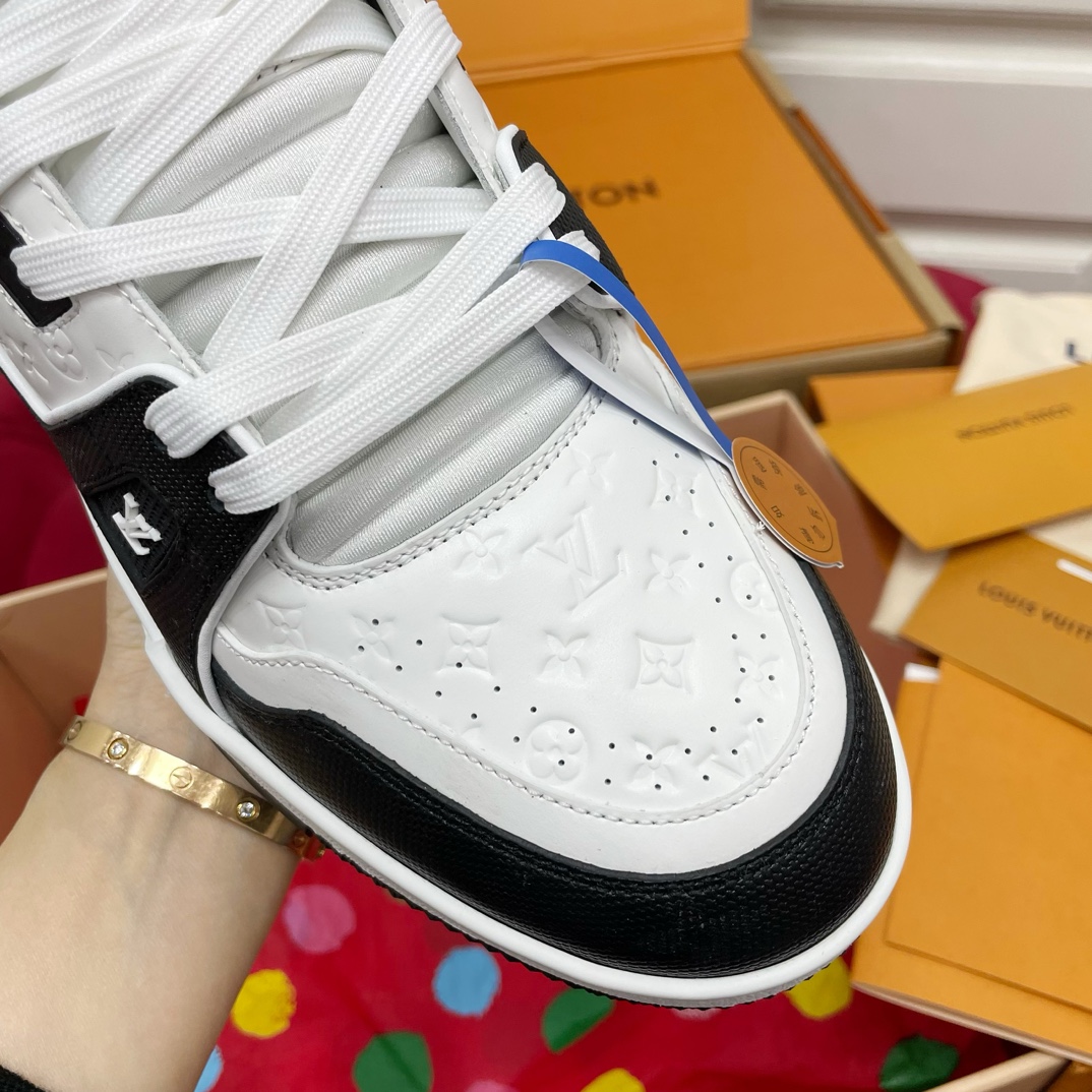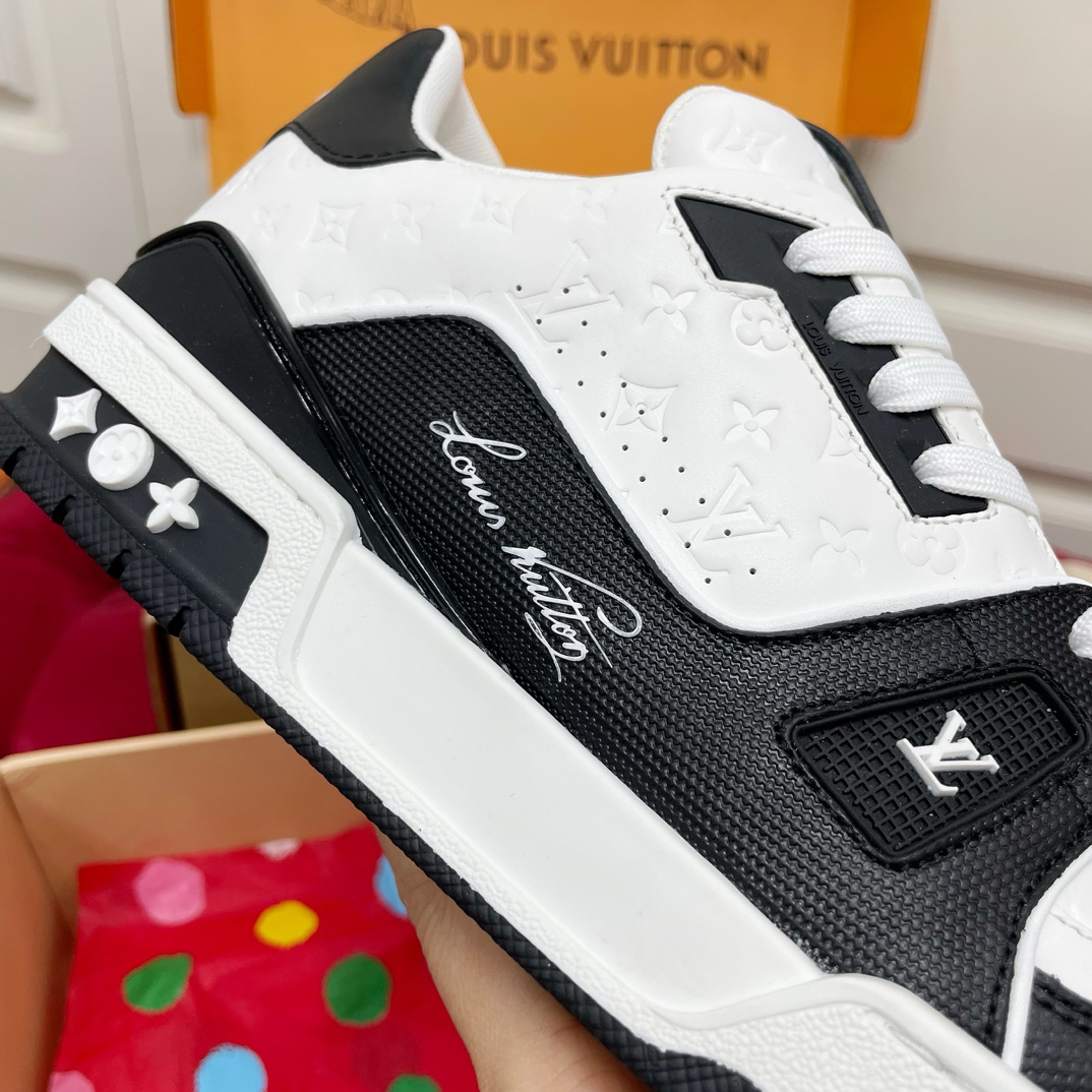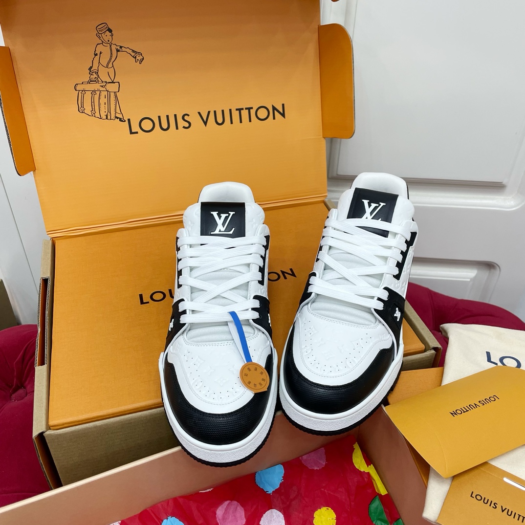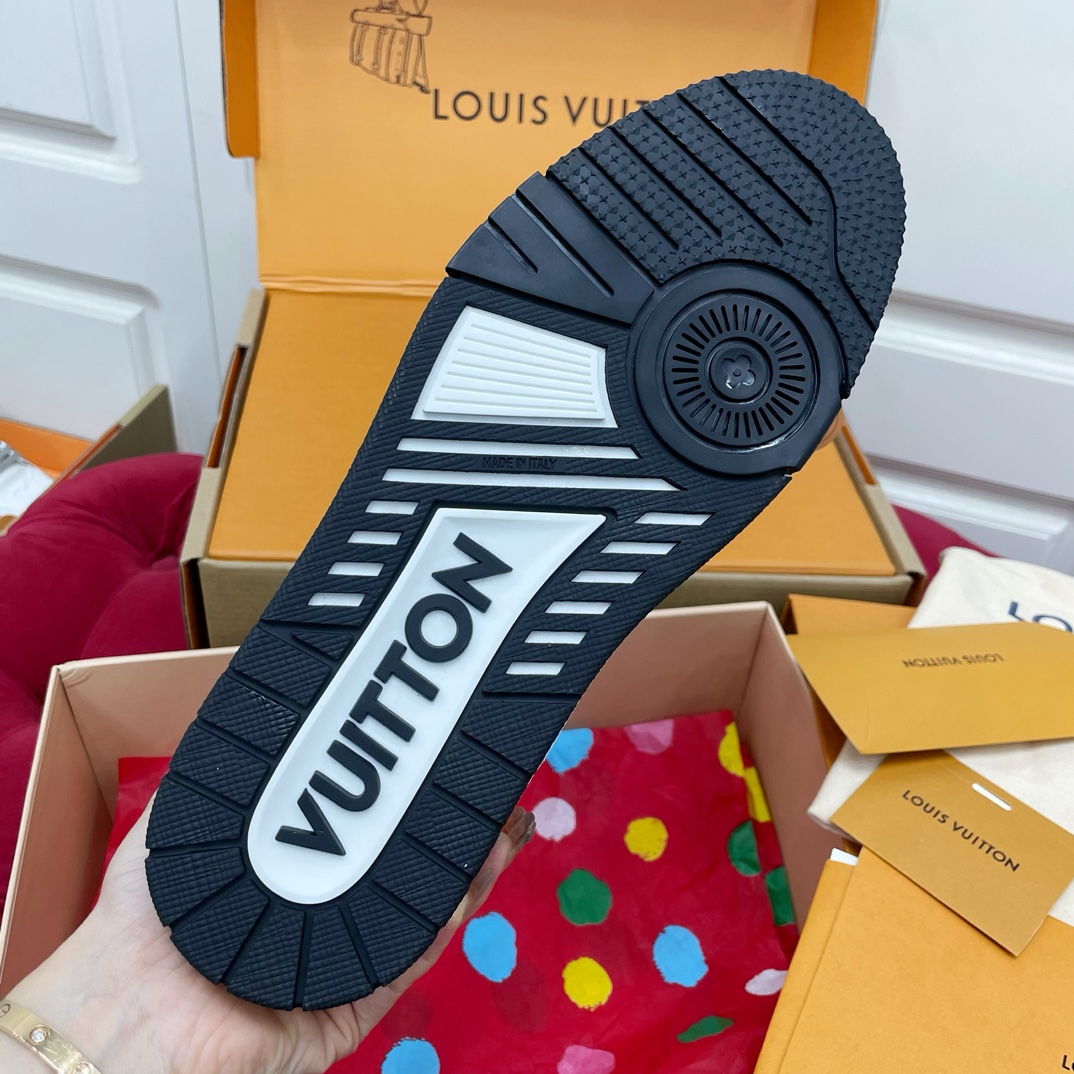 这款鞋子是AAAAA 1:1 质量 (非常棒). 使用了和原版一模一样的材料. 商标部分也保持了和路易威登/Louis Vuitton一样. 图片拍摄是实物鞋子拍摄, 您所收到的实物保证和我们图片一模一样.