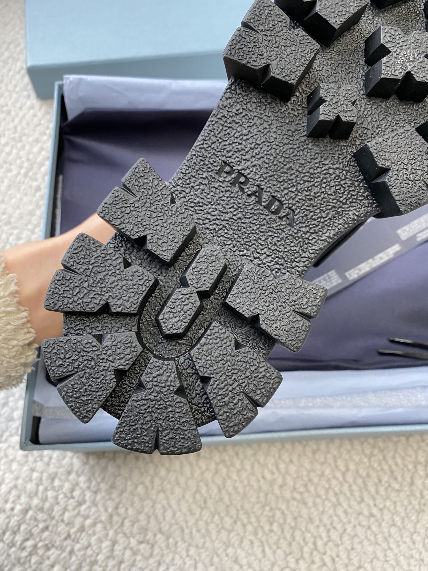 这款鞋子是AAAAA 1:1 质量 (非常棒). 使用了和原版一模一样的材料. 商标部分也保持了和普拉达/Prada一样. 图片拍摄是实物鞋子拍摄, 您所收到的实物保证和我们图片一模一样.
