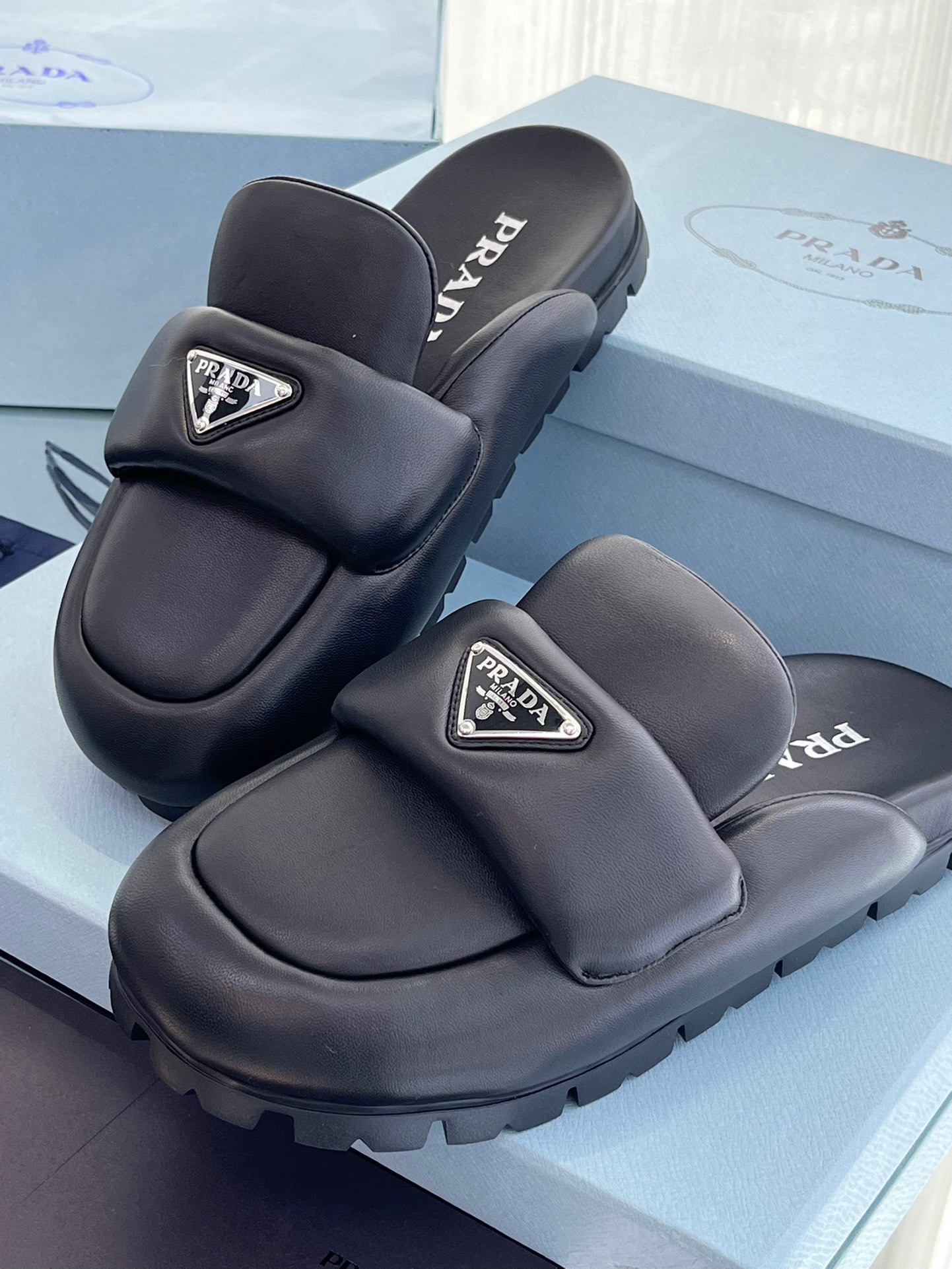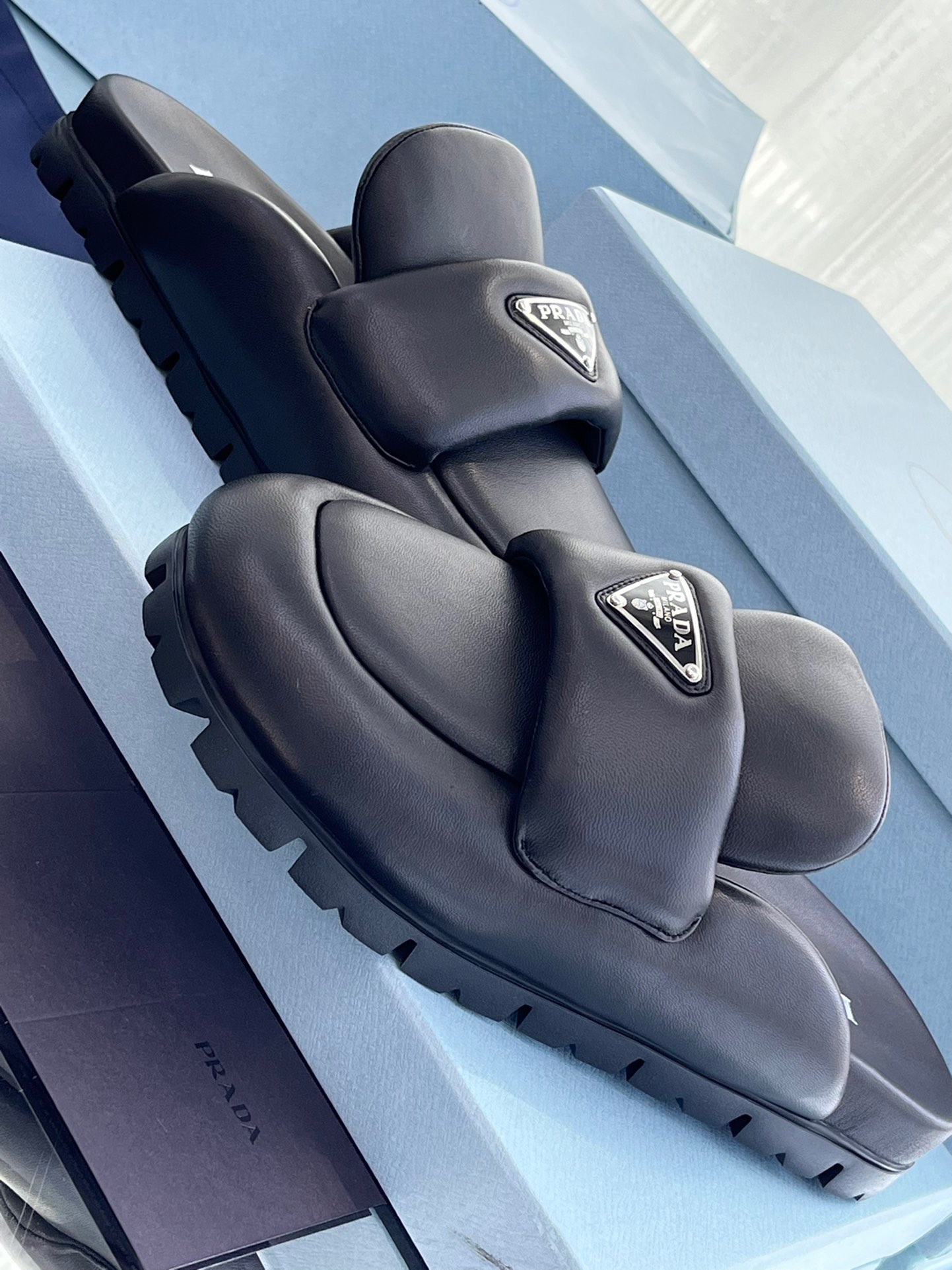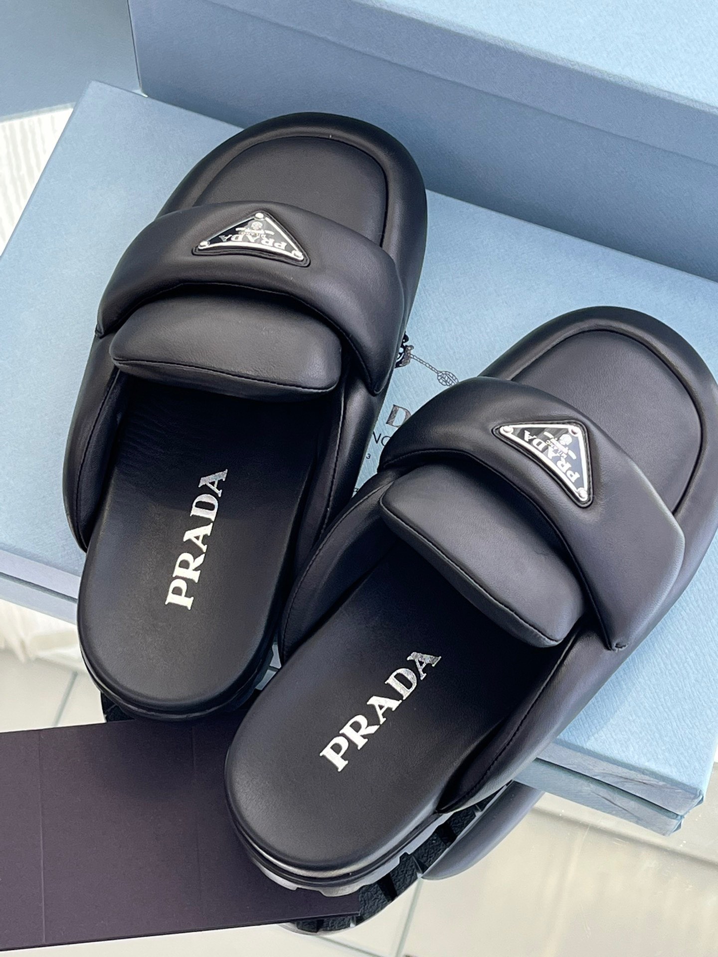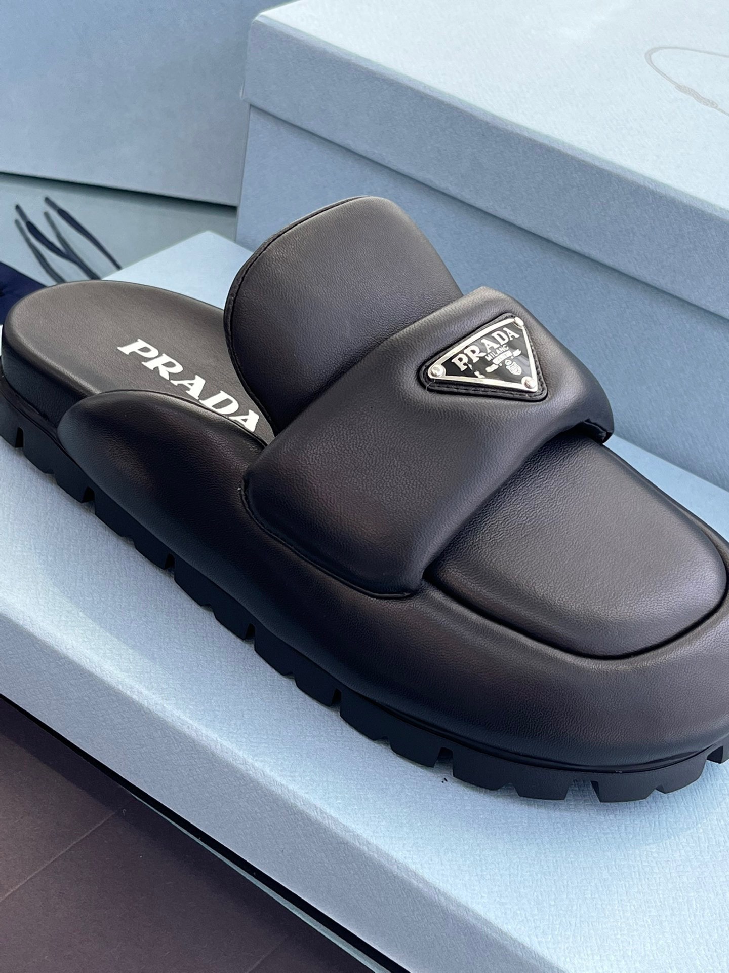 这款鞋子是AAAAA 1:1 质量 (非常棒). 使用了和原版一模一样的材料. 商标部分也保持了和普拉达/Prada一样. 图片拍摄是实物鞋子拍摄, 您所收到的实物保证和我们图片一模一样.