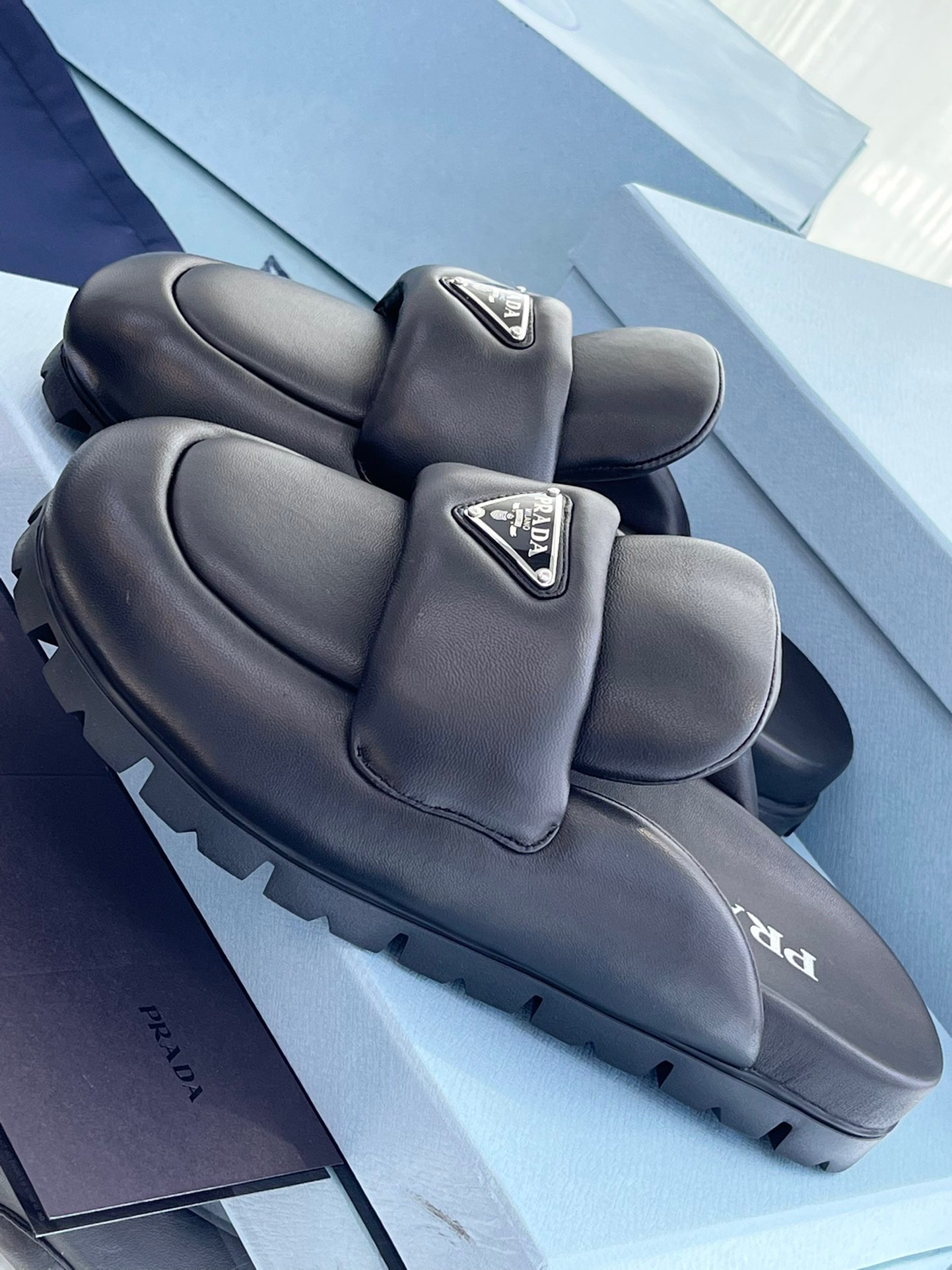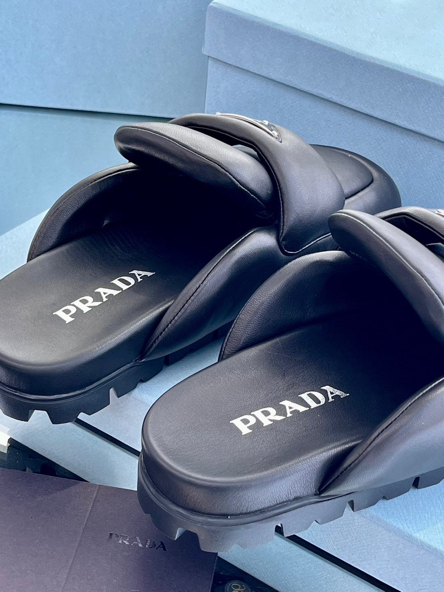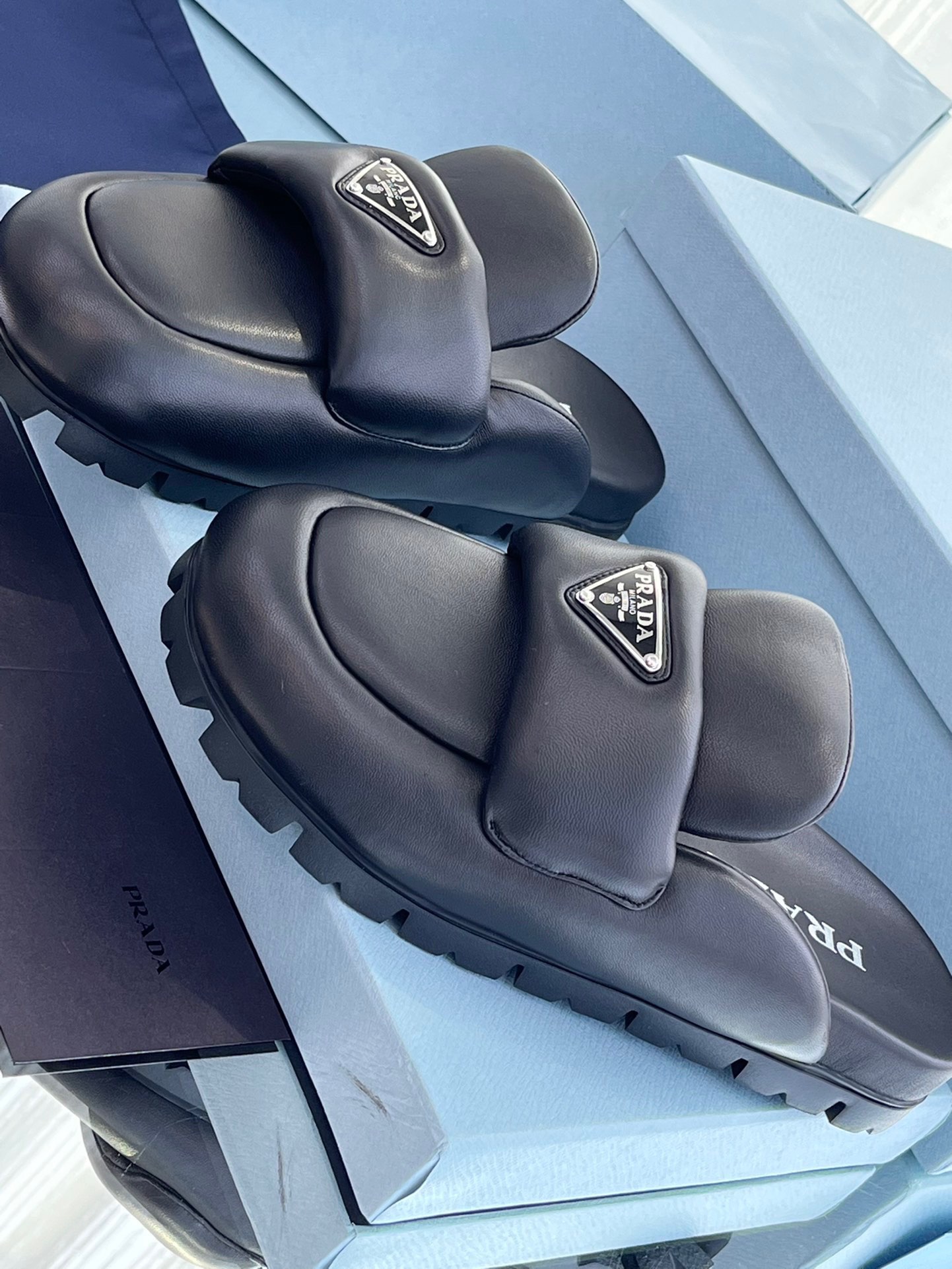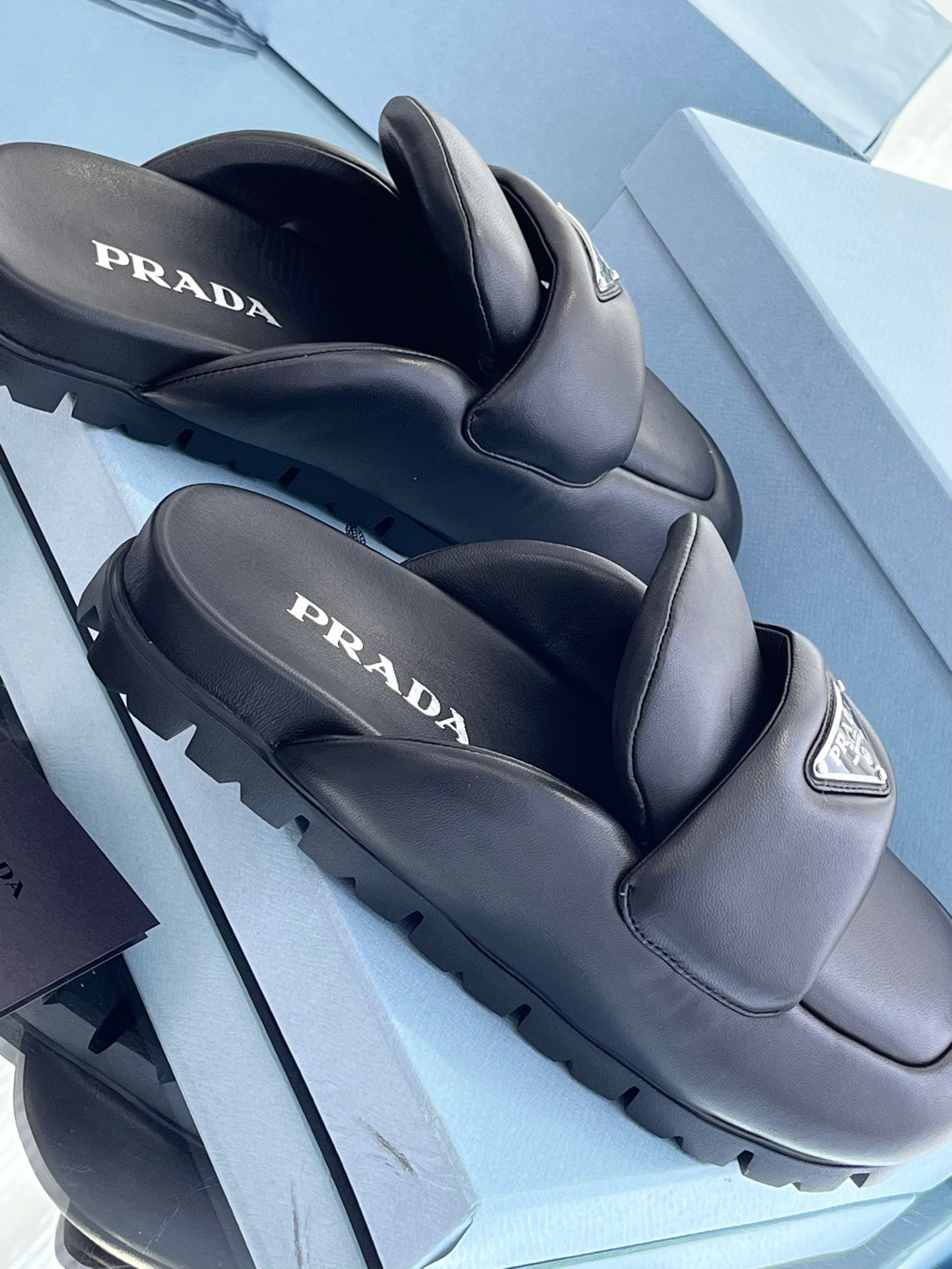 这款鞋子是AAAAA 1:1 质量 (非常棒). 使用了和原版一模一样的材料. 商标部分也保持了和普拉达/Prada一样. 图片拍摄是实物鞋子拍摄, 您所收到的实物保证和我们图片一模一样.