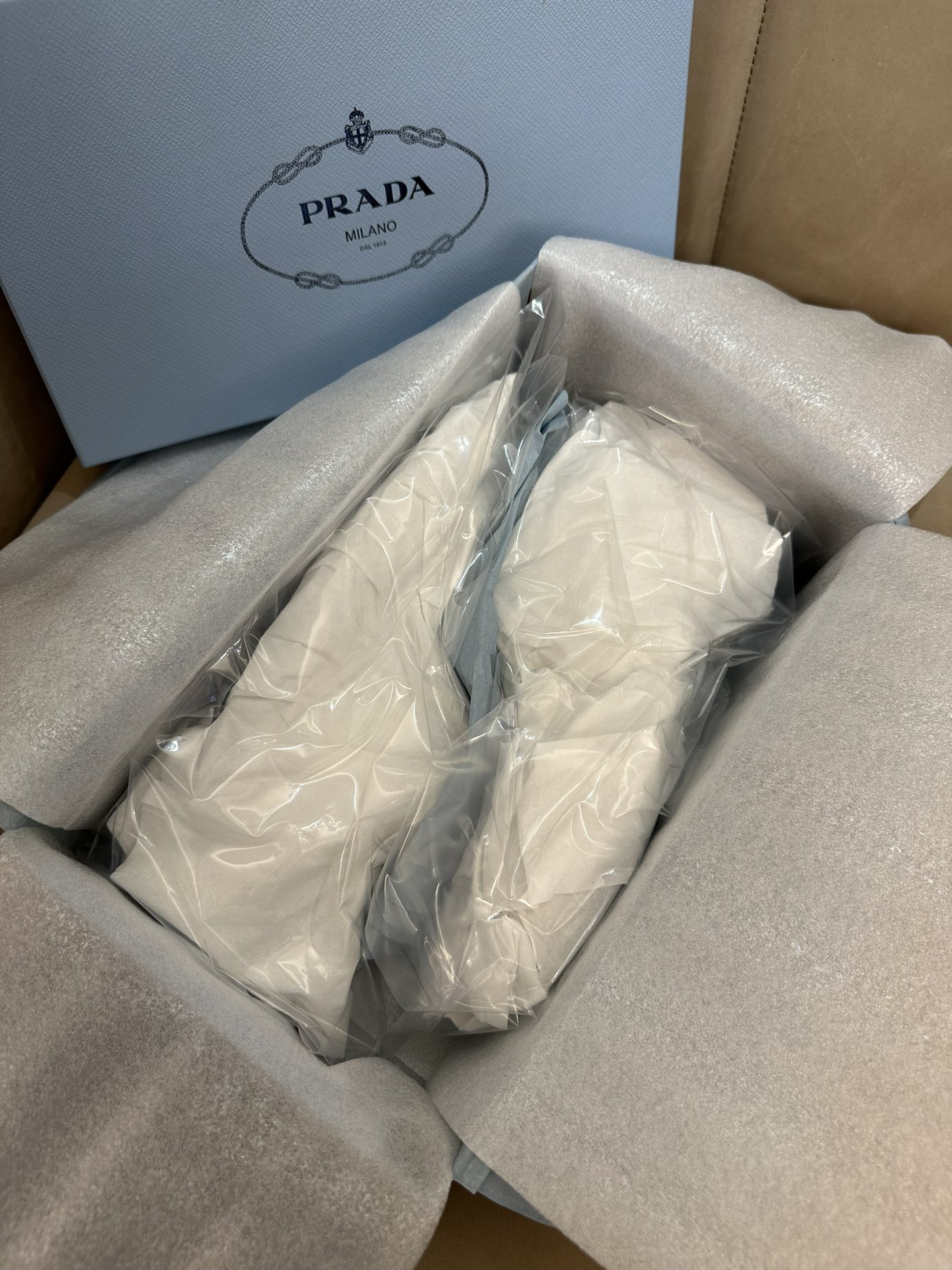 这款鞋子是AAAAA 1:1 质量 (非常棒). 使用了和原版一模一样的材料. 商标部分也保持了和普拉达/Prada一样. 图片拍摄是实物鞋子拍摄, 您所收到的实物保证和我们图片一模一样.