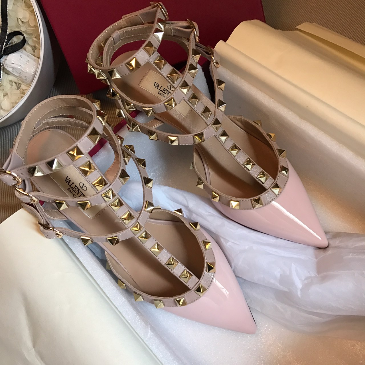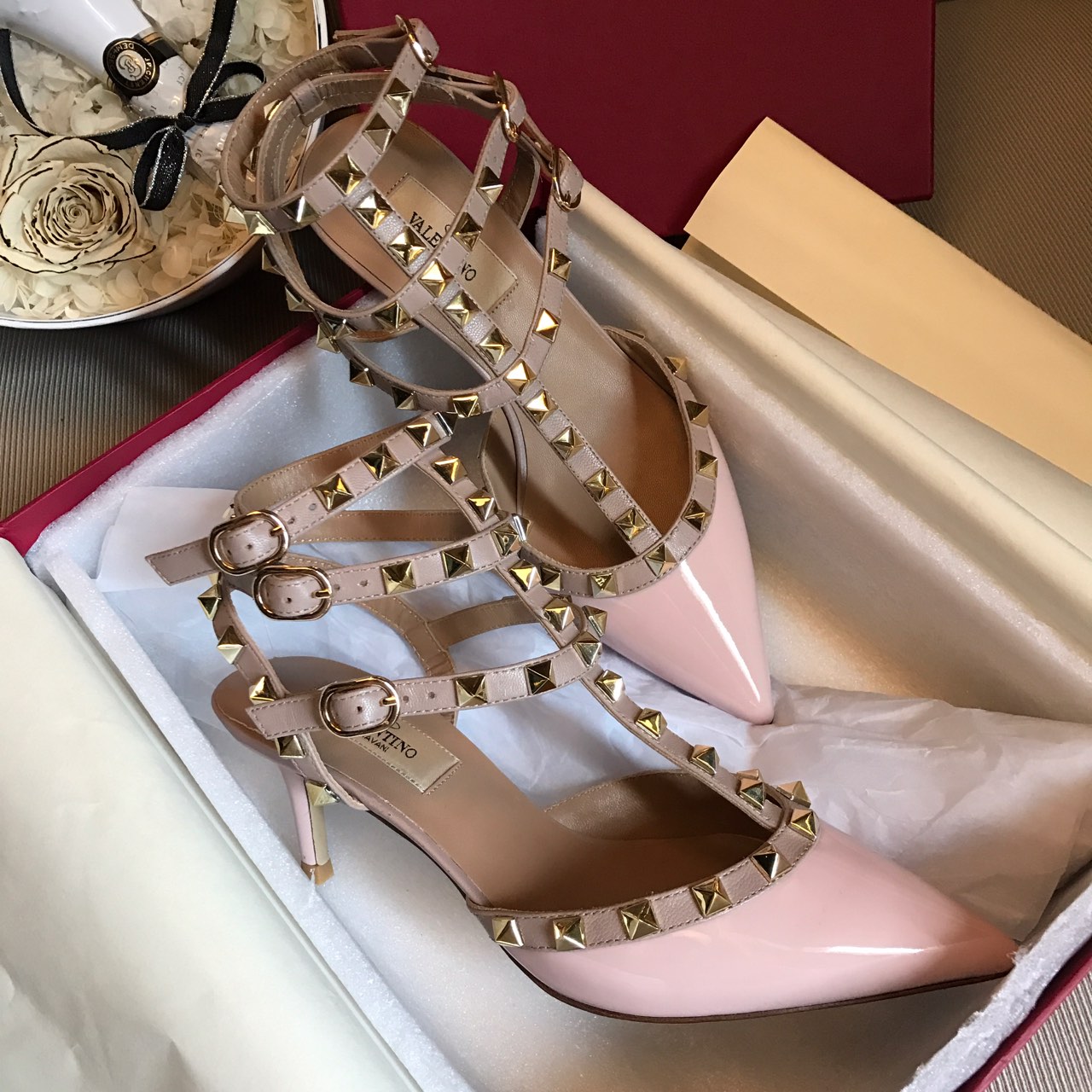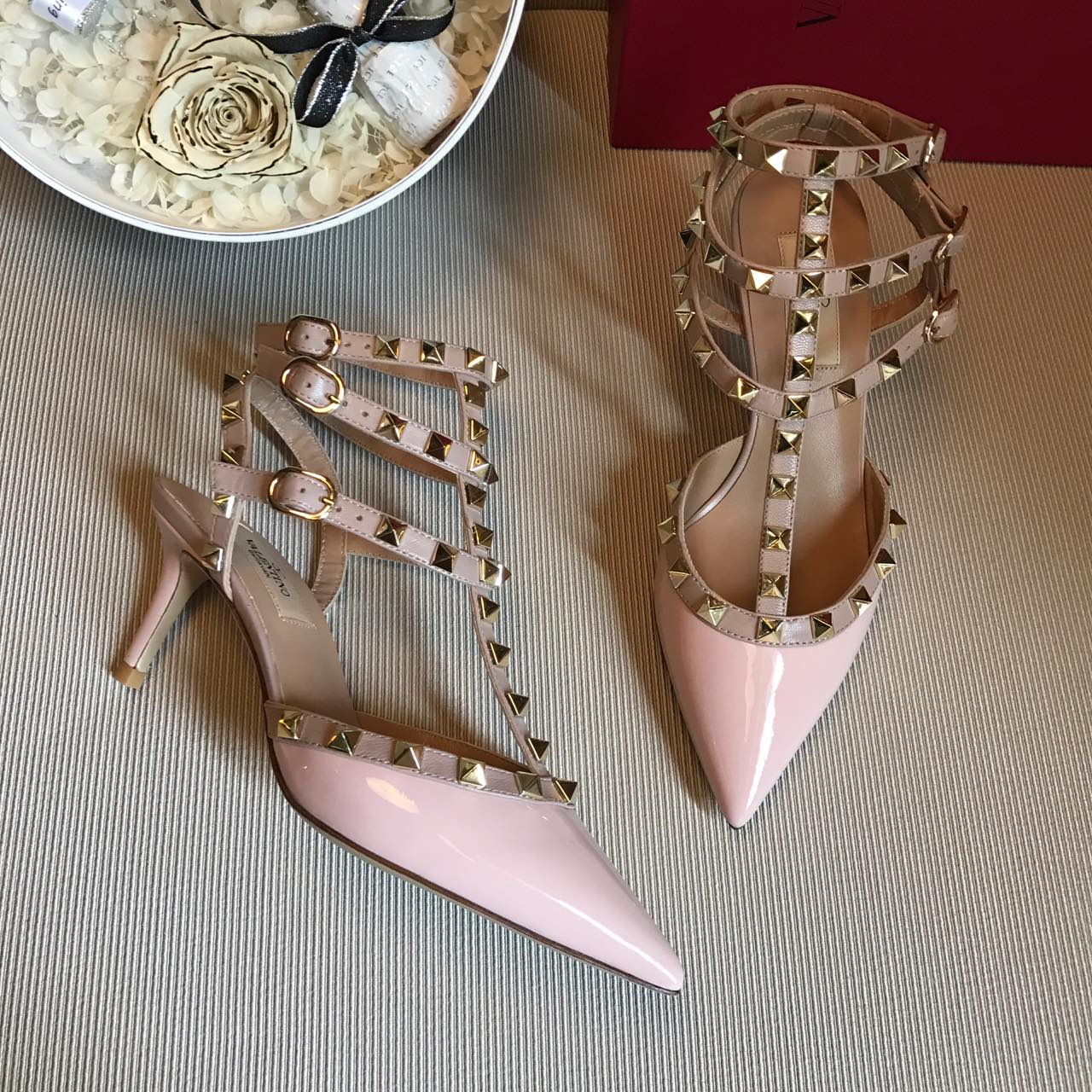 这款鞋子是AAAAA 1:1 质量 (非常棒). 使用了和原版一模一样的材料. 商标部分也保持了和华伦天奴/Valentino一样. 图片拍摄是实物鞋子拍摄, 您所收到的实物保证和我们图片一模一样.