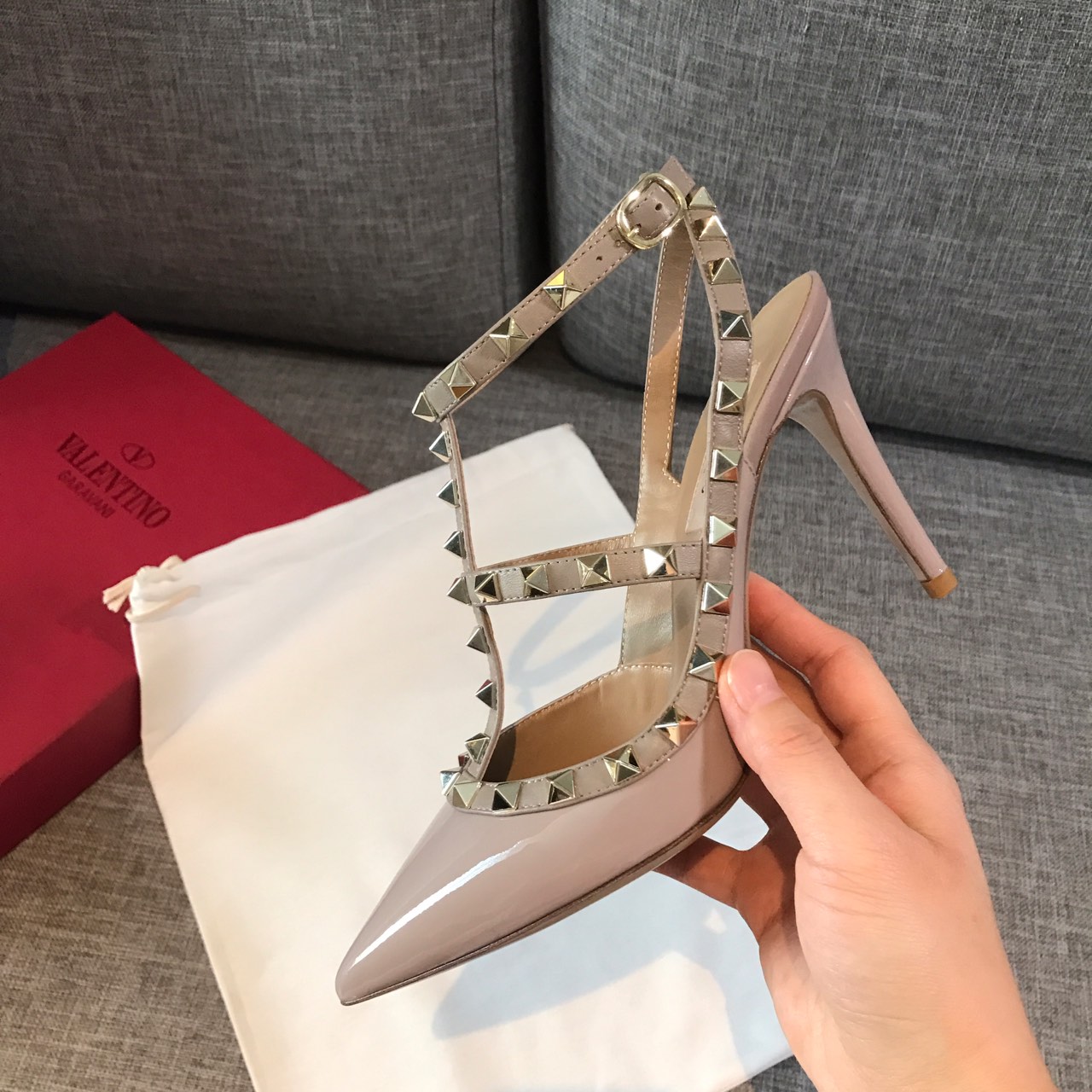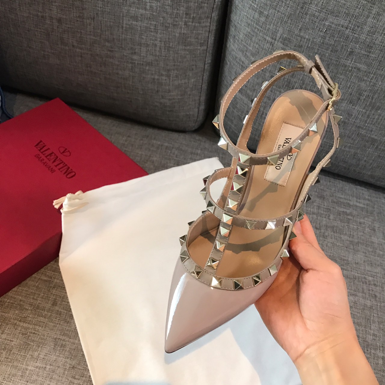 这款鞋子是AAAAA 1:1 质量 (非常棒). 使用了和原版一模一样的材料. 商标部分也保持了和华伦天奴/Valentino一样. 图片拍摄是实物鞋子拍摄, 您所收到的实物保证和我们图片一模一样.