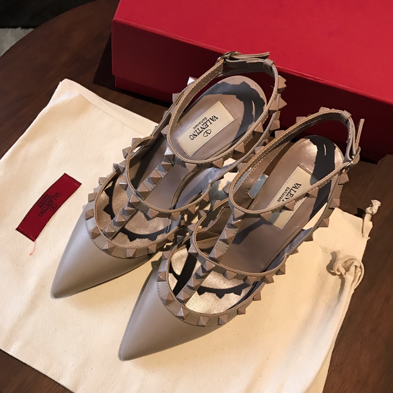 这款鞋子是AAAAA 1:1 质量 (非常棒). 使用了和原版一模一样的材料. 商标部分也保持了和华伦天奴/Valentino一样. 图片拍摄是实物鞋子拍摄, 您所收到的实物保证和我们图片一模一样.