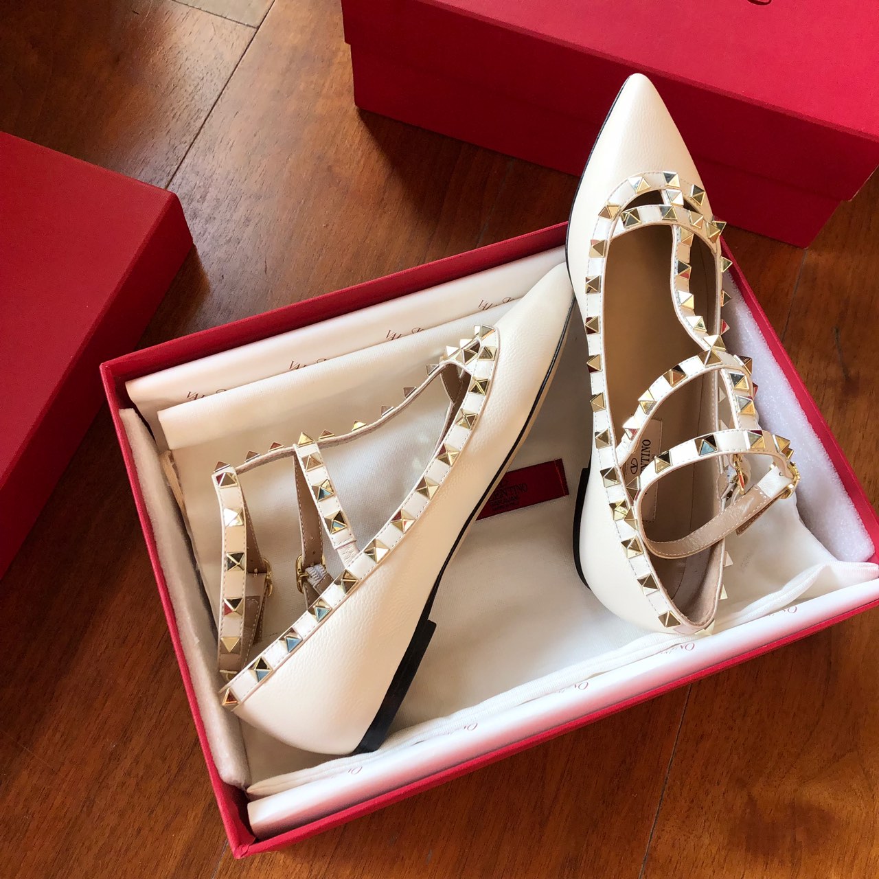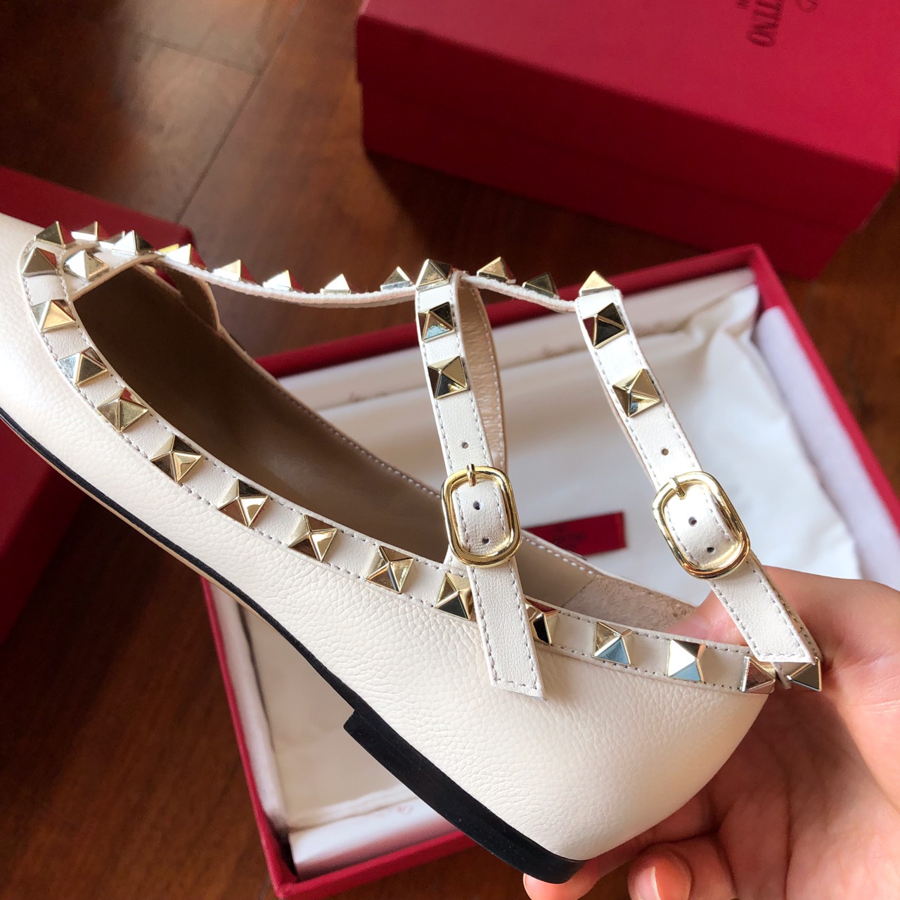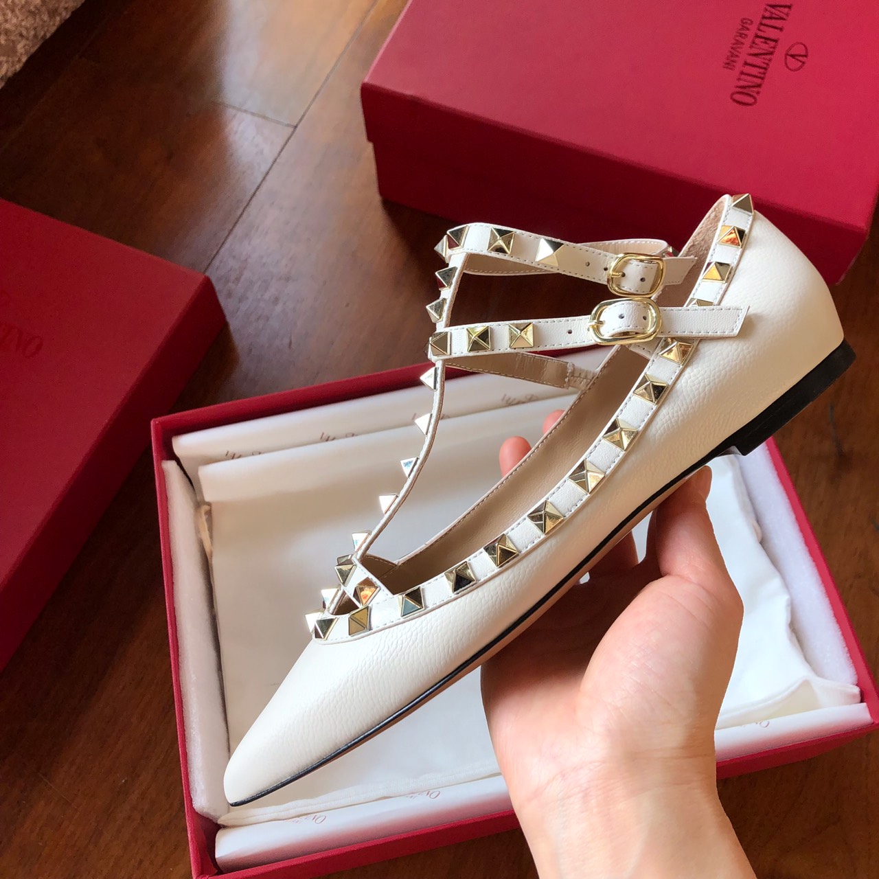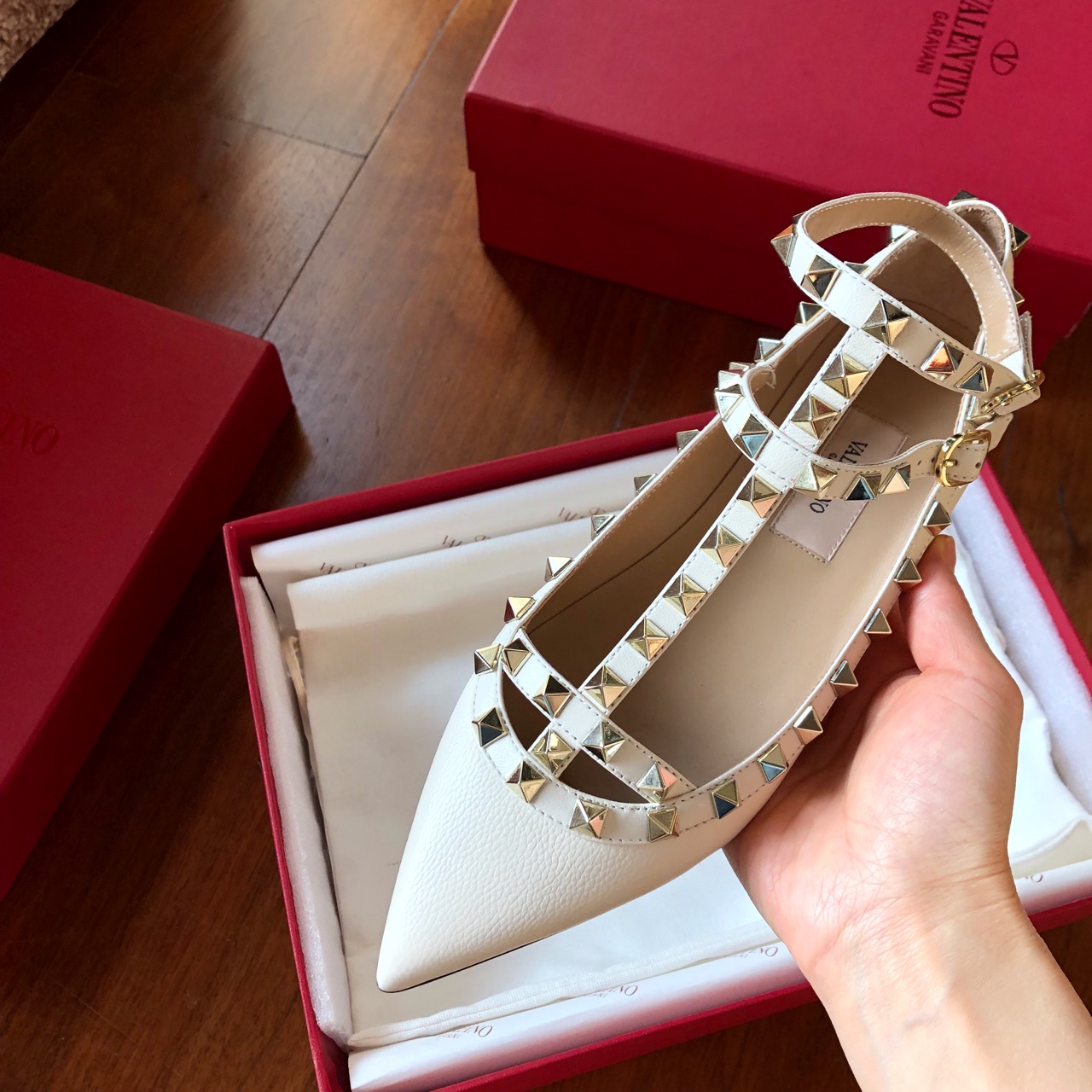 这款鞋子是AAAAA 1:1 质量 (非常棒). 使用了和原版一模一样的材料. 商标部分也保持了和华伦天奴/Valentino一样. 图片拍摄是实物鞋子拍摄, 您所收到的实物保证和我们图片一模一样.