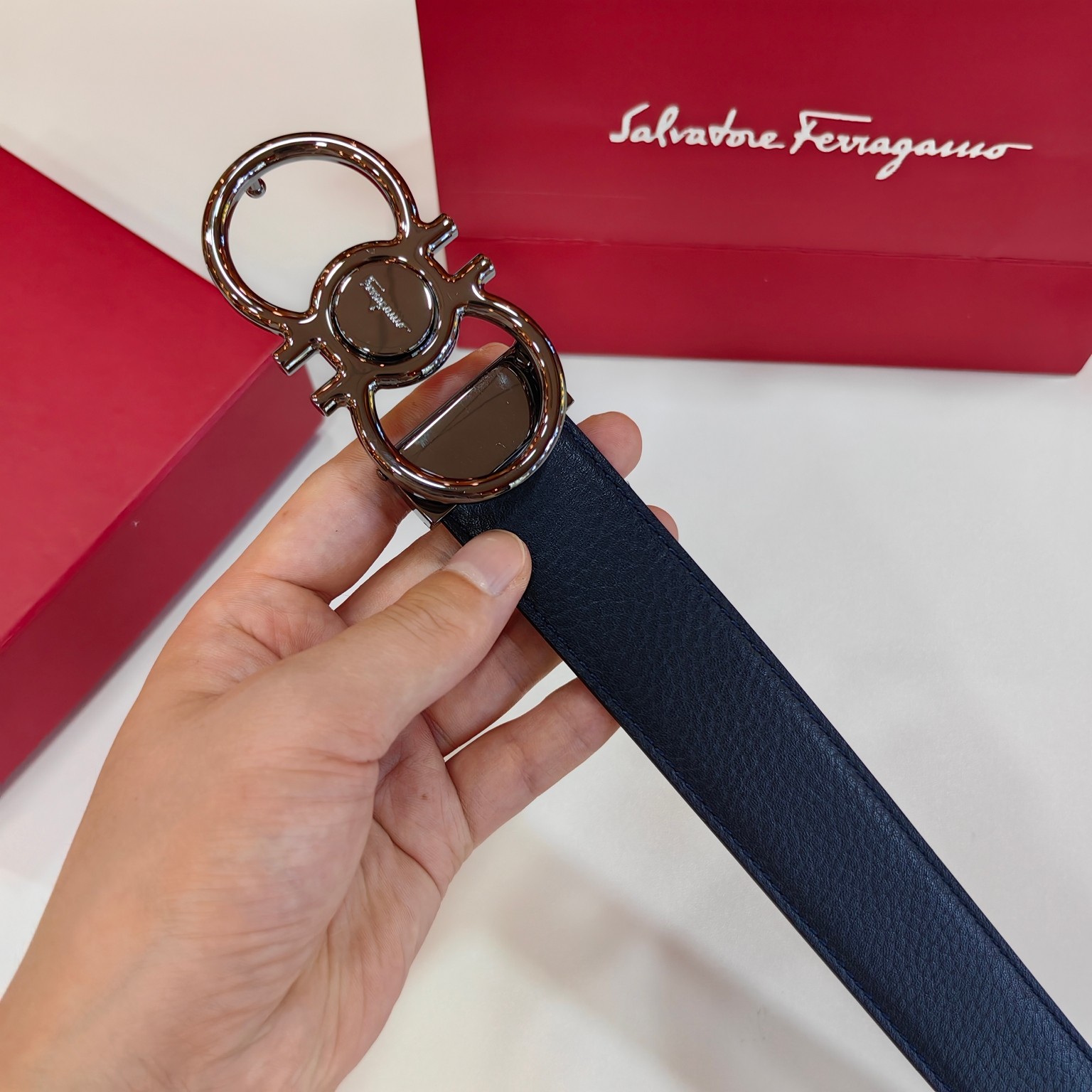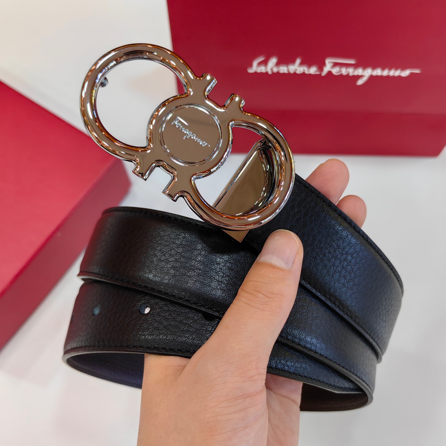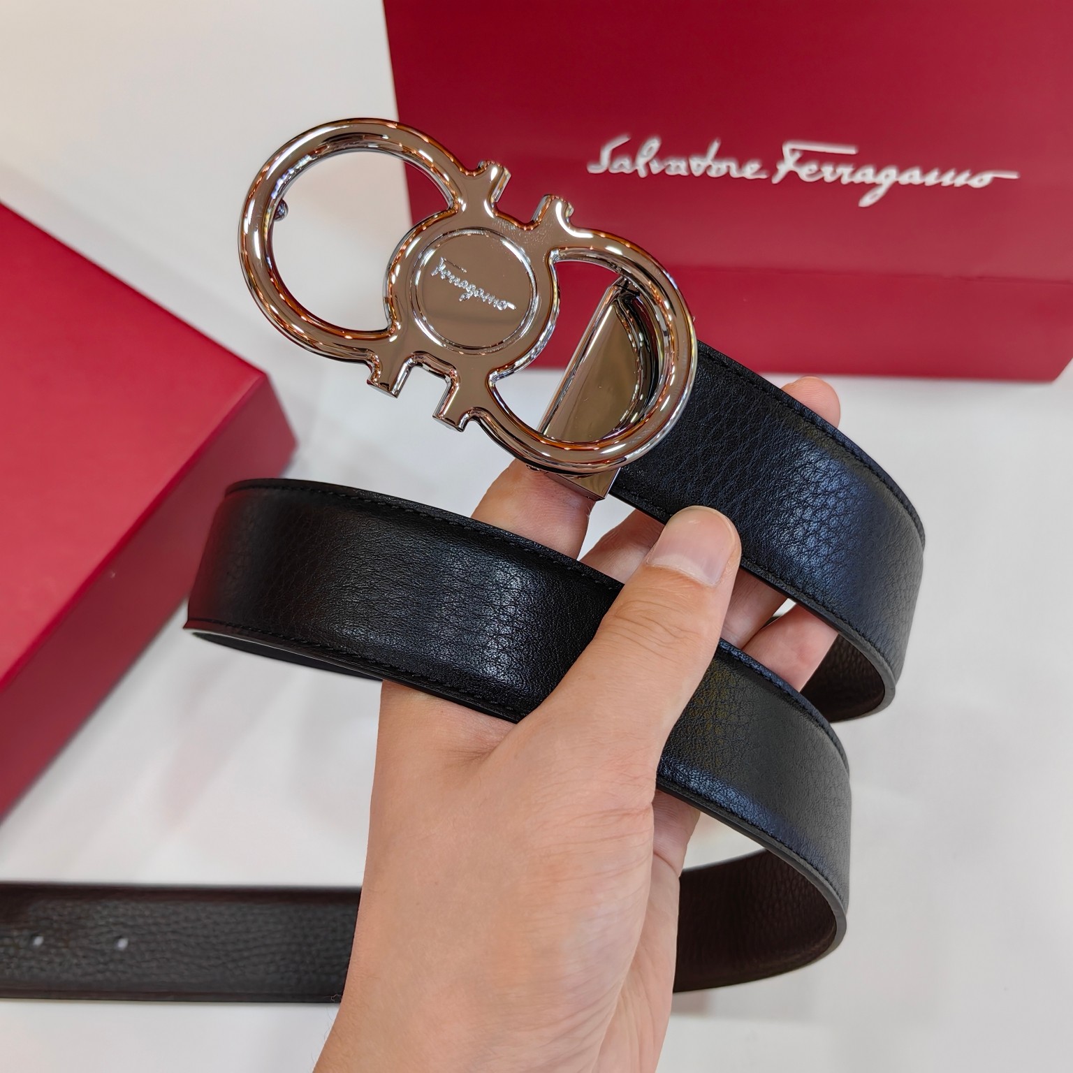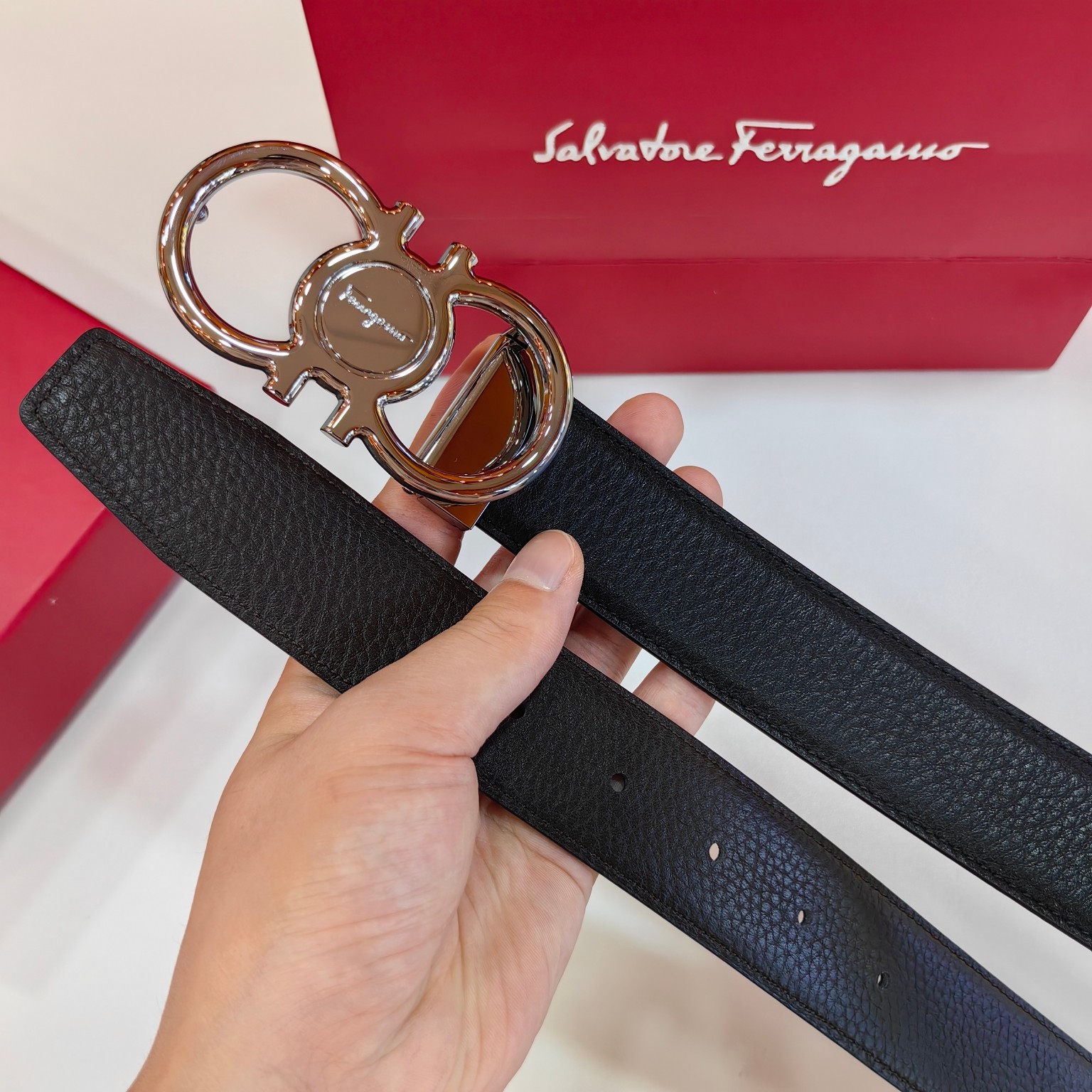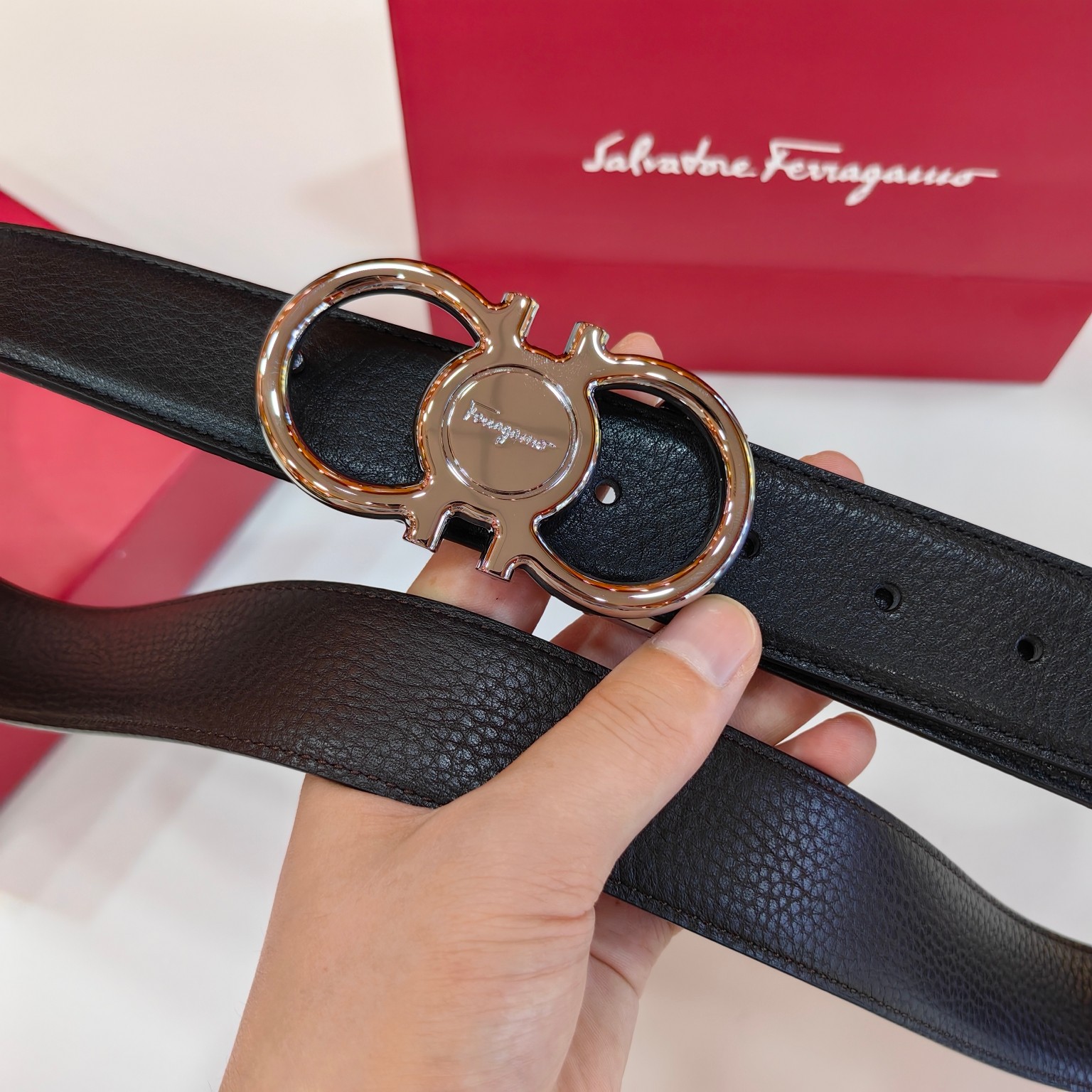 这款皮带是AAAAA 1:1 质量 (非常棒). 使用了和原版一模一样的材料. 商标部分也保持了和菲拉格慕/Salvatore Ferragamo一样. 图片拍摄是实物皮带拍摄, 您所收到的实物保证和我们图片一模一样.