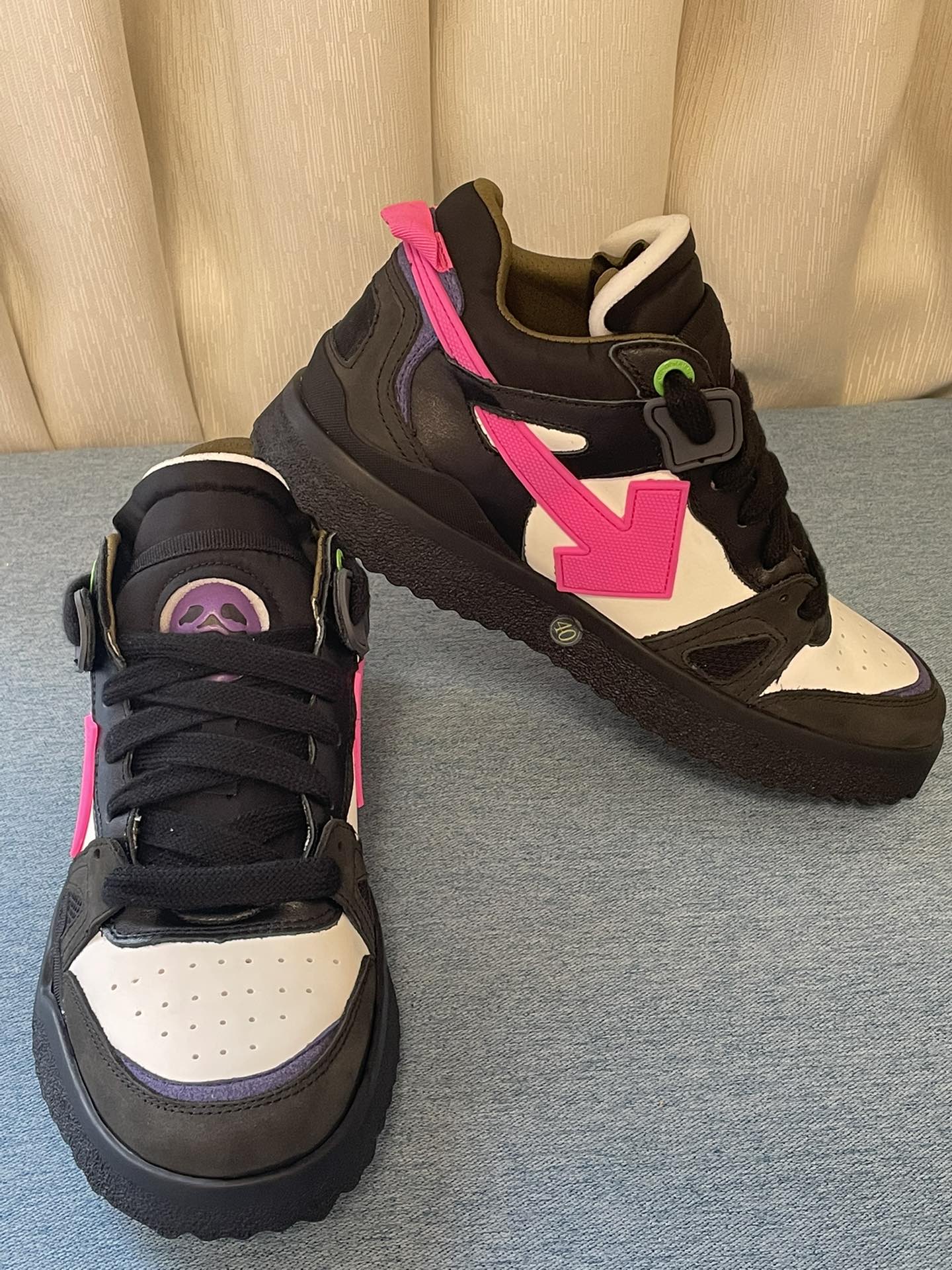 这款鞋子是AAAAA 1:1 质量 (非常棒). 使用了和原版一模一样的材料. 商标部分也保持了和OFF WHITE一样. 图片拍摄是实物鞋子拍摄, 您所收到的实物保证和我们图片一模一样.