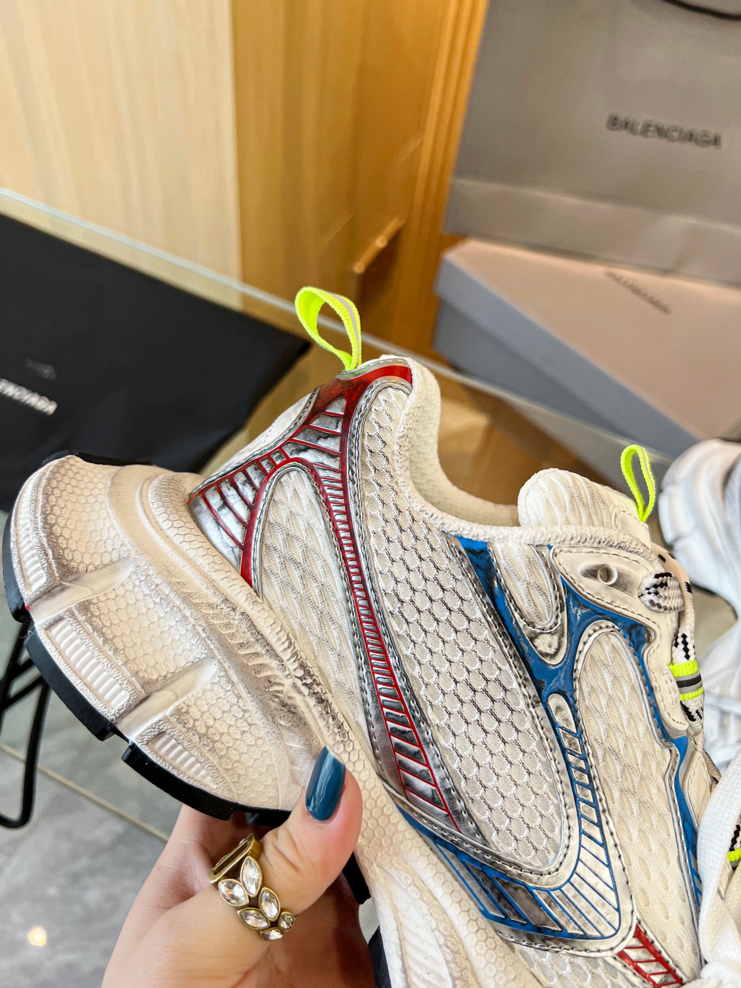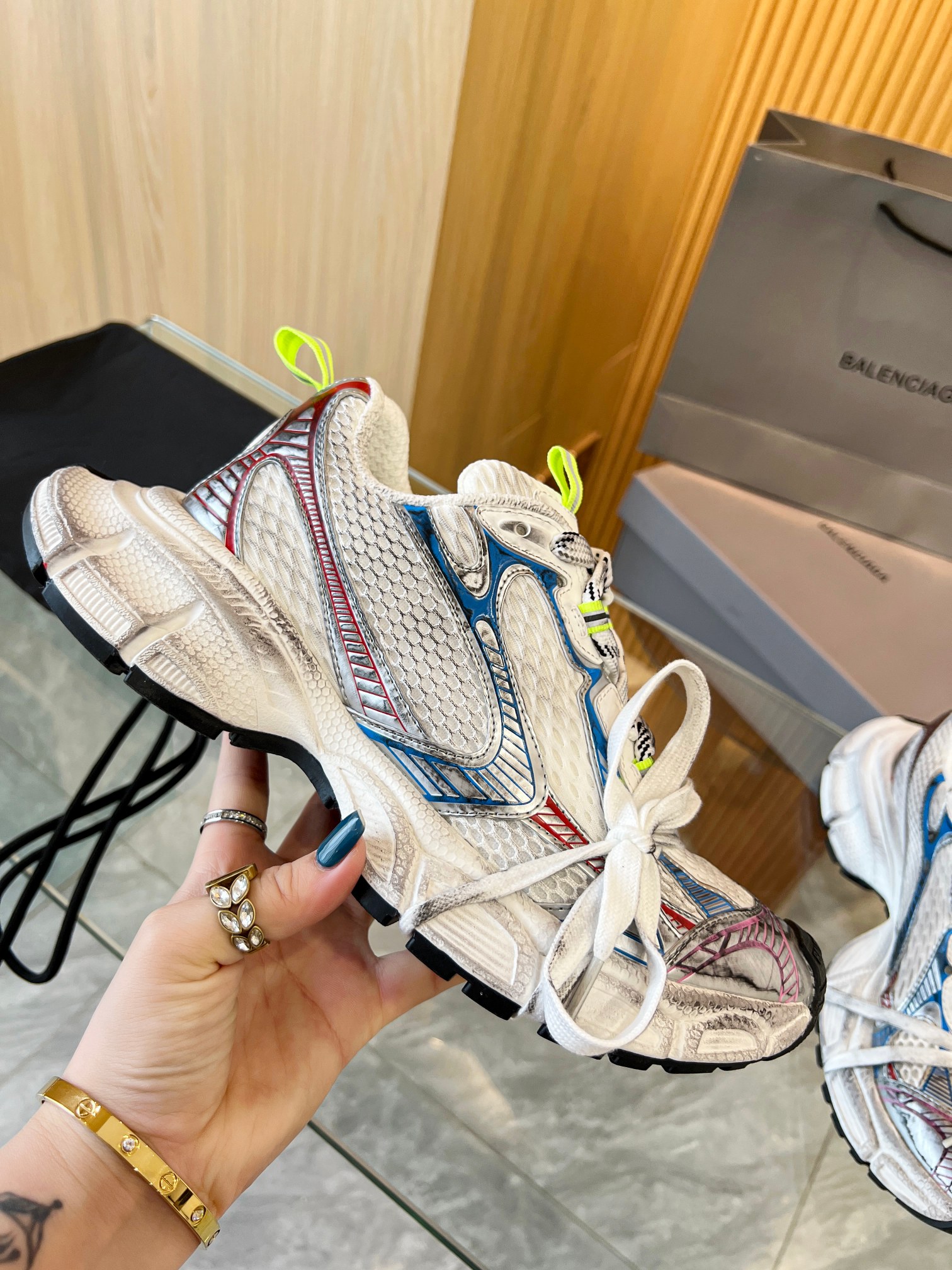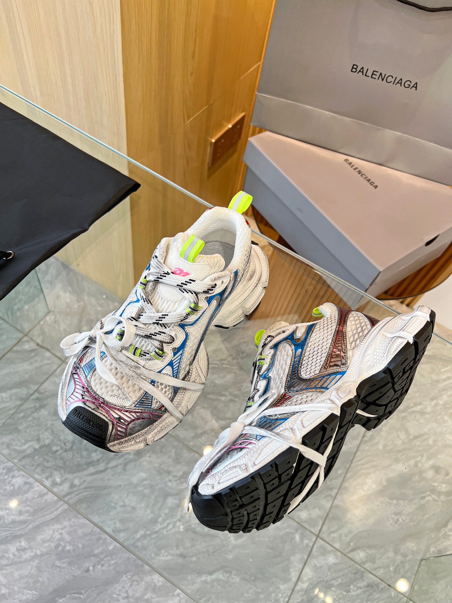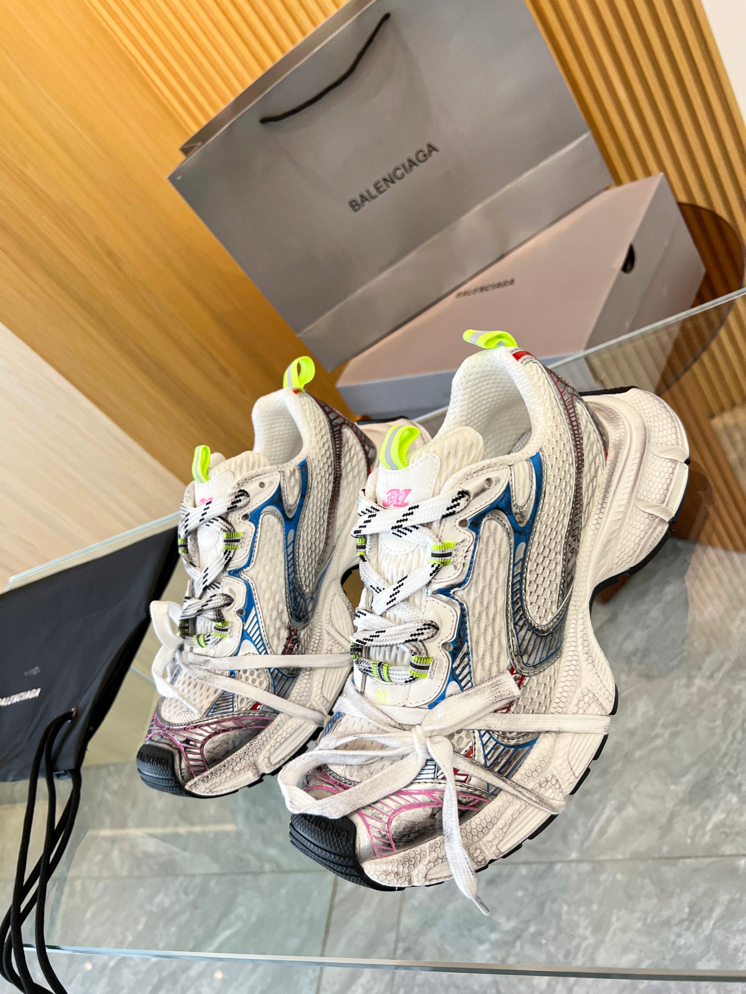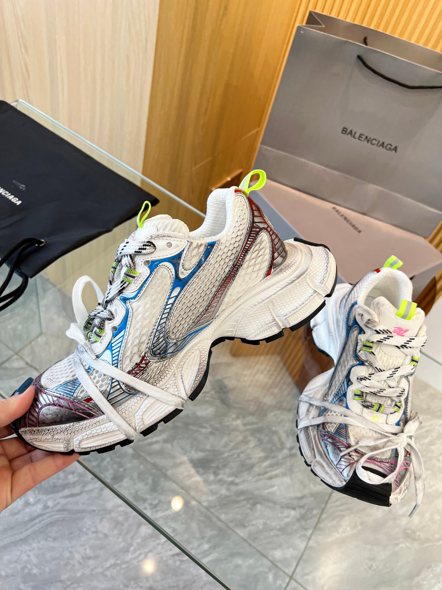 这款鞋子是AAAAA 1:1 质量 (非常棒). 使用了和原版一模一样的材料. 商标部分也保持了和巴黎世家/Balenciaga一样. 图片拍摄是实物鞋子拍摄, 您所收到的实物保证和我们图片一模一样.