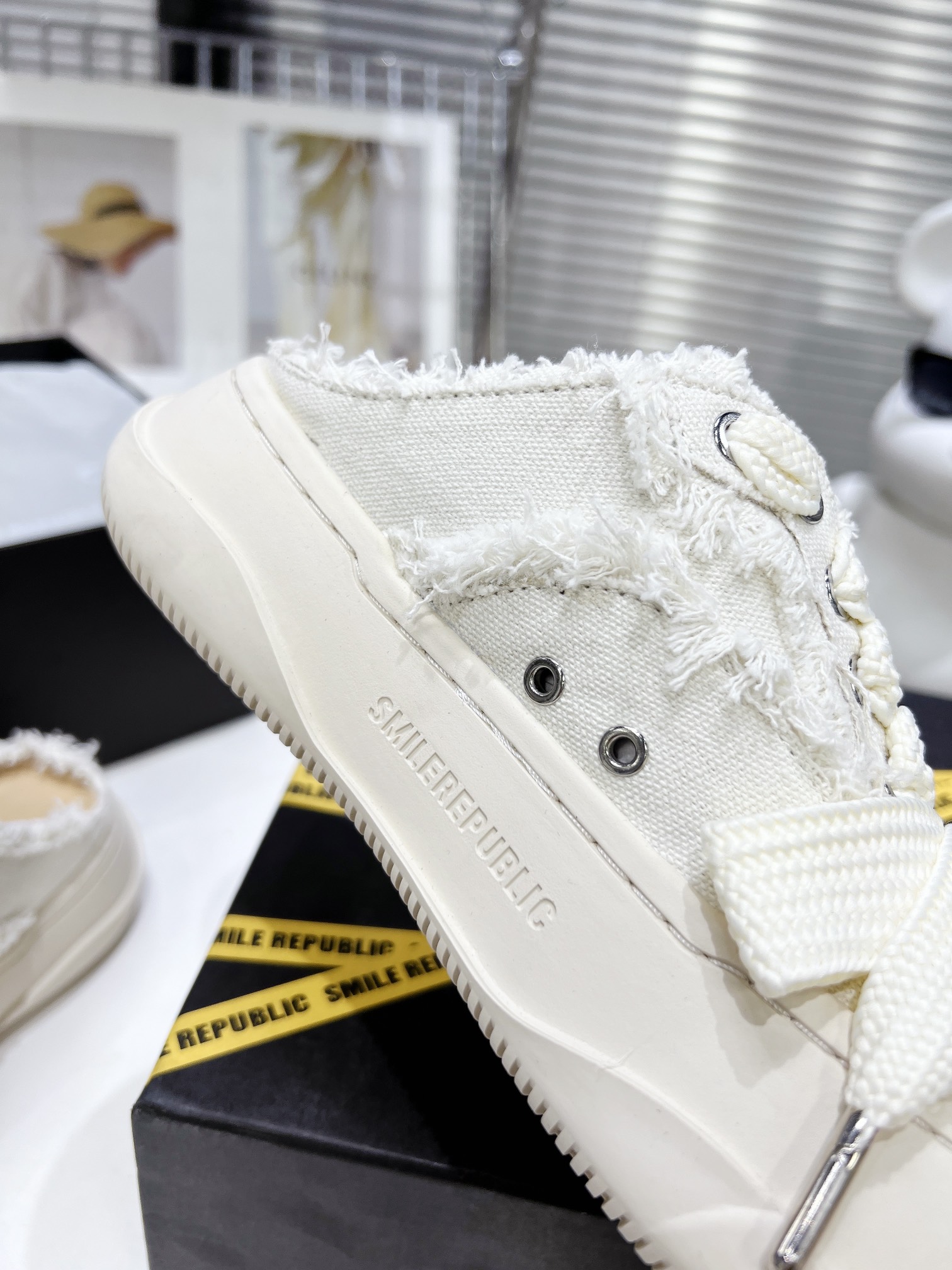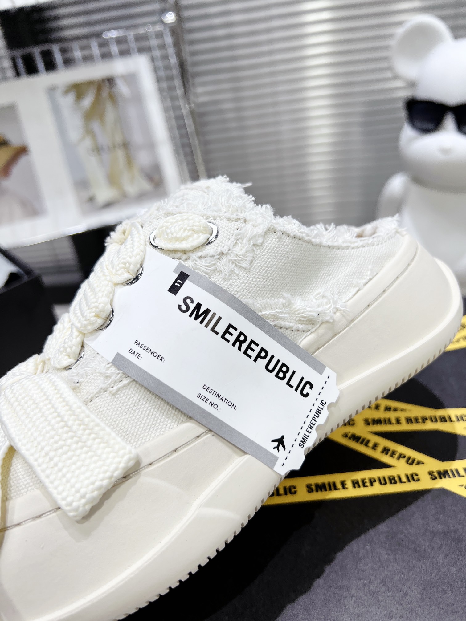 这款鞋子是AAAAA 1:1 质量 (非常棒). 使用了和原版一模一样的材料. 商标部分也保持了和Smile Republic一样. 图片拍摄是实物鞋子拍摄, 您所收到的实物保证和我们图片一模一样.