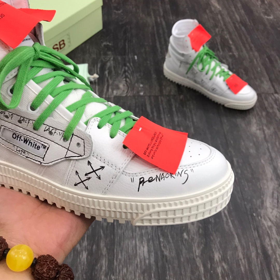这款鞋子是AAAAA 1:1 质量 (非常棒). 使用了和原版一模一样的材料. 商标部分也保持了和OFF WHITE一样. 图片拍摄是实物鞋子拍摄, 您所收到的实物保证和我们图片一模一样.