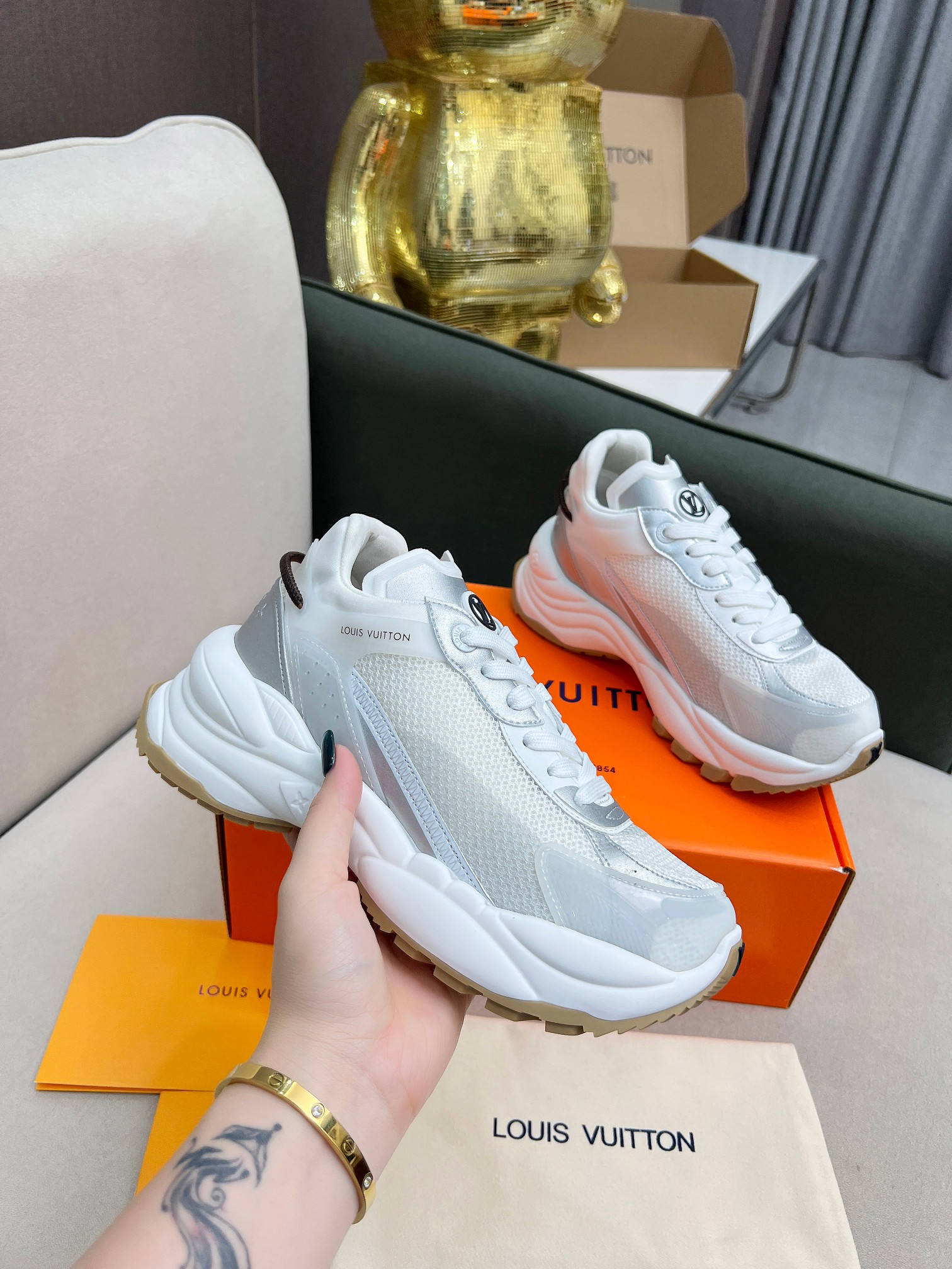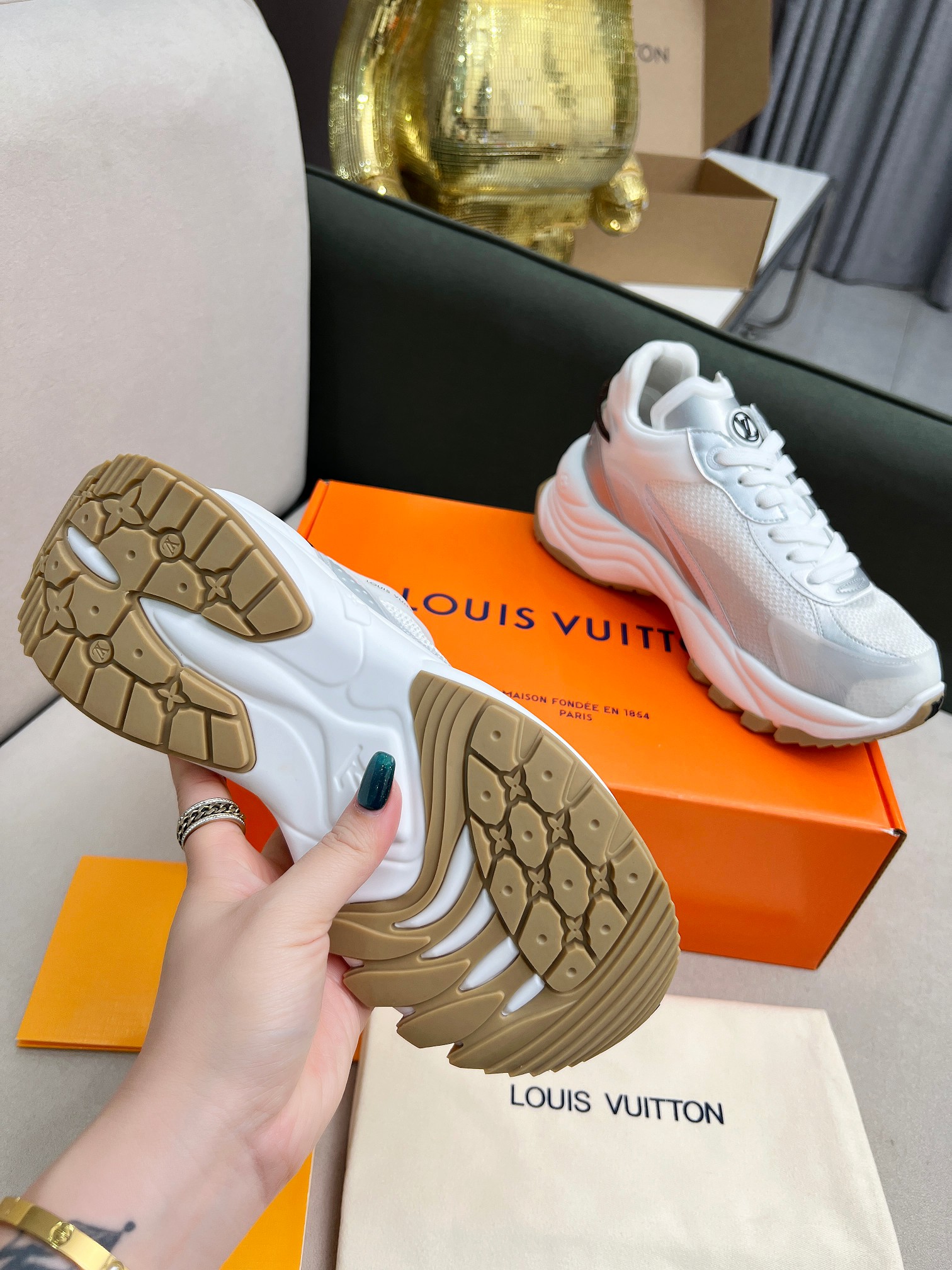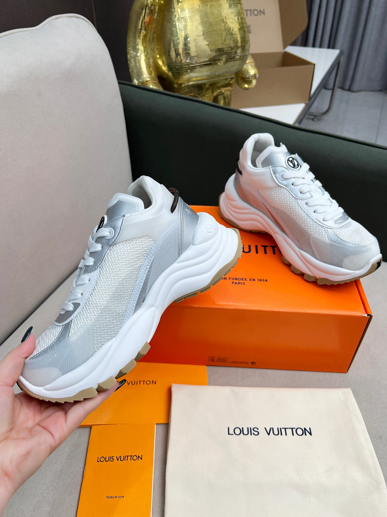 这款鞋子是AAAAA 1:1 质量 (非常棒). 使用了和原版一模一样的材料. 商标部分也保持了和路易威登/Louis Vuitton一样. 图片拍摄是实物鞋子拍摄, 您所收到的实物保证和我们图片一模一样.