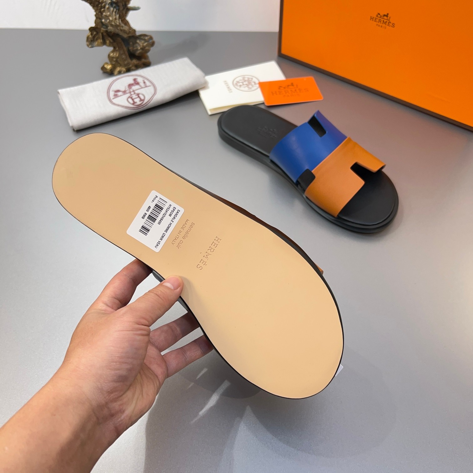 这款鞋子是AAAAA 1:1 质量 (非常棒). 使用了和原版一模一样的材料. 商标部分也保持了和爱马仕/Hermes一样. 图片拍摄是实物鞋子拍摄, 您所收到的实物保证和我们图片一模一样.