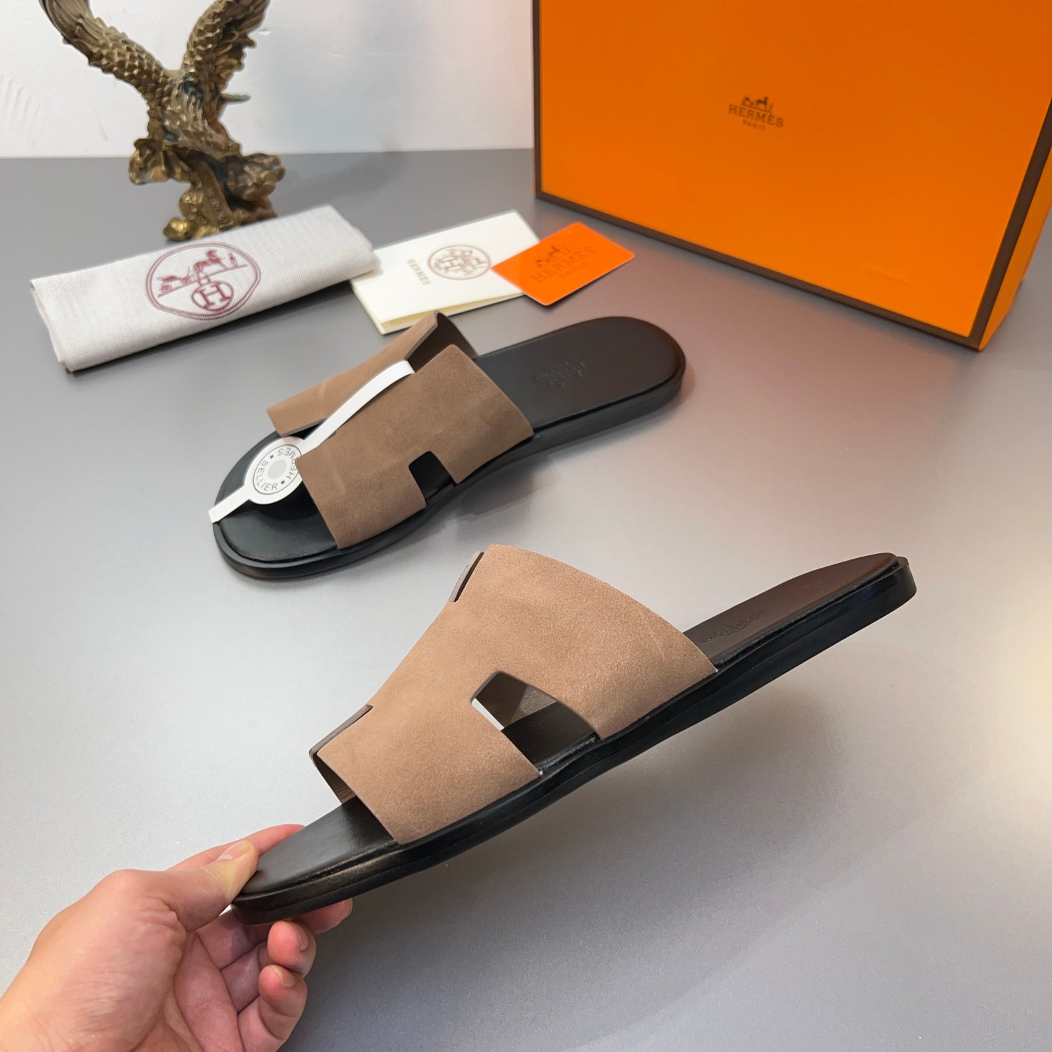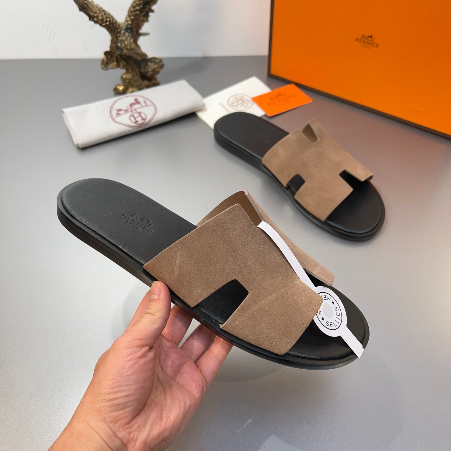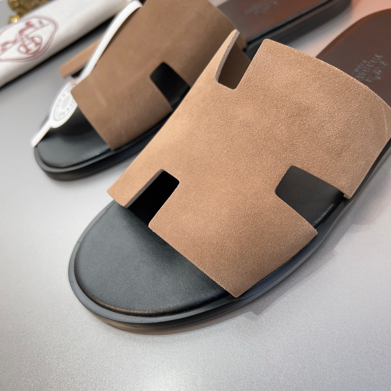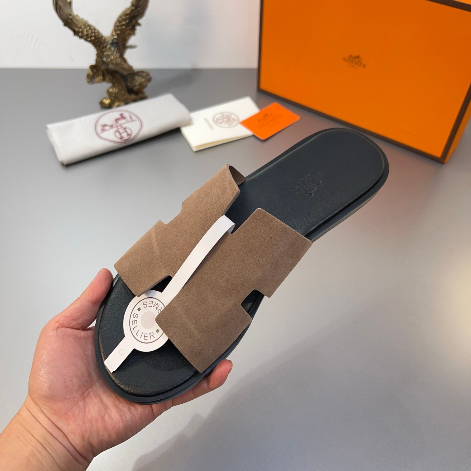这款鞋子是AAAAA 1:1 质量 (非常棒). 使用了和原版一模一样的材料. 商标部分也保持了和爱马仕/Hermes一样. 图片拍摄是实物鞋子拍摄, 您所收到的实物保证和我们图片一模一样.