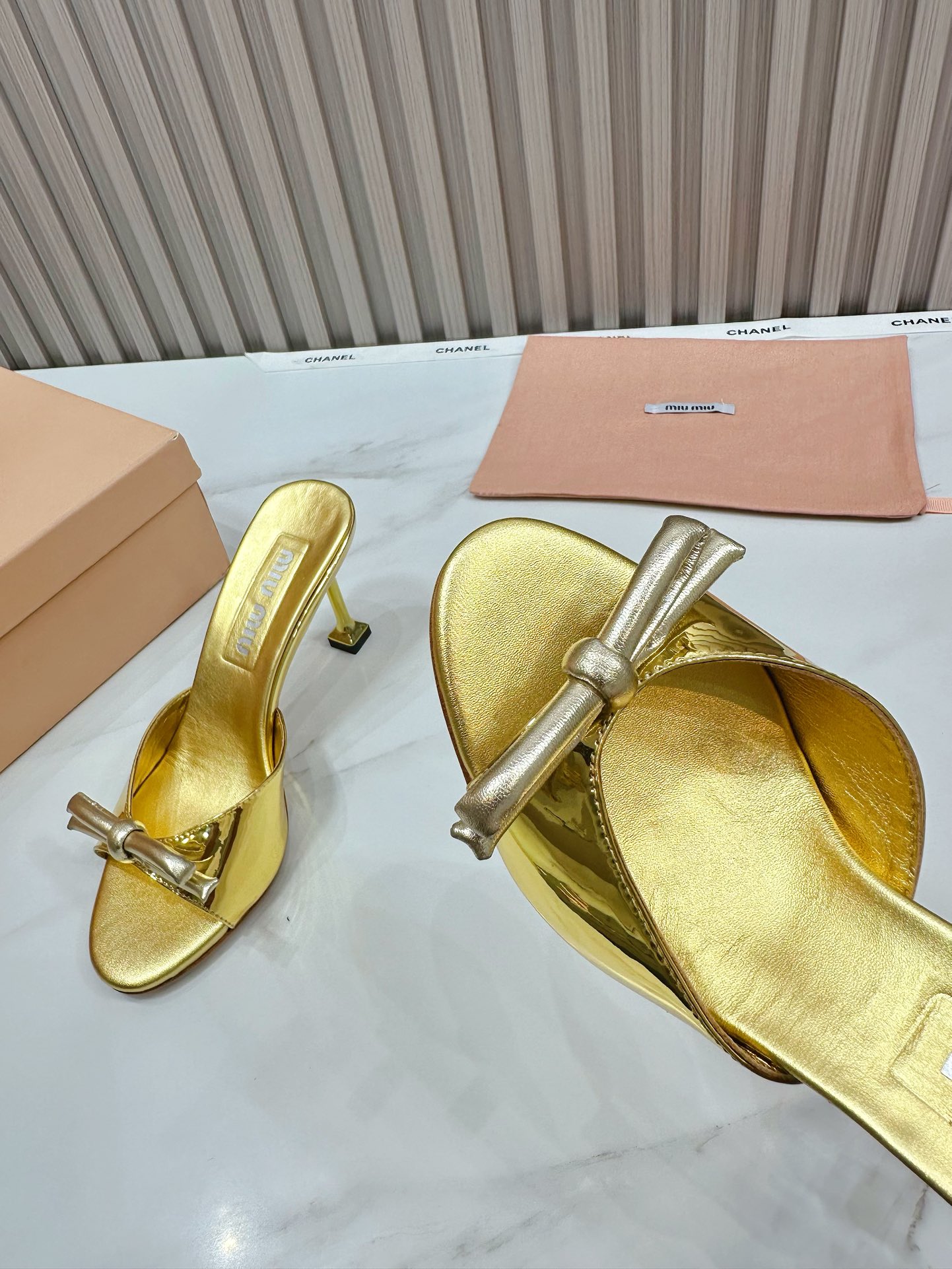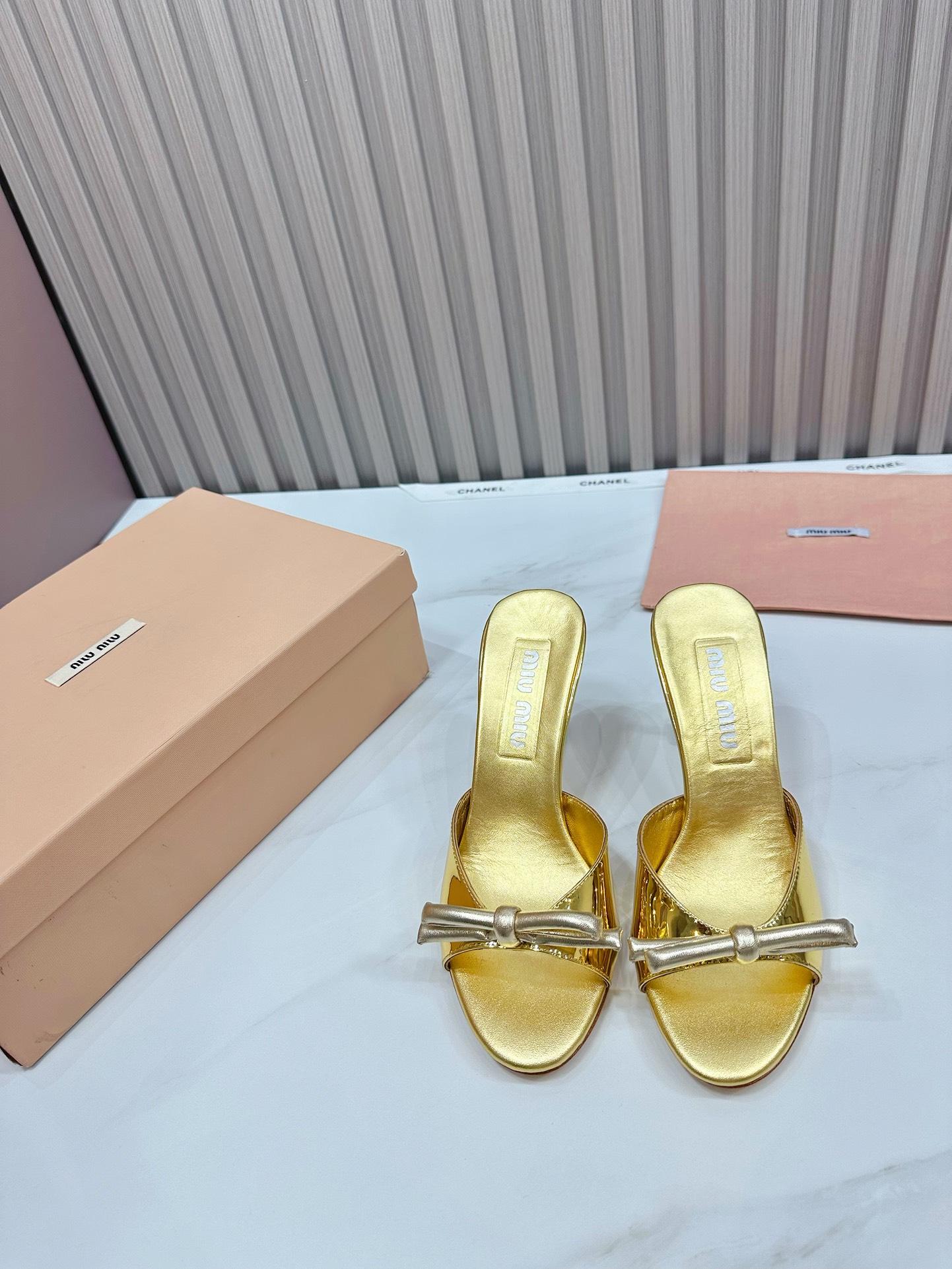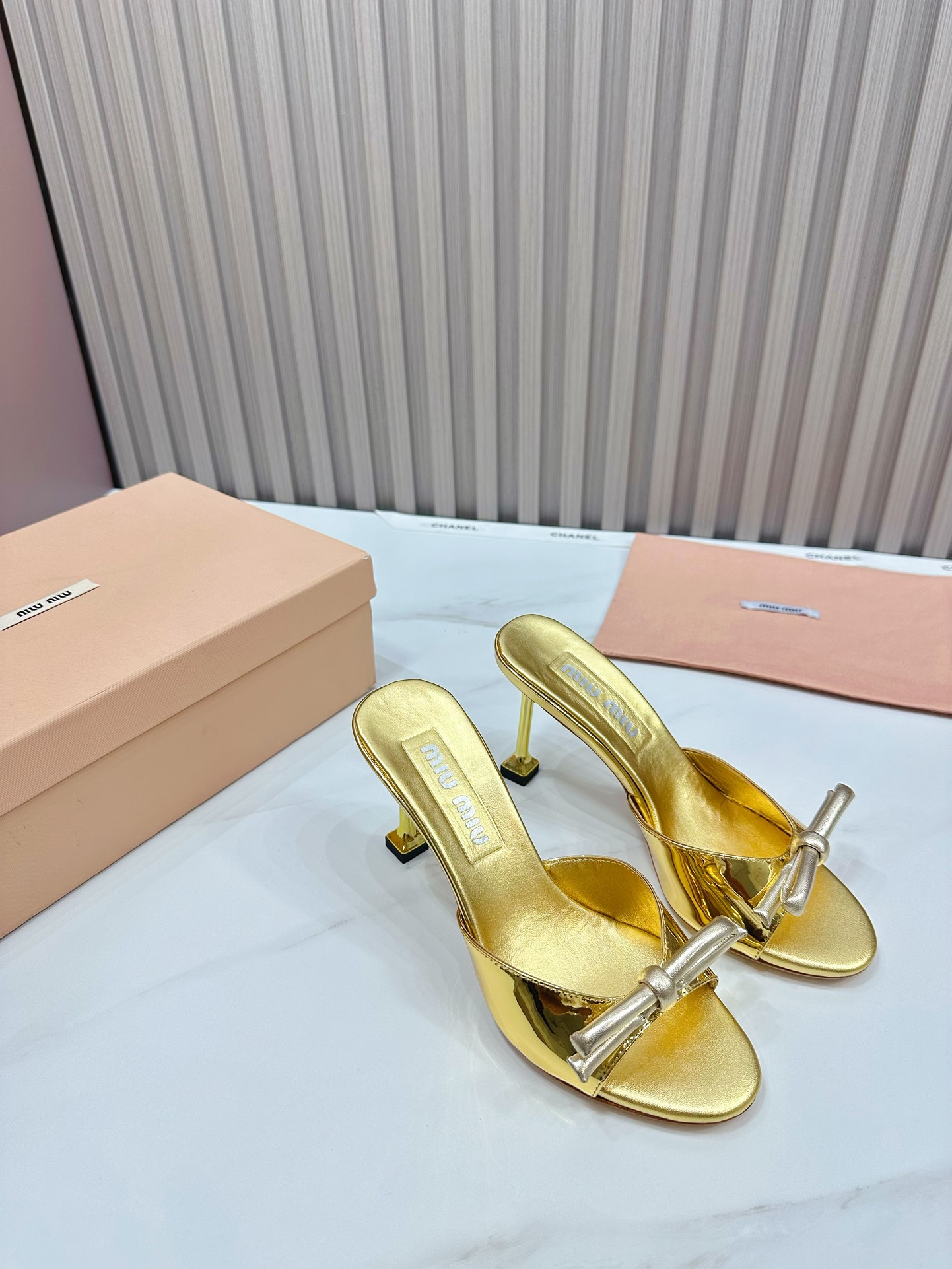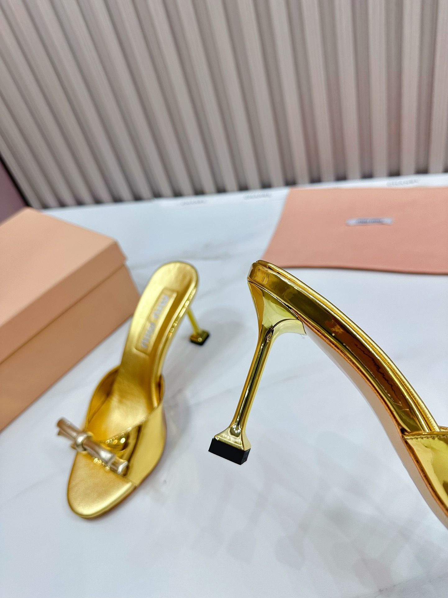 这款鞋子是AAAAA 1:1 质量 (非常棒). 使用了和原版一模一样的材料. 商标部分也保持了和缪缪/Miu Miu一样. 图片拍摄是实物鞋子拍摄, 您所收到的实物保证和我们图片一模一样.