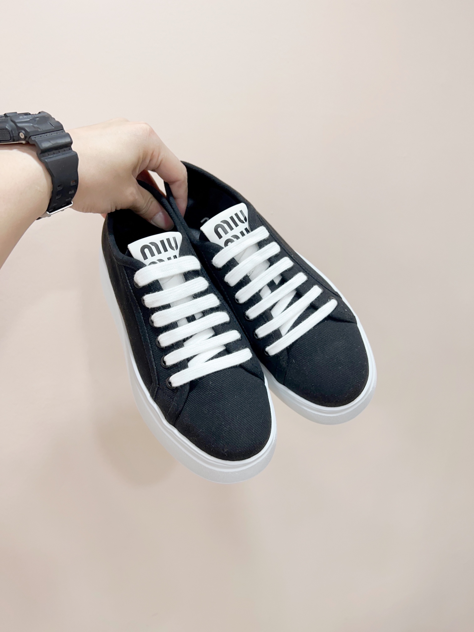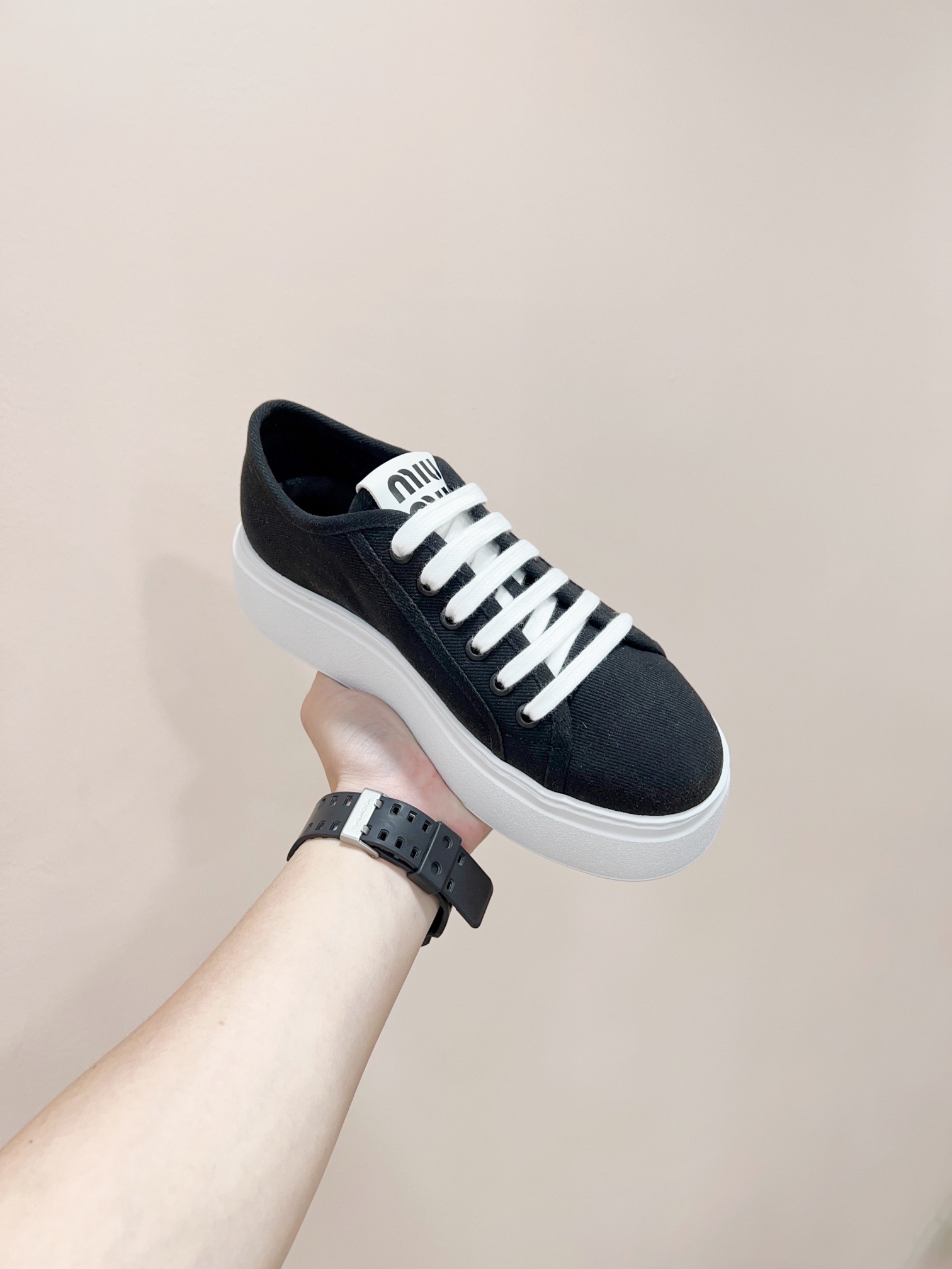 这款鞋子是AAAAA 1:1 质量 (非常棒). 使用了和原版一模一样的材料. 商标部分也保持了和缪缪/Miu Miu一样. 图片拍摄是实物鞋子拍摄, 您所收到的实物保证和我们图片一模一样.