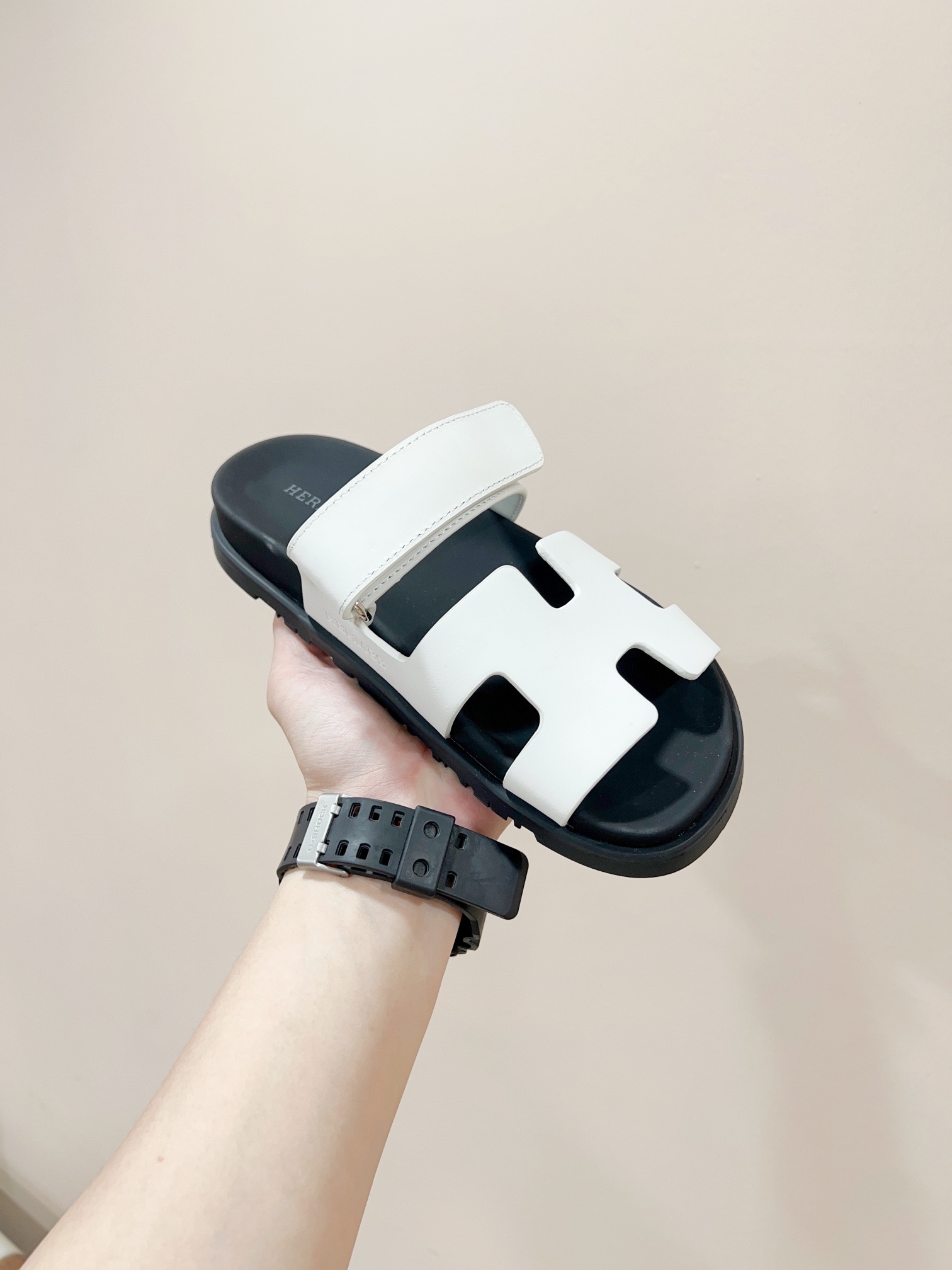这款鞋子是AAAAA 1:1 质量 (非常棒). 使用了和原版一模一样的材料. 商标部分也保持了和爱马仕/Hermes一样. 图片拍摄是实物鞋子拍摄, 您所收到的实物保证和我们图片一模一样.