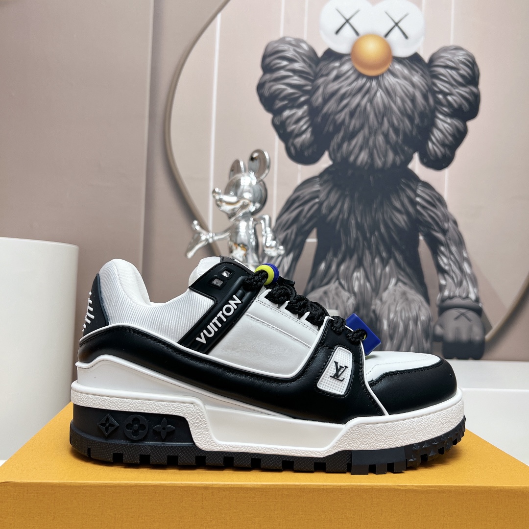 这款鞋子是AAAAA 1:1 质量 (非常棒). 使用了和原版一模一样的材料. 商标部分也保持了和路易威登/Louis Vuitton一样. 图片拍摄是实物鞋子拍摄, 您所收到的实物保证和我们图片一模一样.