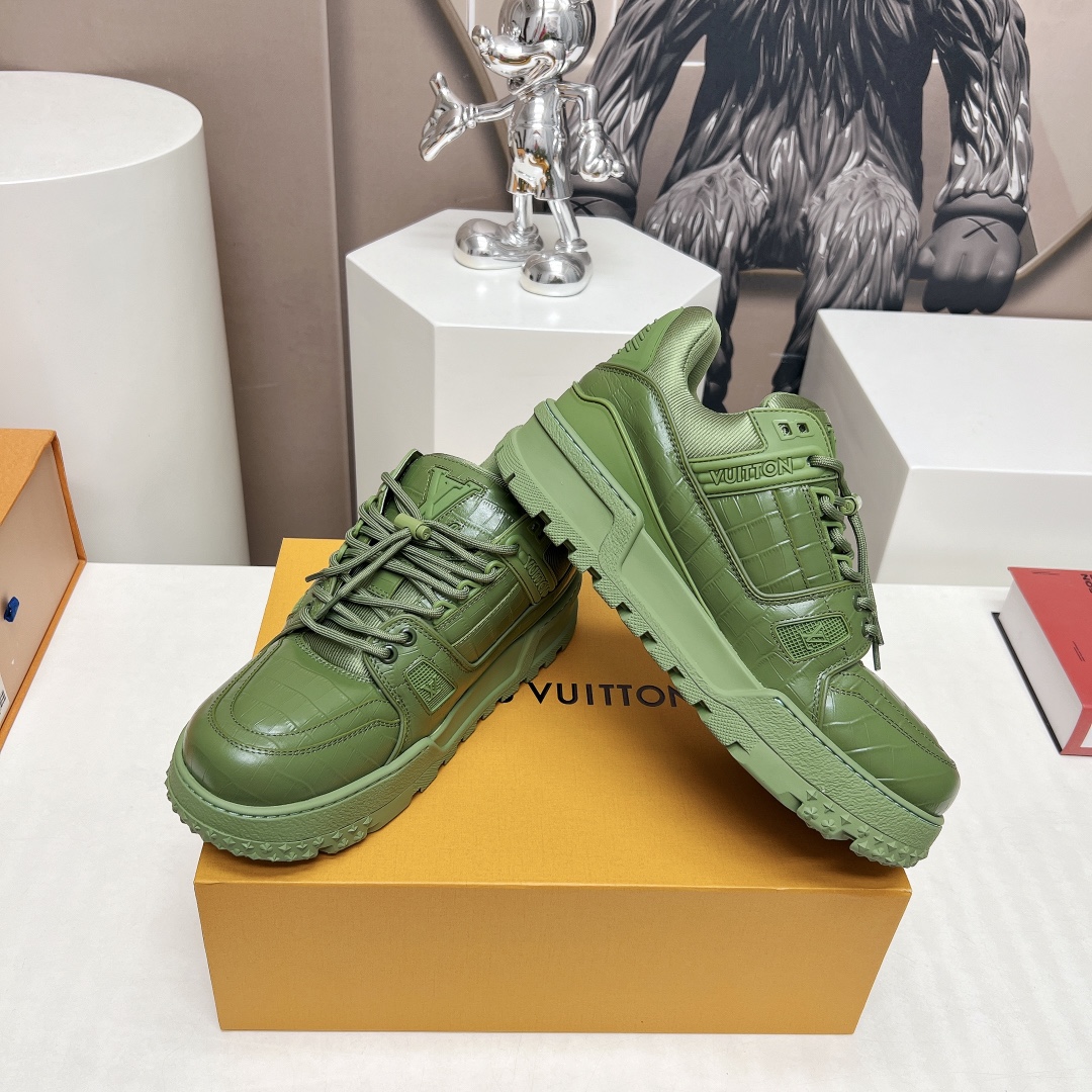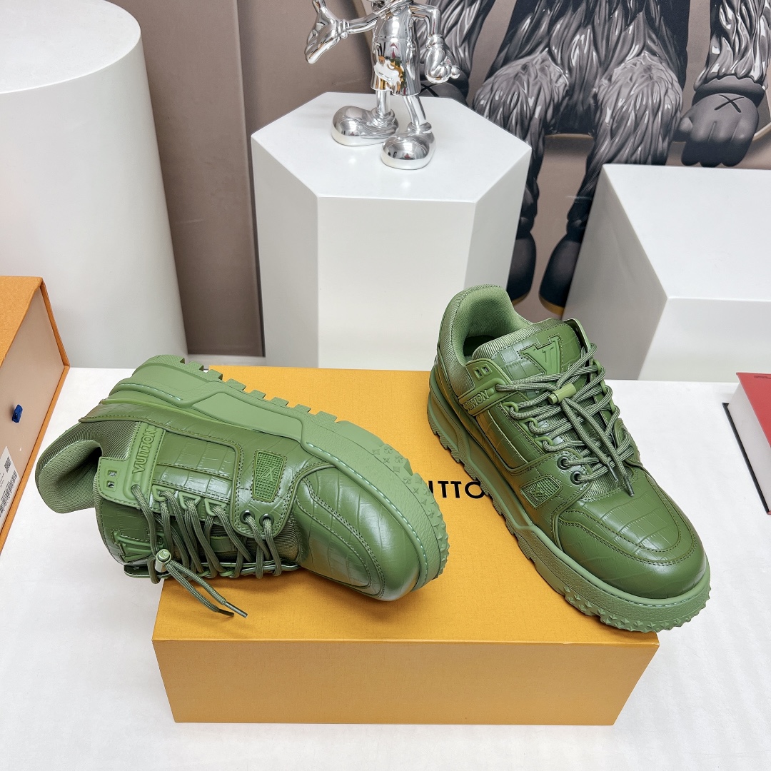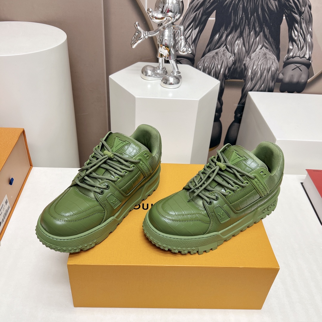 这款鞋子是AAAAA 1:1 质量 (非常棒). 使用了和原版一模一样的材料. 商标部分也保持了和路易威登/Louis Vuitton一样. 图片拍摄是实物鞋子拍摄, 您所收到的实物保证和我们图片一模一样.
