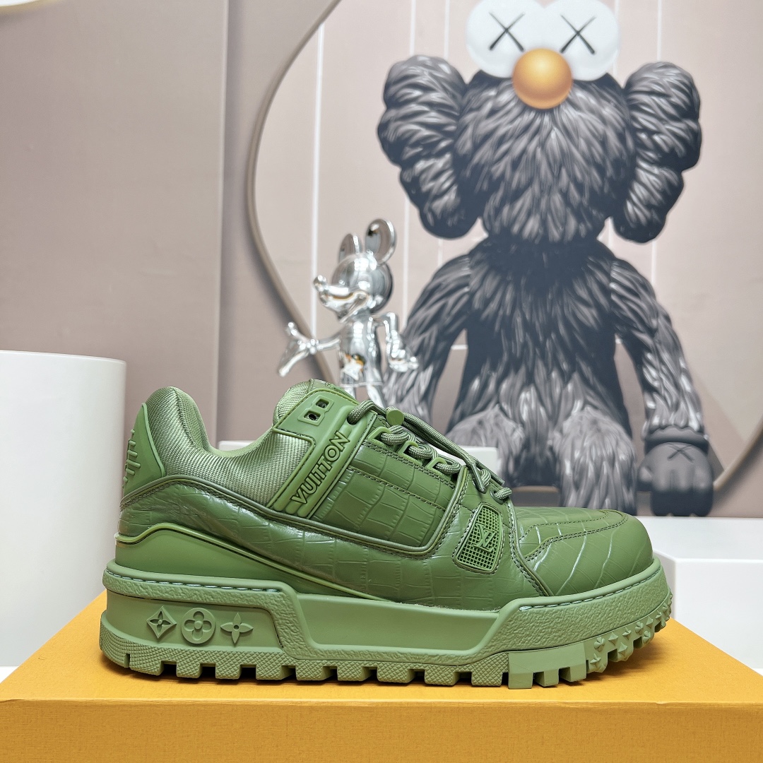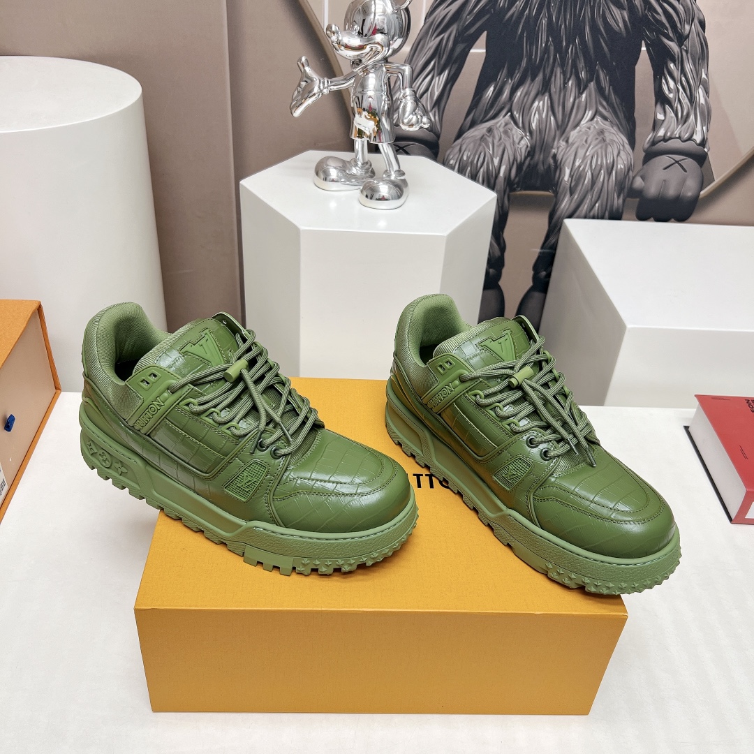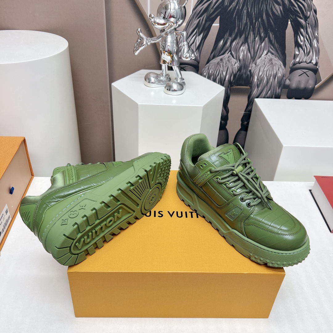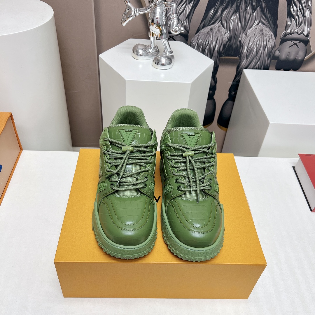 这款鞋子是AAAAA 1:1 质量 (非常棒). 使用了和原版一模一样的材料. 商标部分也保持了和路易威登/Louis Vuitton一样. 图片拍摄是实物鞋子拍摄, 您所收到的实物保证和我们图片一模一样.