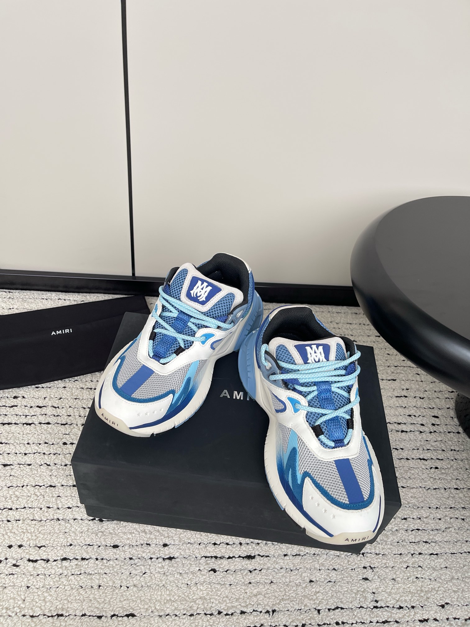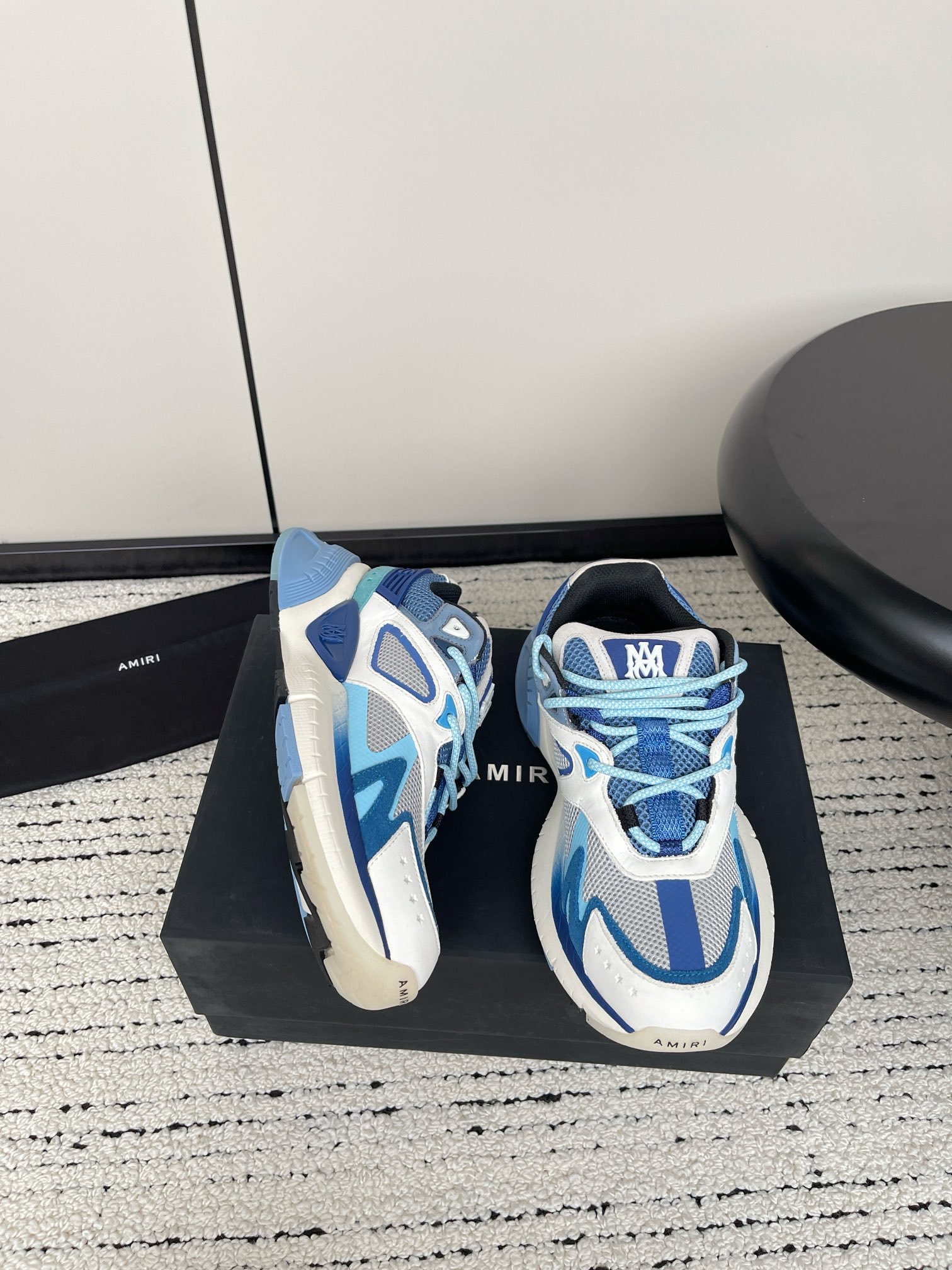 这款鞋子是AAAAA 1:1 质量 (非常棒). 使用了和原版一模一样的材料. 商标部分也保持了和AMIRI一样. 图片拍摄是实物鞋子拍摄, 您所收到的实物保证和我们图片一模一样.
