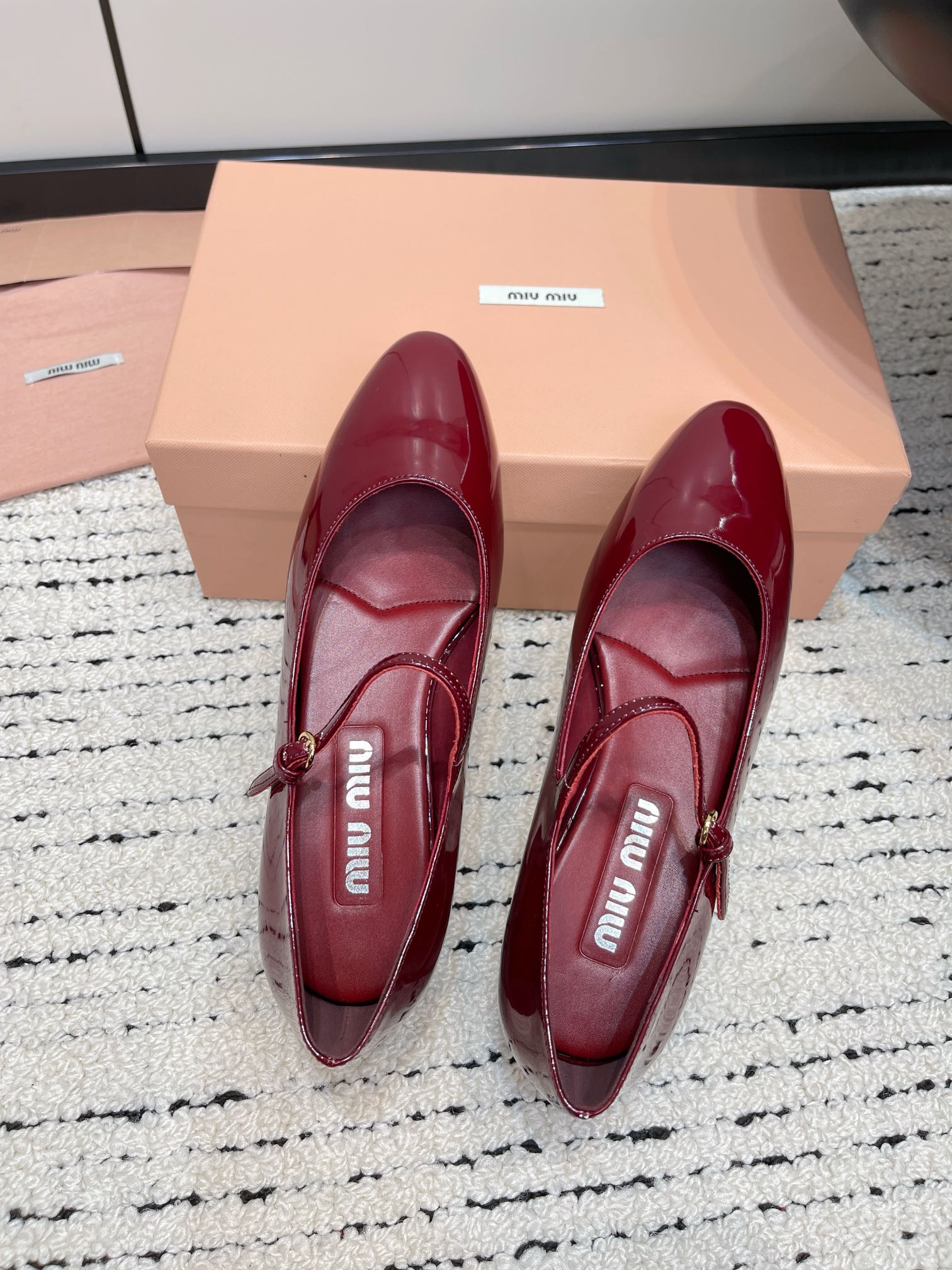这款鞋子是AAAAA 1:1 质量 (非常棒). 使用了和原版一模一样的材料. 商标部分也保持了和缪缪/Miu Miu一样. 图片拍摄是实物鞋子拍摄, 您所收到的实物保证和我们图片一模一样.