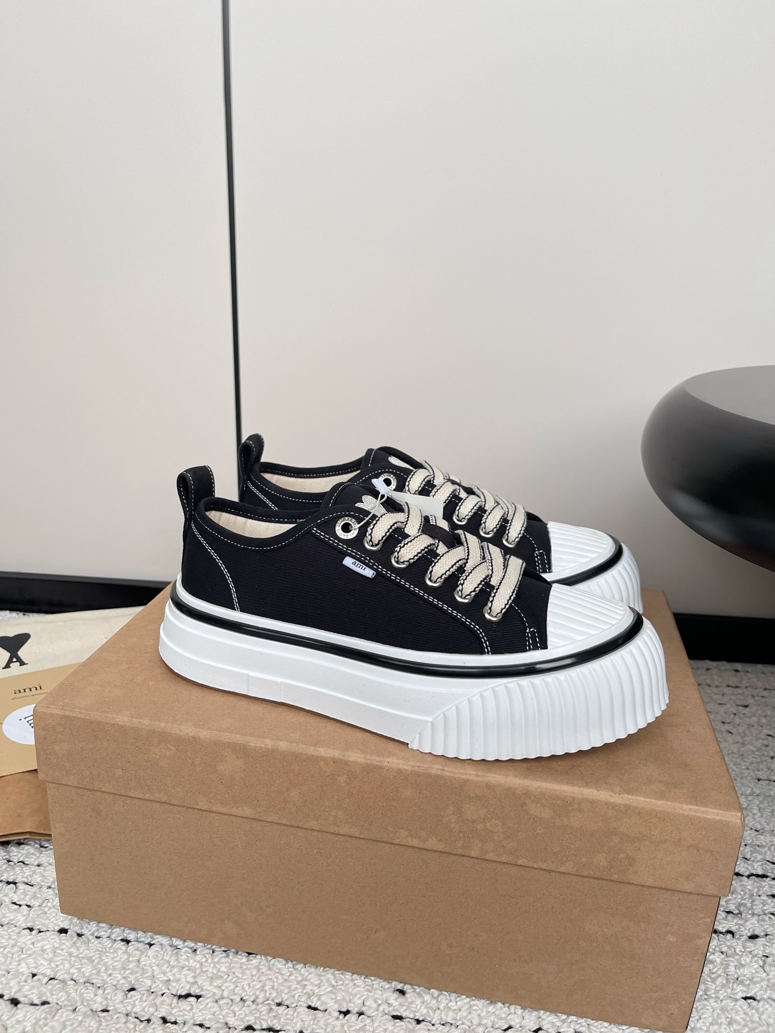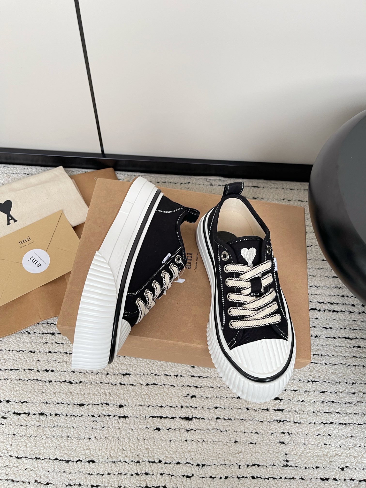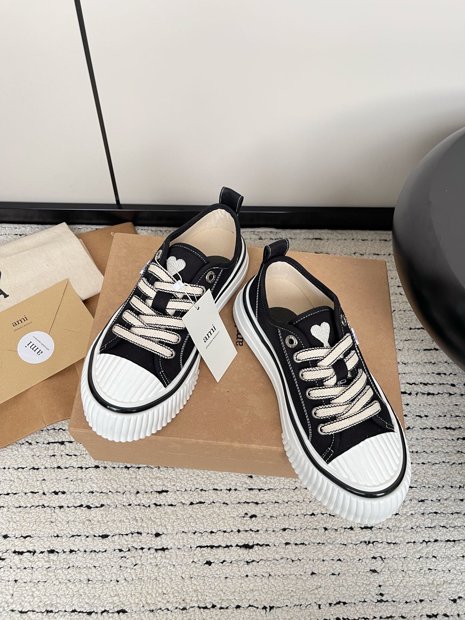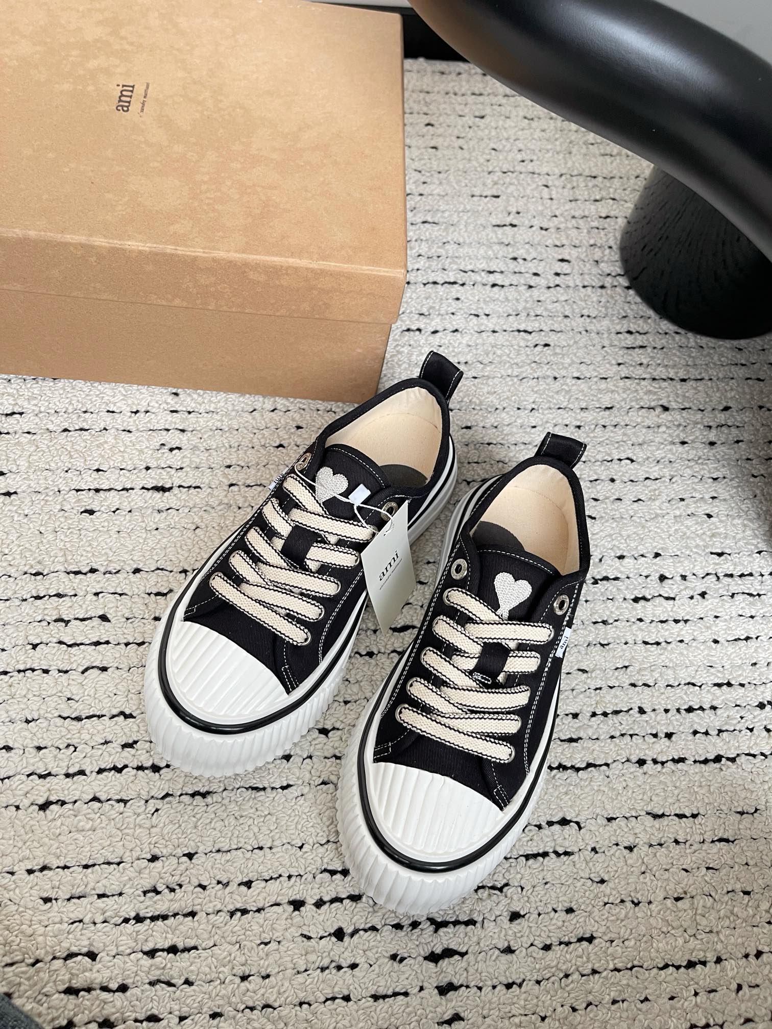 这款鞋子是AAAAA 1:1 质量 (非常棒). 使用了和原版一模一样的材料. 商标部分也保持了和Ami一样. 图片拍摄是实物鞋子拍摄, 您所收到的实物保证和我们图片一模一样.